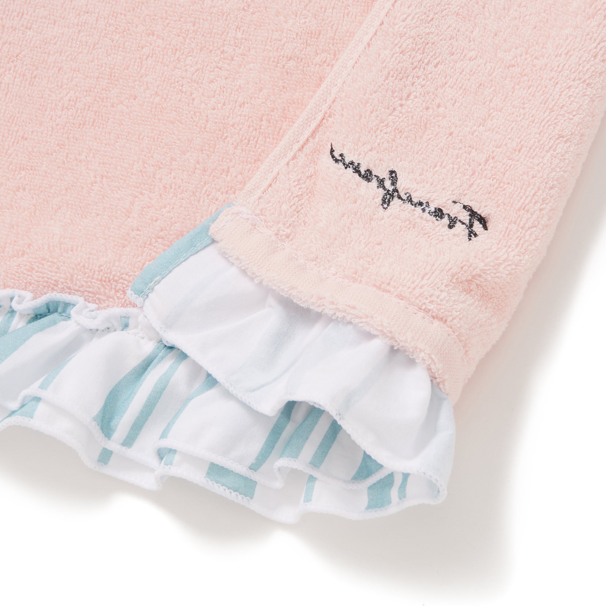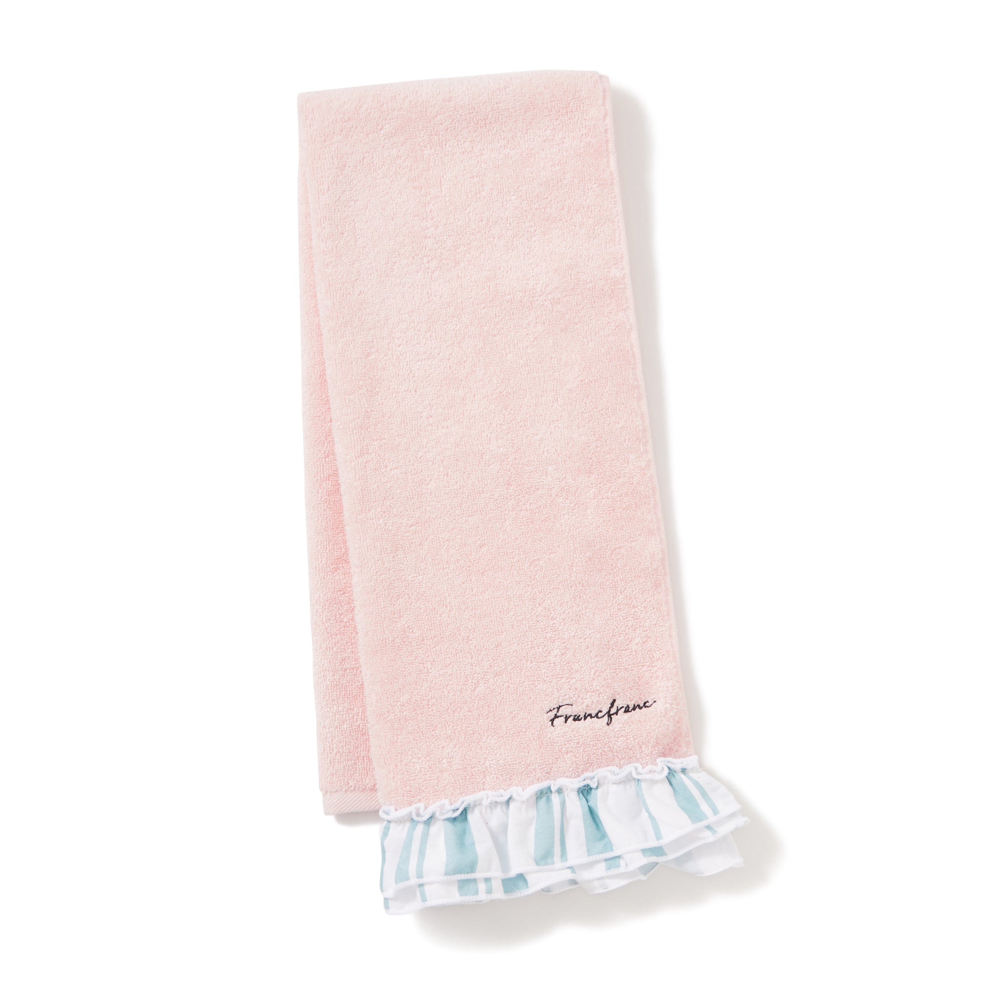 ストライプフリル フェイスタオル ピンク