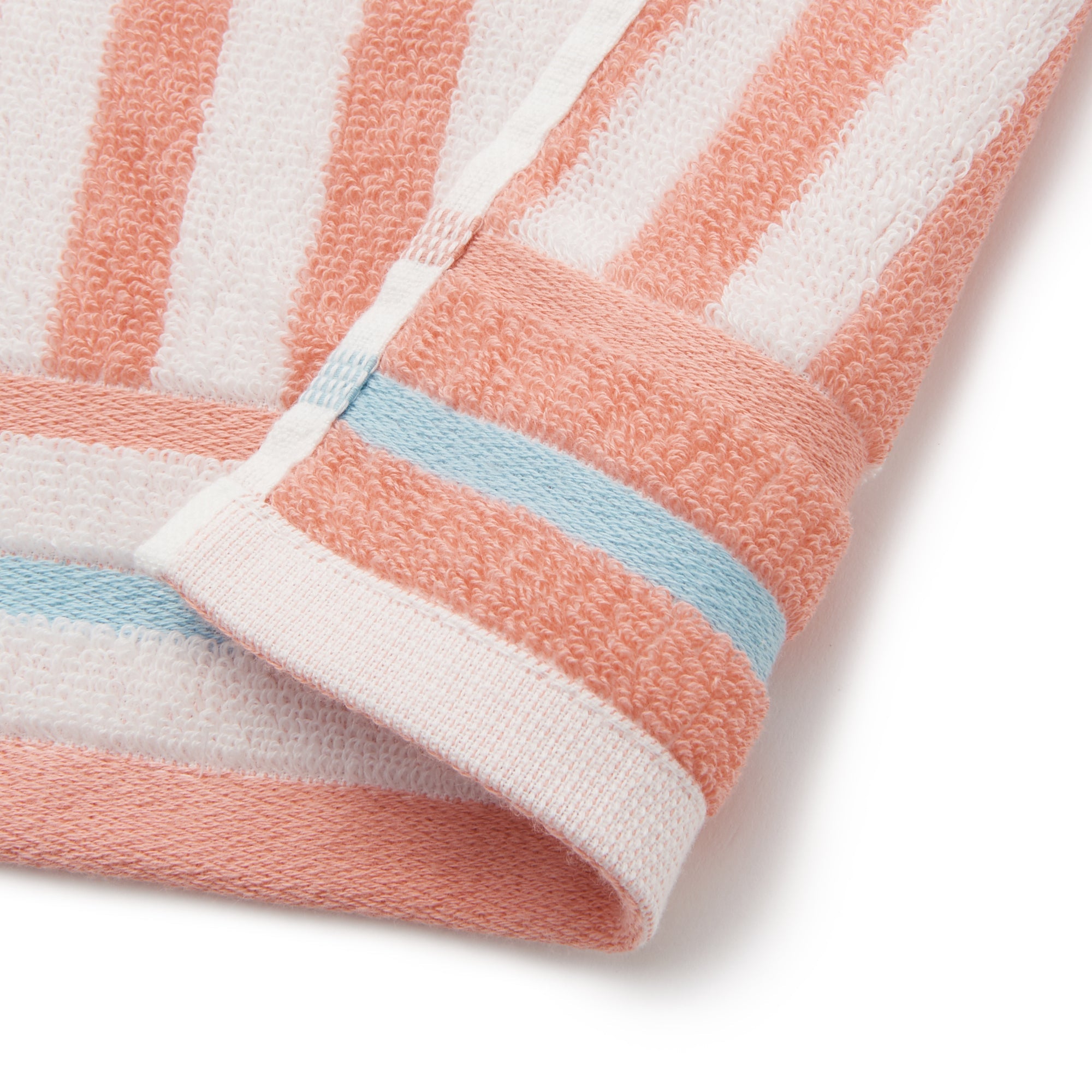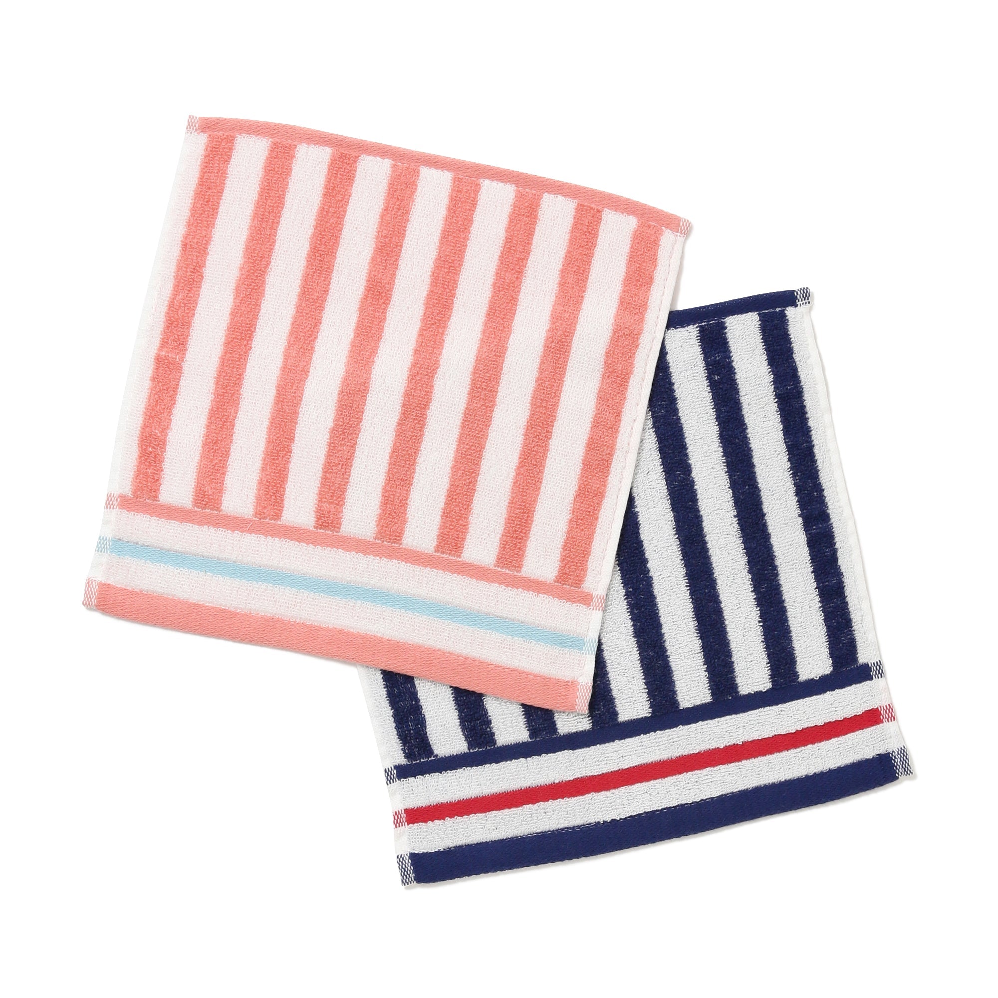 かわいい配色のシンプルなストライプで使い勝手のいいハンカチタオルです。柔らかで安心感のある厚みの、30番双糸のジャガード織り。デザインのバリエーション豊富でお手ごろ価格なハンカチシリーズなので、おまとめ買いやちょっとしたプレゼントにもおすすめです。