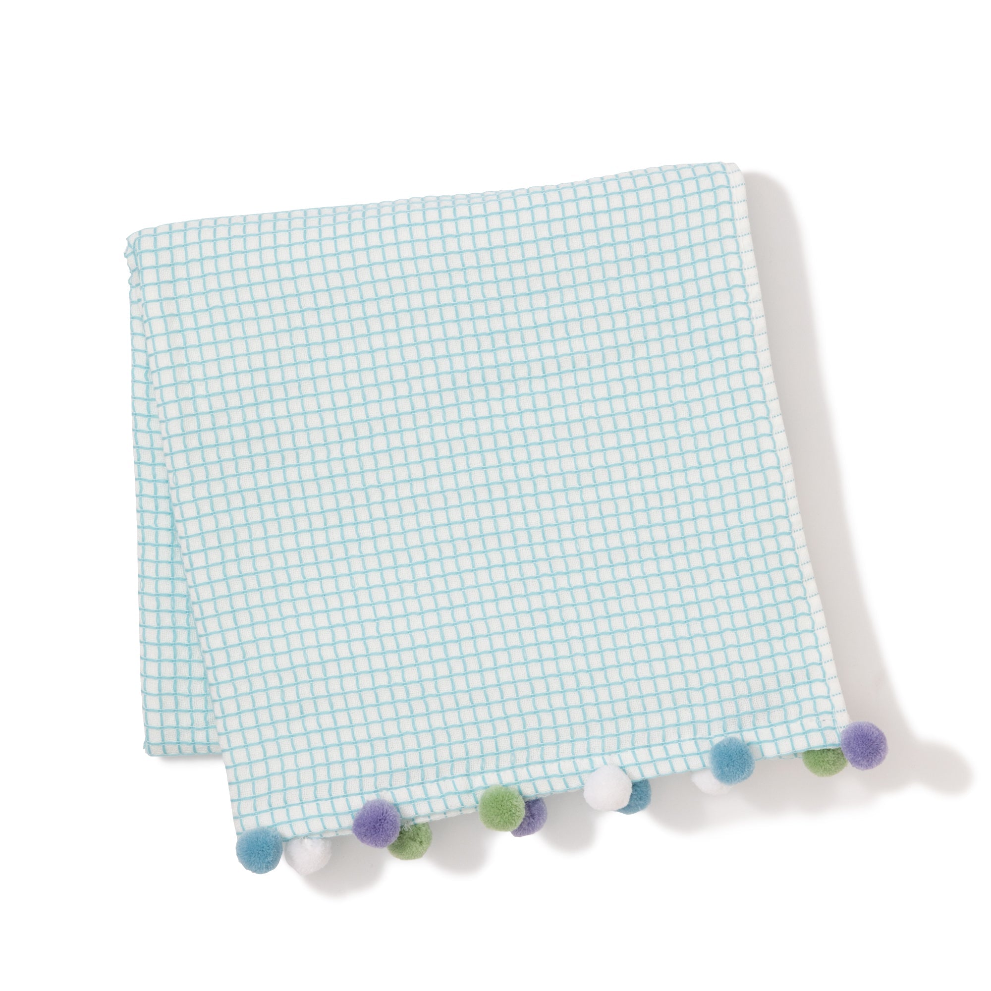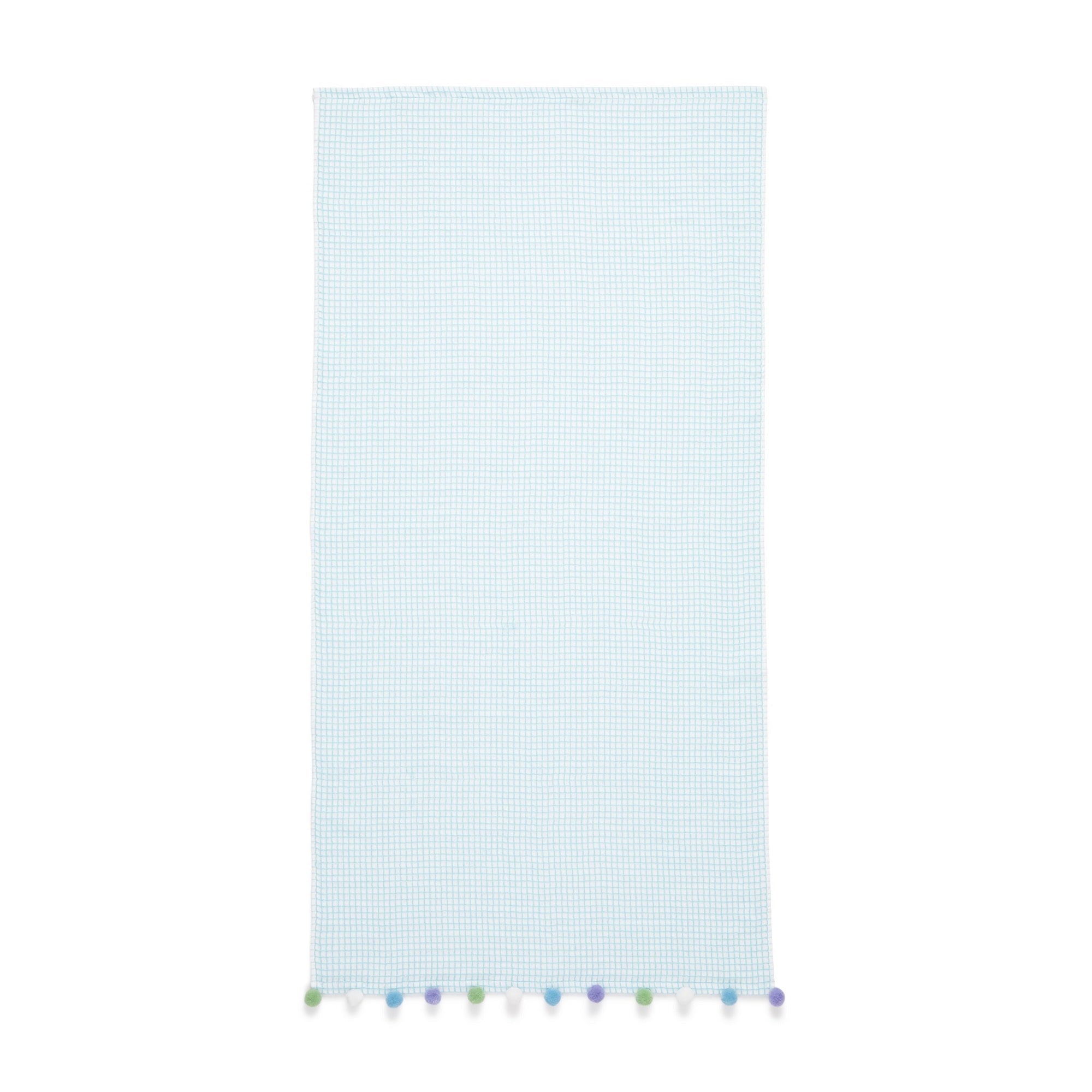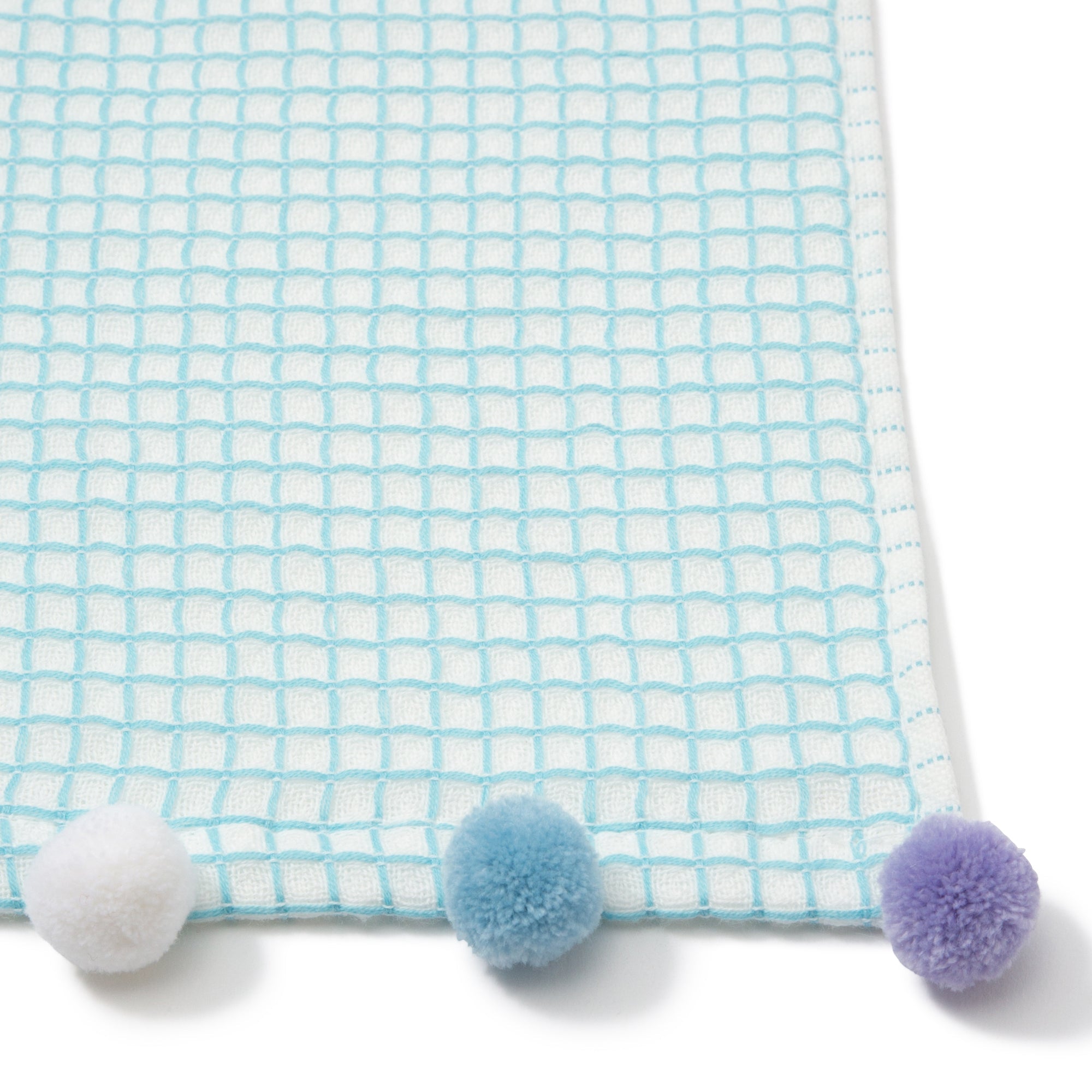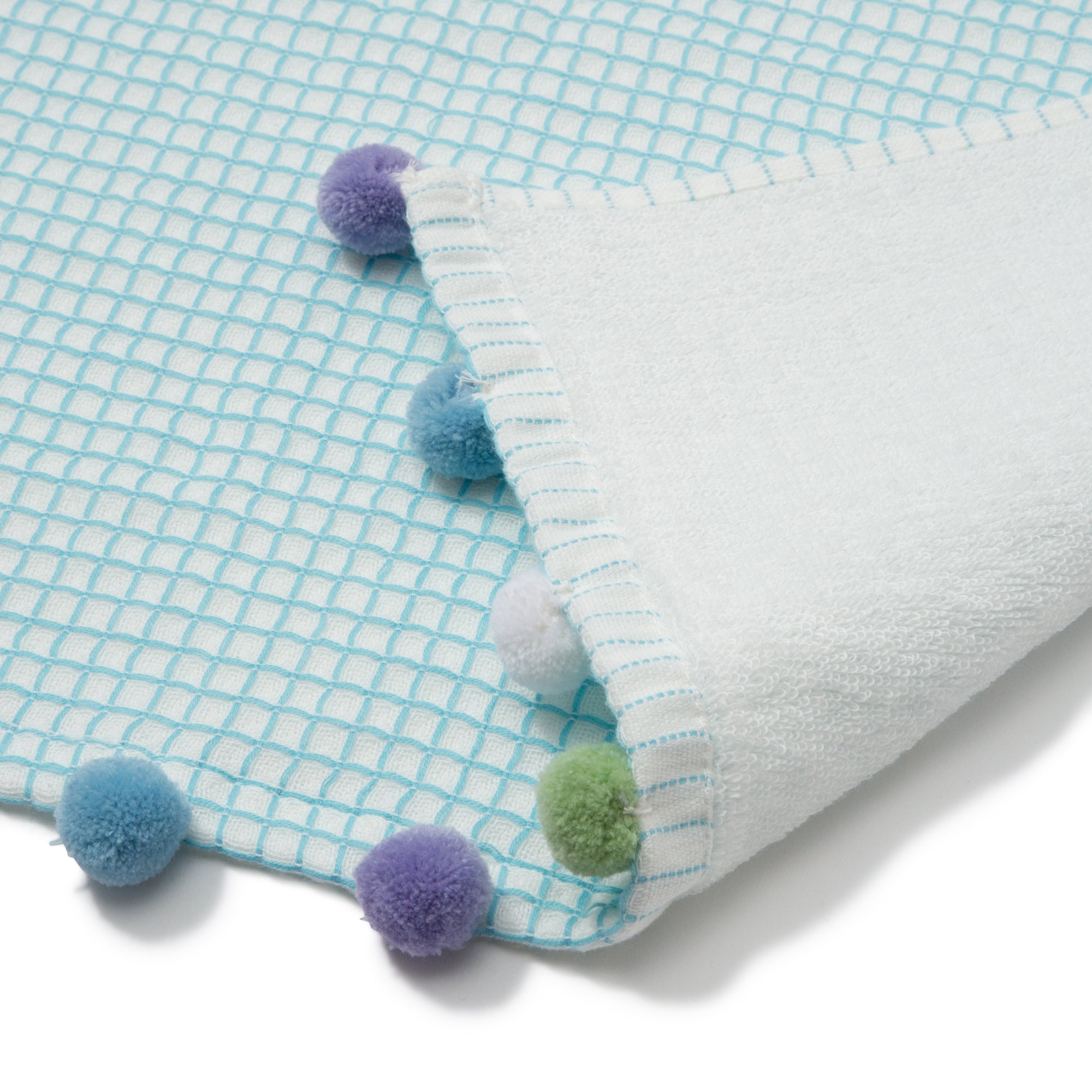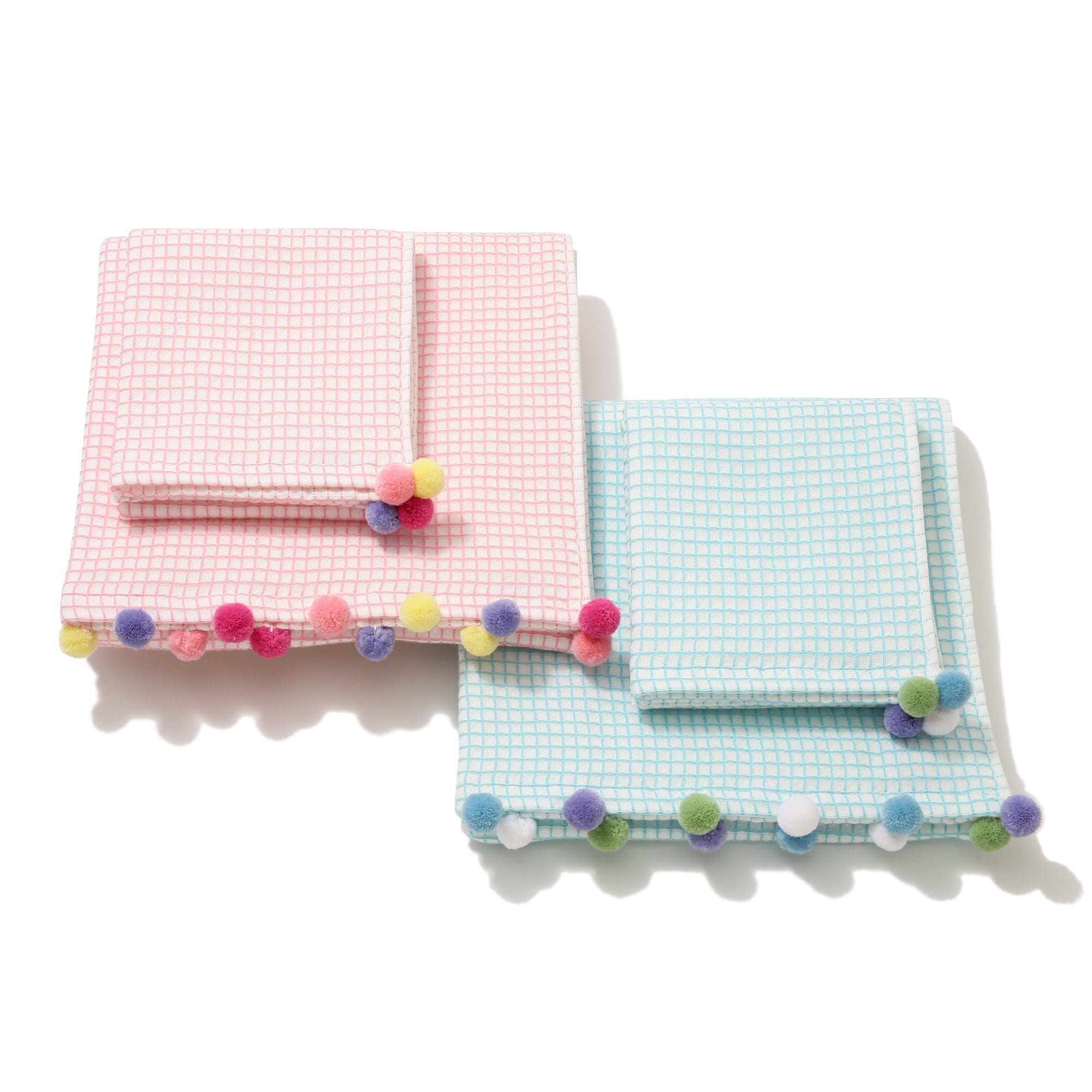 ワッフル織りを生かした挿し色使いとカラフルなポンポンがポップでかわいいバスタオルです。表面はワッフル加工でしなやかに、裏面はパイル加工でボリュームのある肌触りがお楽しみいただけます。ご自宅用にはもちろん、贈り物にもぴったりのアイテムです。