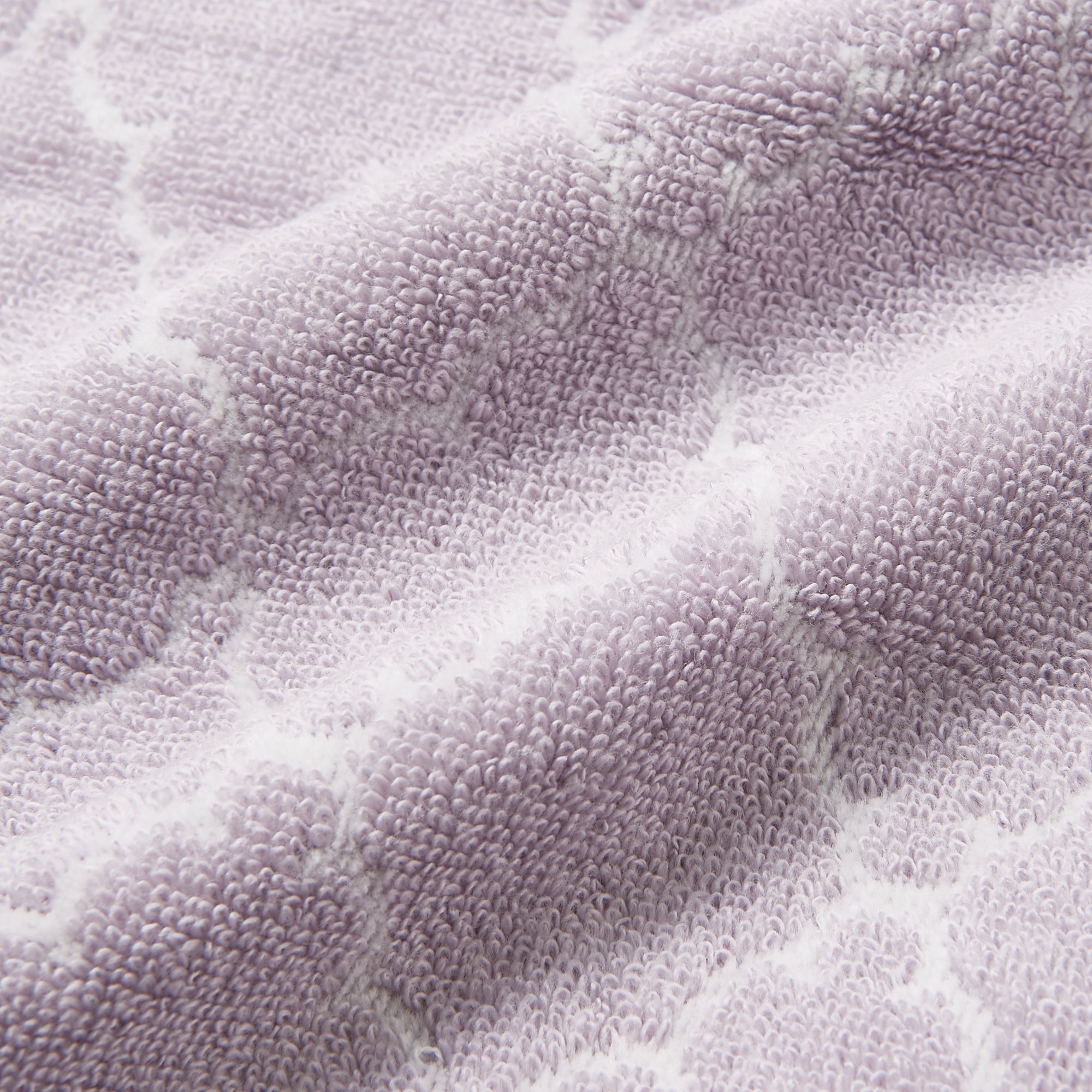 キルト風デザインとダマスクデザインで上下に変化をつけたシンプルフェミニンなフェイスタオルです。肉厚で柔らかい触り心地のスチームシャーリング加工で使うたび幸せを感じます。抗菌・消臭加工された糸を使用しているため部屋干しでも気になりません。ギフトにもぴったりの上品な仕上がりです。