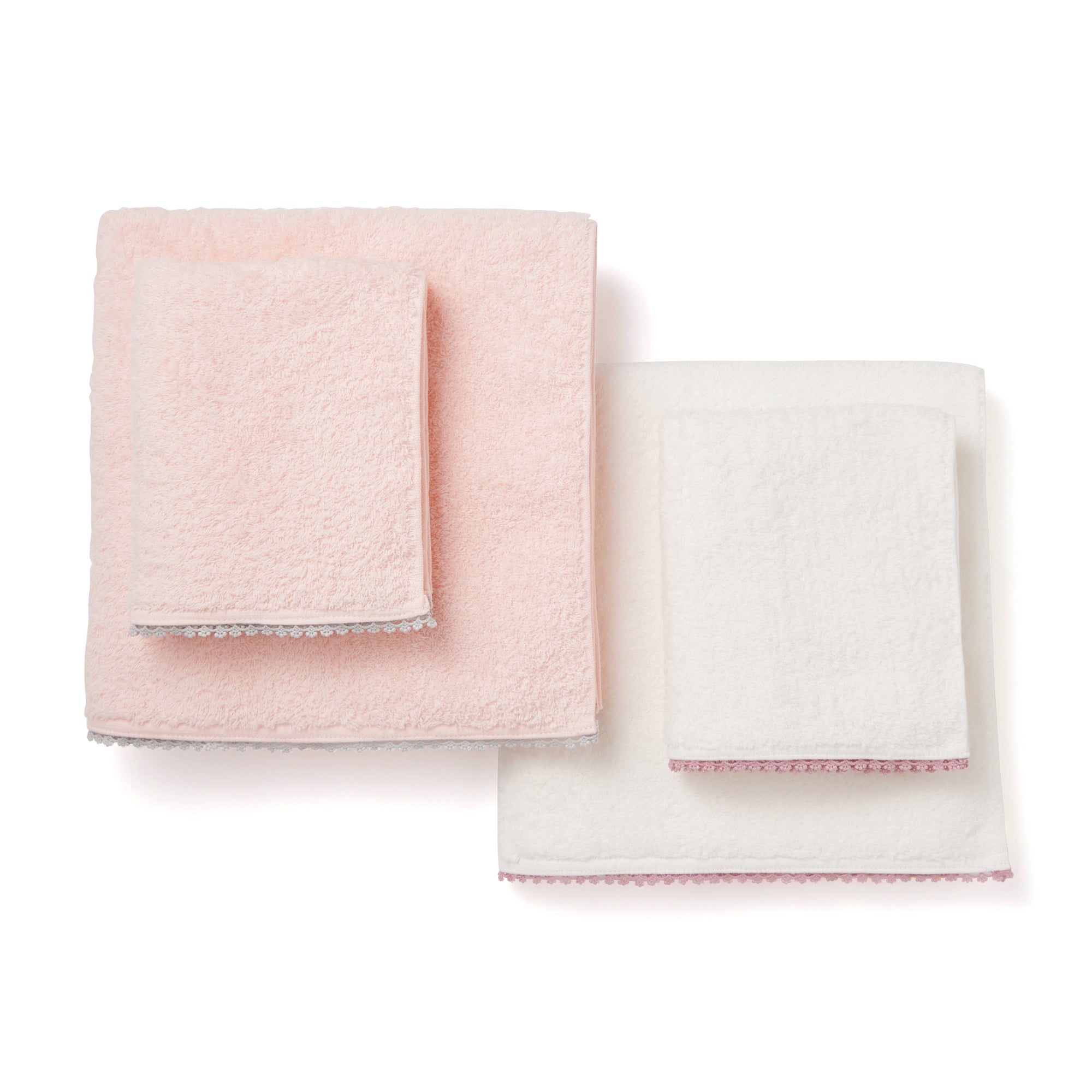 ふわふわのパイルタオルに可愛らしいピコレースを縫い付けたスイートデザインのタオルです。真ん中に空洞のある中空糸を使用したふんわりと柔らかい仕上げになっています。部屋干し需要を考えた吸水速乾加工で、乾きやすい素材のため、梅雨時や花粉の時期などの部屋干しシーズンに、便利にご使用いただけます。