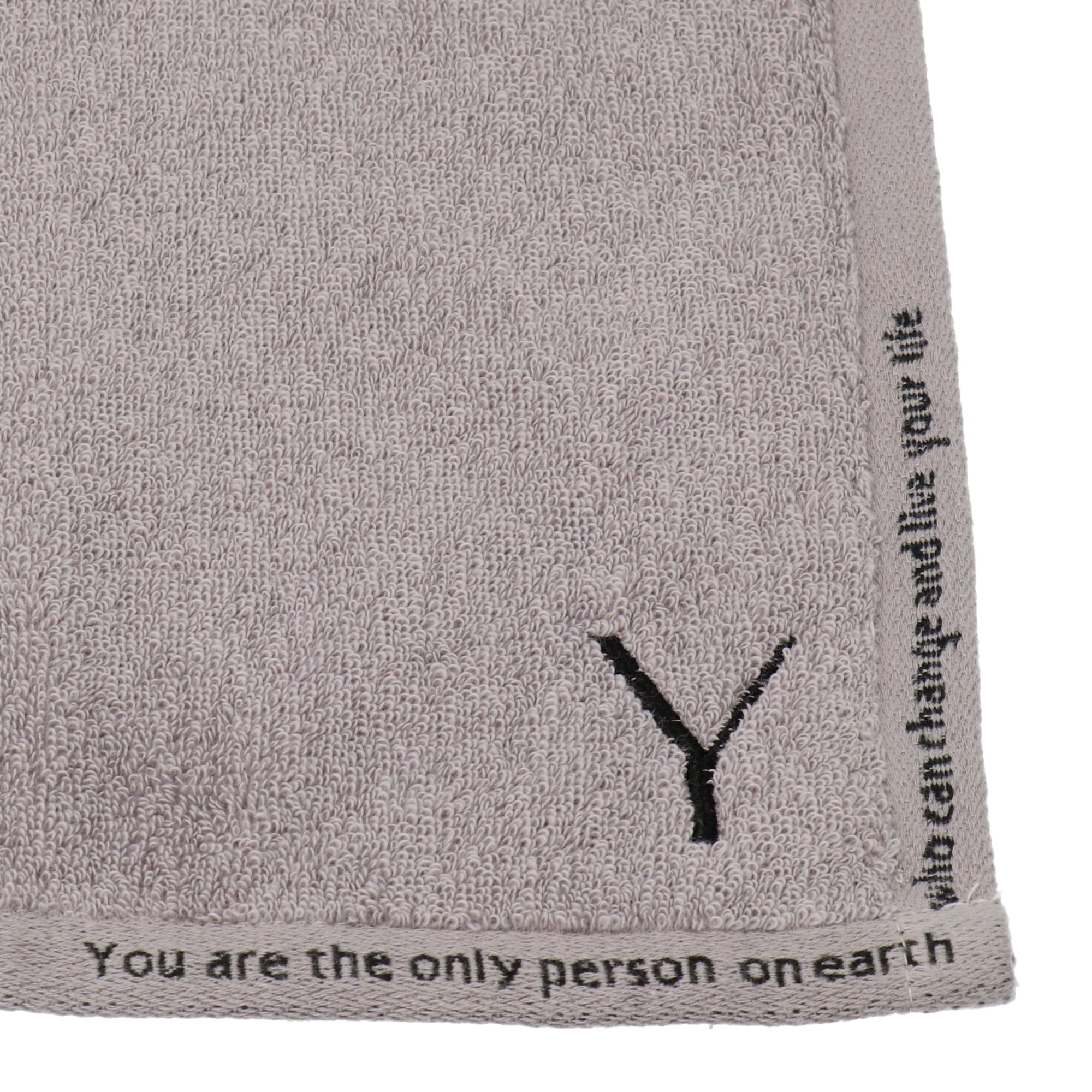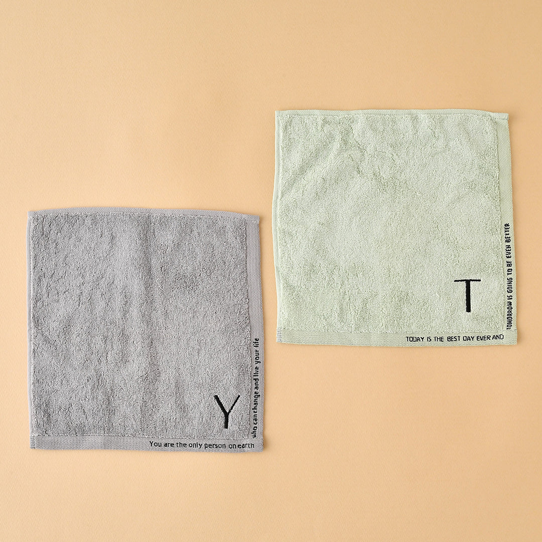 10種類のイニシャルが選べるハンカチタオルです。ベーシックな25cm角のハンカチに、シンプルなアルファベットとそれぞれのアルファベットから始まるポジティブなメッセージをあしらいました。メッセージが目に入るたびに優しく力強く励ましてくれる、お守りのようなアイテムです。普段使いしやすく耐久性に優れた20番双糸を採用、適度なボリューム感とパイル地のふんわりとした肌触りが楽しめます。ご自分で使うのはもちろんお友達や家族とお揃いにするのもおおすすめ。プチギフトにも大変喜ばれます。