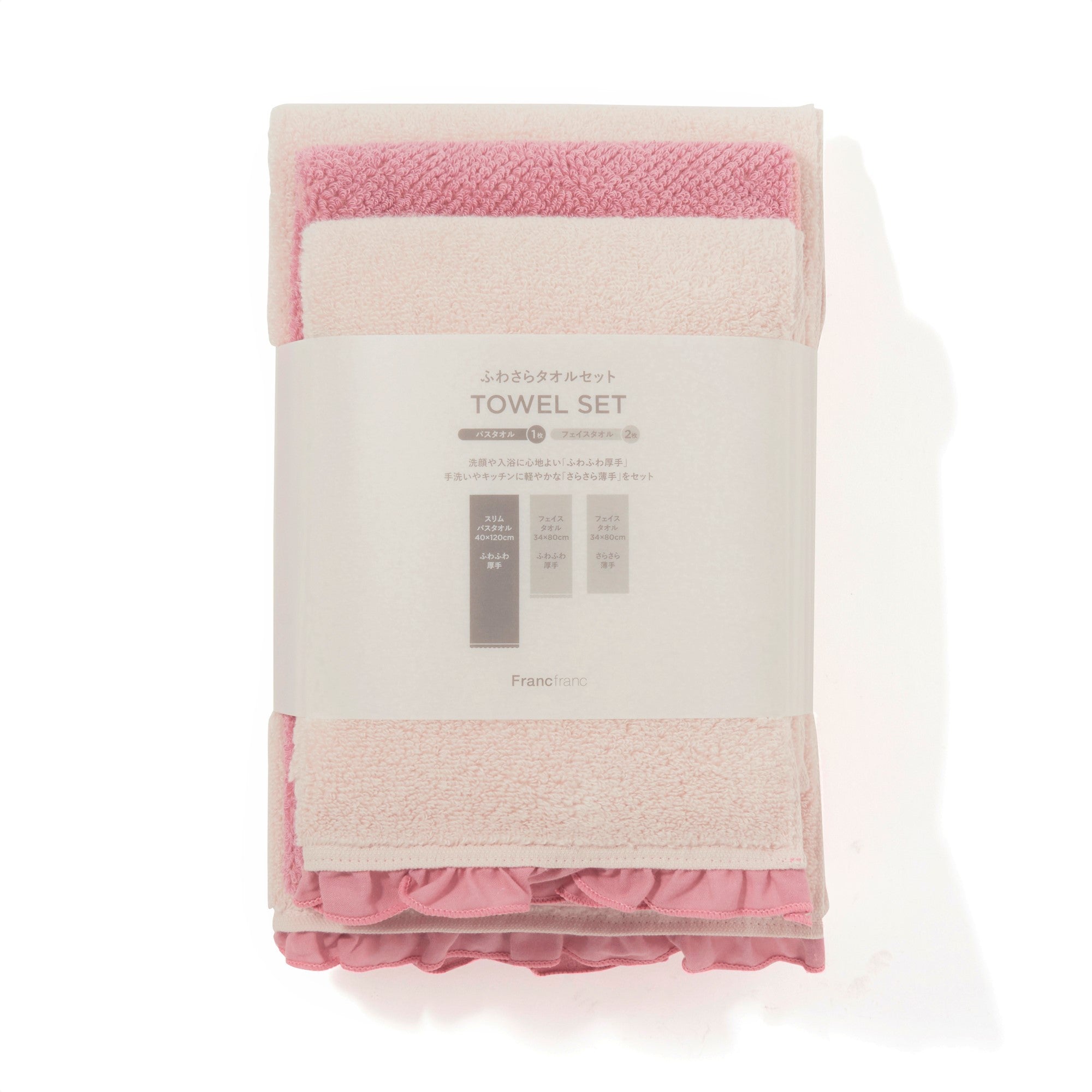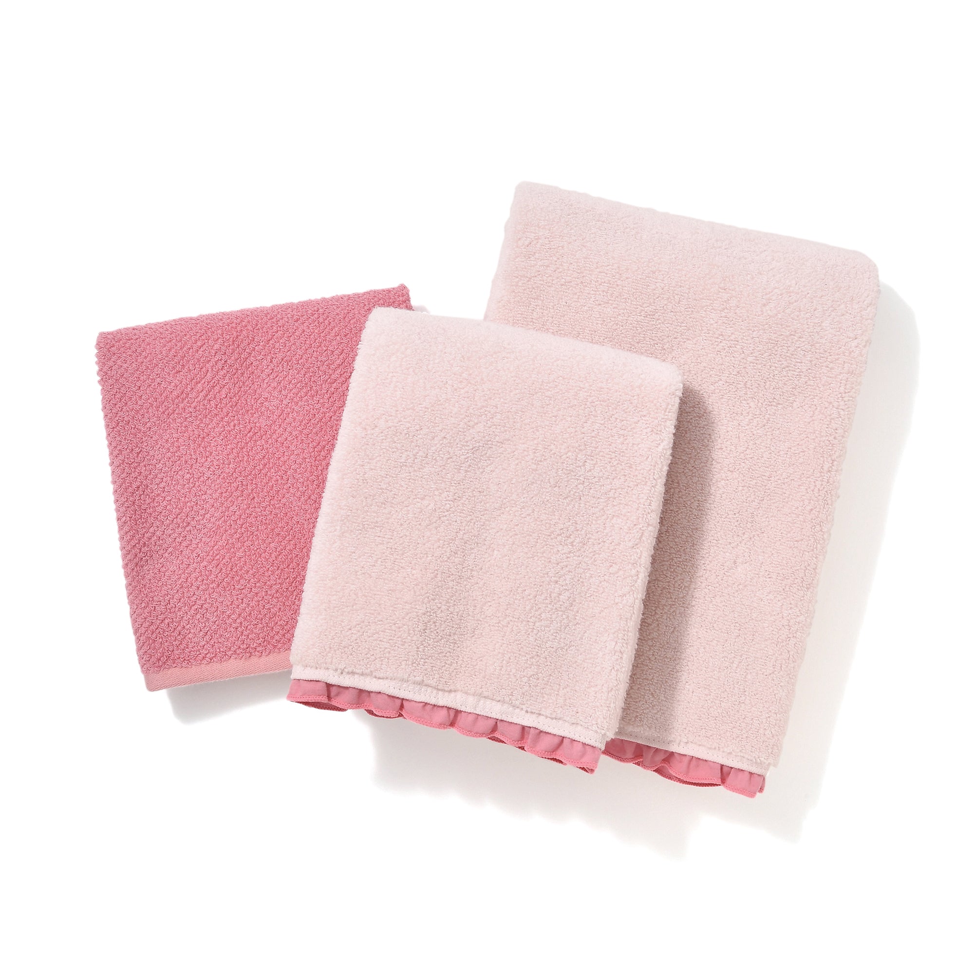 ふわさらタオルセット バス・フェイスタオル ピンク