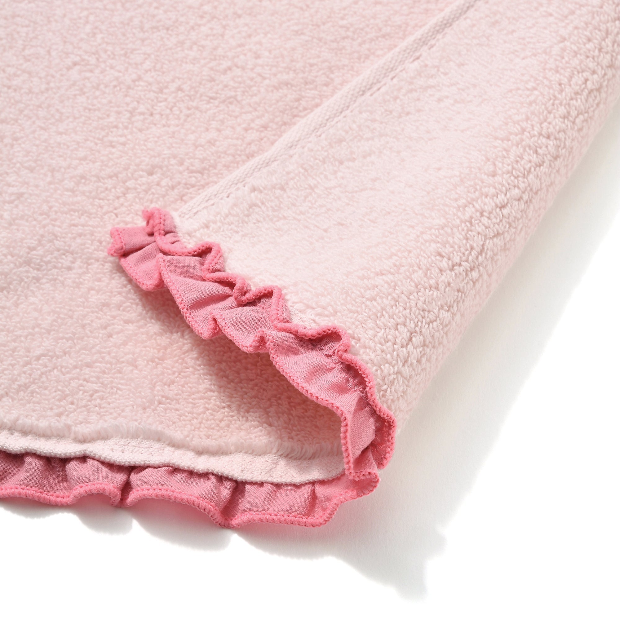 スリムタイプの厚手のバスタオル1枚と風合いの違う薄手と厚手のフェイスタオル2枚のタオル3枚セットです。フリルデザインが2枚と、シンプルデザインが1枚のセットで気分によって使い分けもできます。フリルは大きすぎないので、甘すぎずさりげない可愛さをプラスしてくれます。もっちりした厚手タイプは髪や体、顔の水分を摩擦レスで優しく吸い取ってくれます。さっぱりの薄手タイプはマルチユースで活躍します。バスタオルはハンガーに吊るして干せるスリムサイズで、スペースもとらず便利です。髪も体も十分に拭き取れるサイズながら、頭に巻きやすく使い勝手抜群の黄金比サイズです。フックに掛けられるループ付き。ふわふわもさらさらも両方使えて便利なセットになっています。カラーも派手すぎず落ち着いた色味なので、どんなお部屋にも馴染んでくれます。ギフトにもおすすめのセットです。