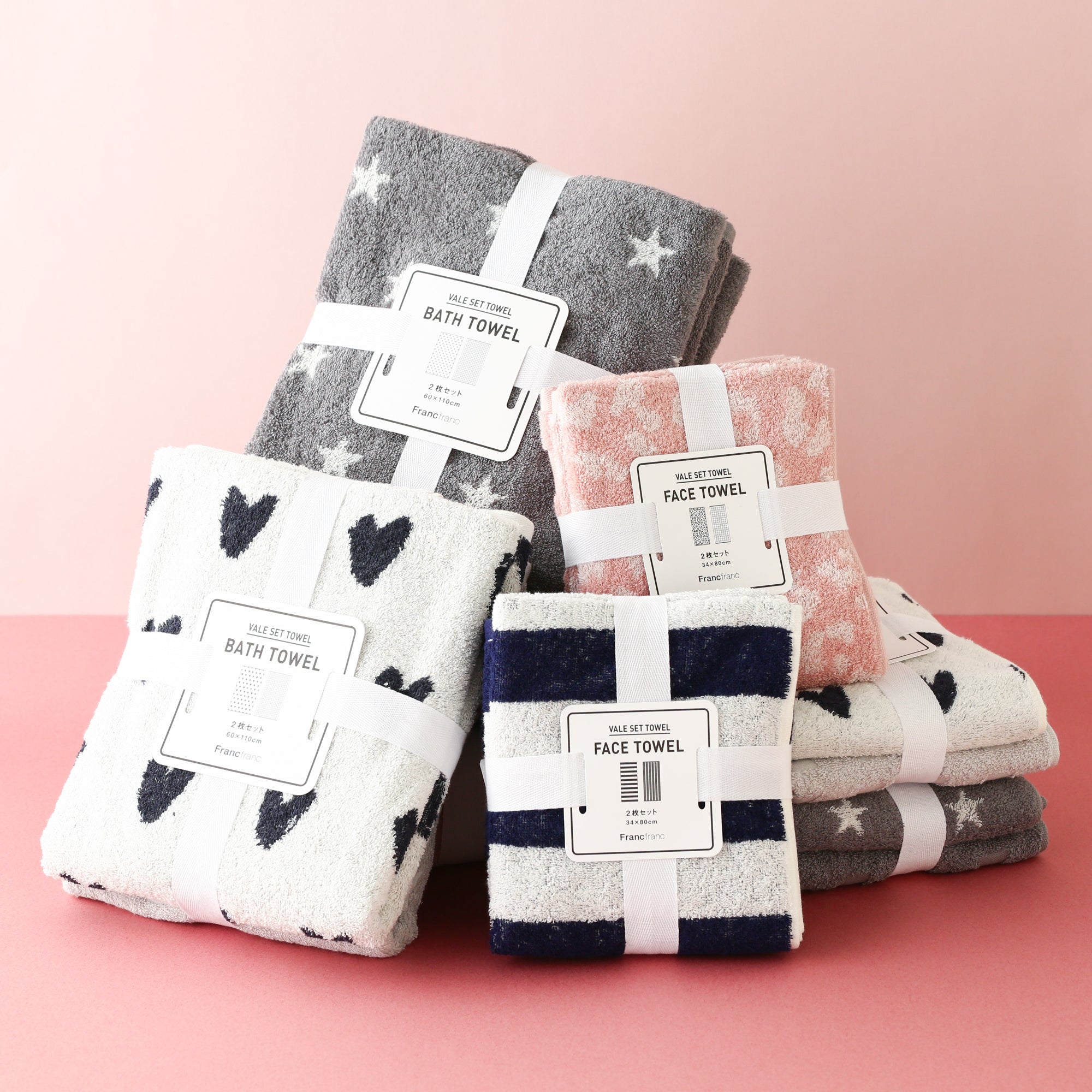 普段使いにぴったりな、34×80cmサイズのフェイスタオル2枚セットです。素肌に心地よいふわっと柔らかなコットン素材を100%使用しました。薄手でコンパクトだから乾きやすく、洗濯物の多いファミリーにおすすめ。お手ごろ価格だから新生活のスタートにまとめ買いしたり、ギフトにボリューム感を出したい時にもぜひご利用ください。豊富なバリエーションからお気に入りの柄を選べば、いつものバスルームが今よりちょっぴり楽しい空間になるはず。