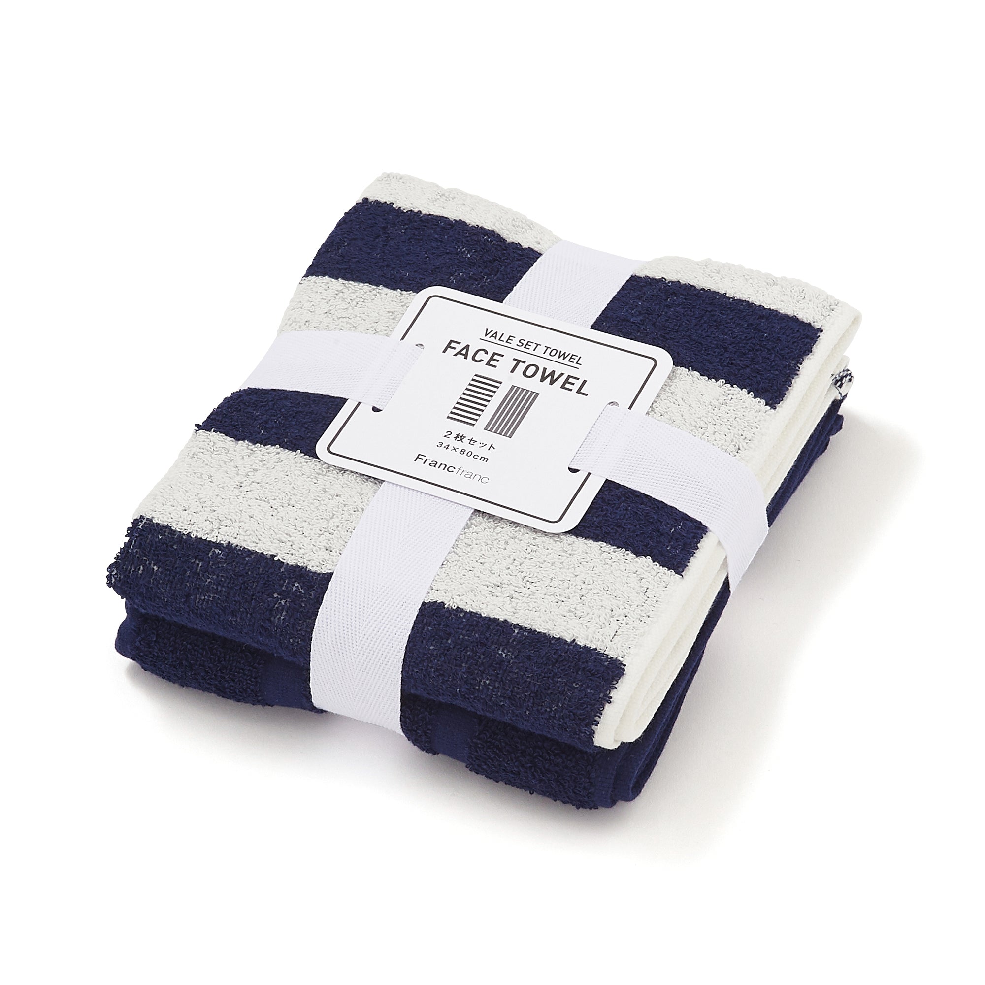 ヴァレ フェイスタオル ボーダーネイビー(2枚セット)