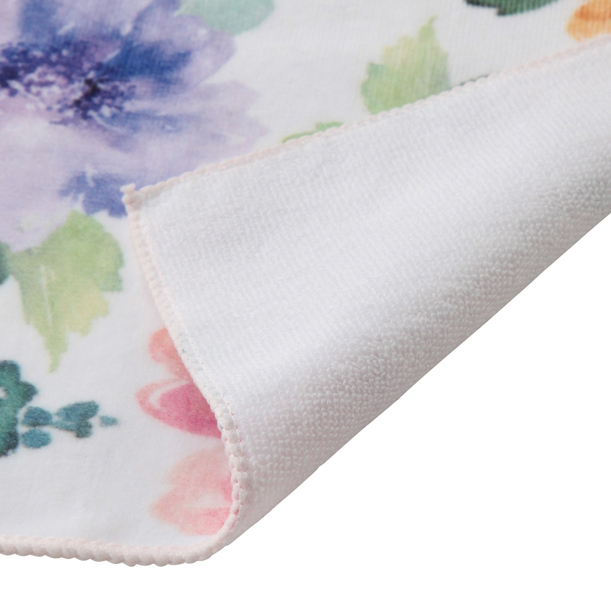 タオル独自の風合いを損うことがないジャガード織りのハンカチです。抗菌防臭機能を追加してリニューアルしました。水彩画のような大きな花柄が特徴です。