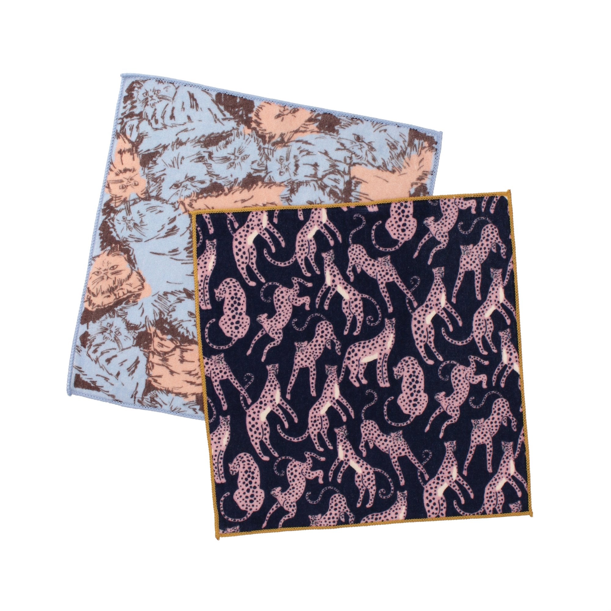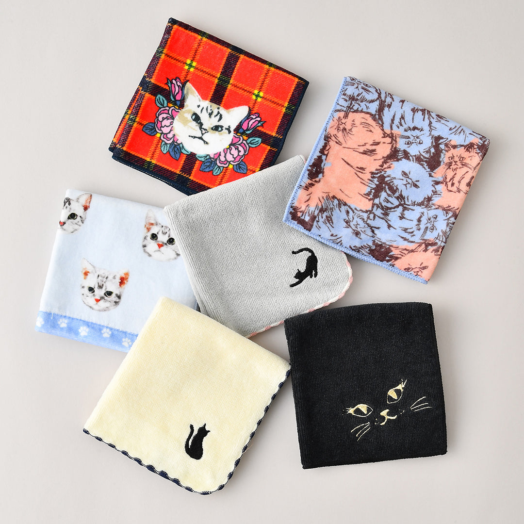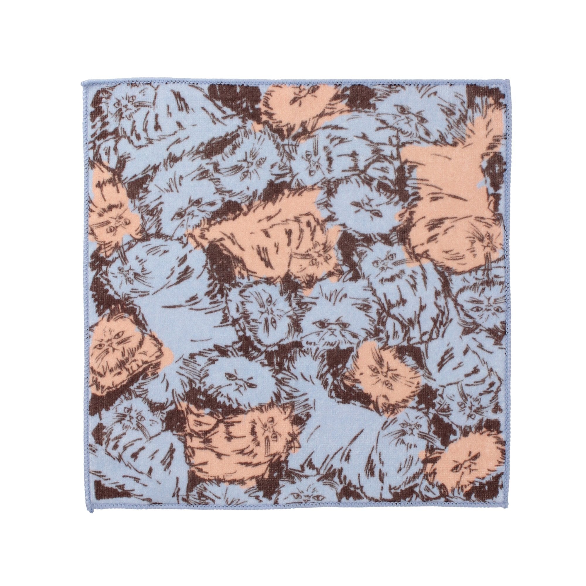 ネコで迷彩柄を表現したハンカチタオルです。抗菌防臭機能を追加してリニューアルしました。落ち着いたブルーとピンクのカラーリングは大人の女性にもおすすめ。柔らかなシャーリング加工の肌ざわりをお楽しみください。