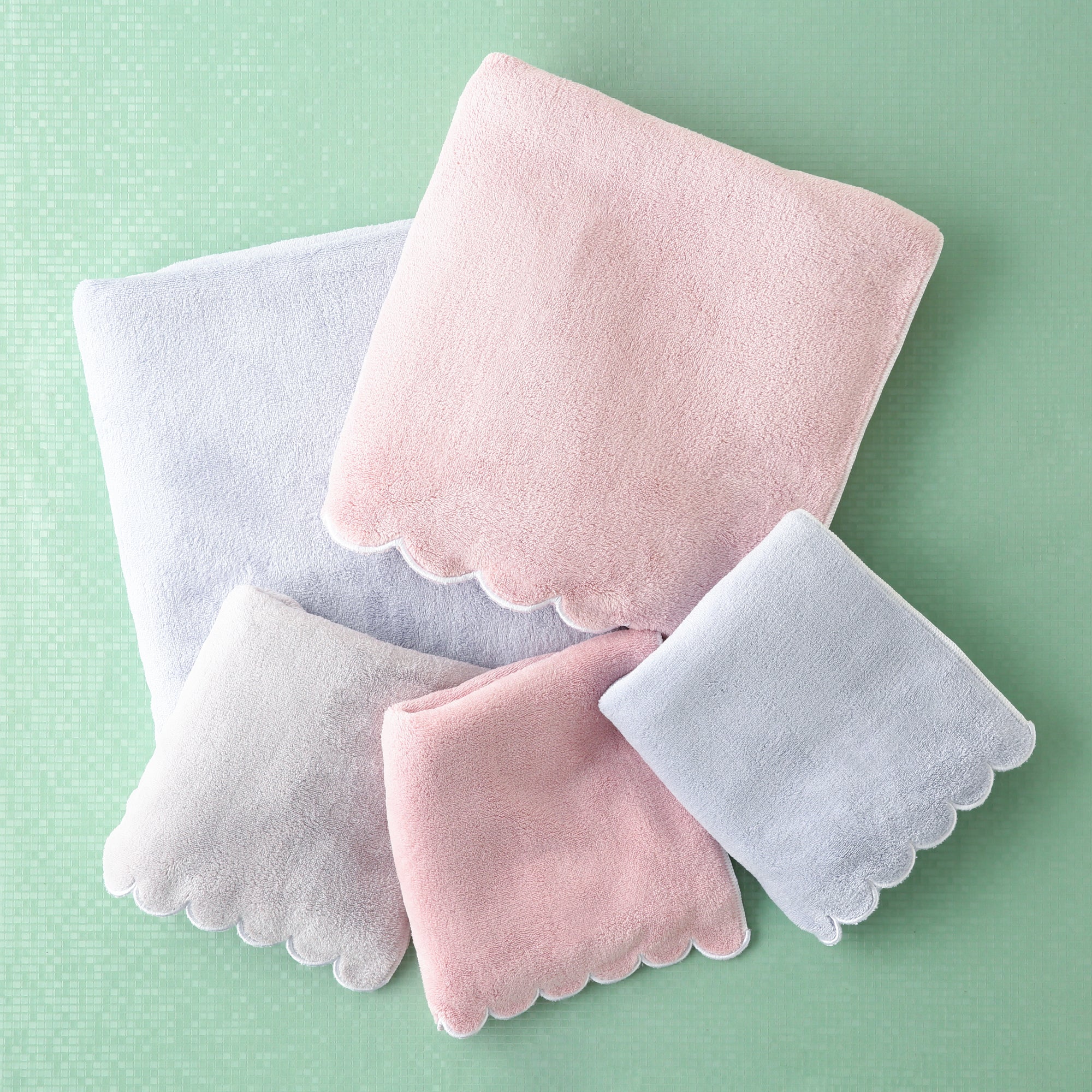マイクロファイバー バスタオル スカラップ ライトブルー