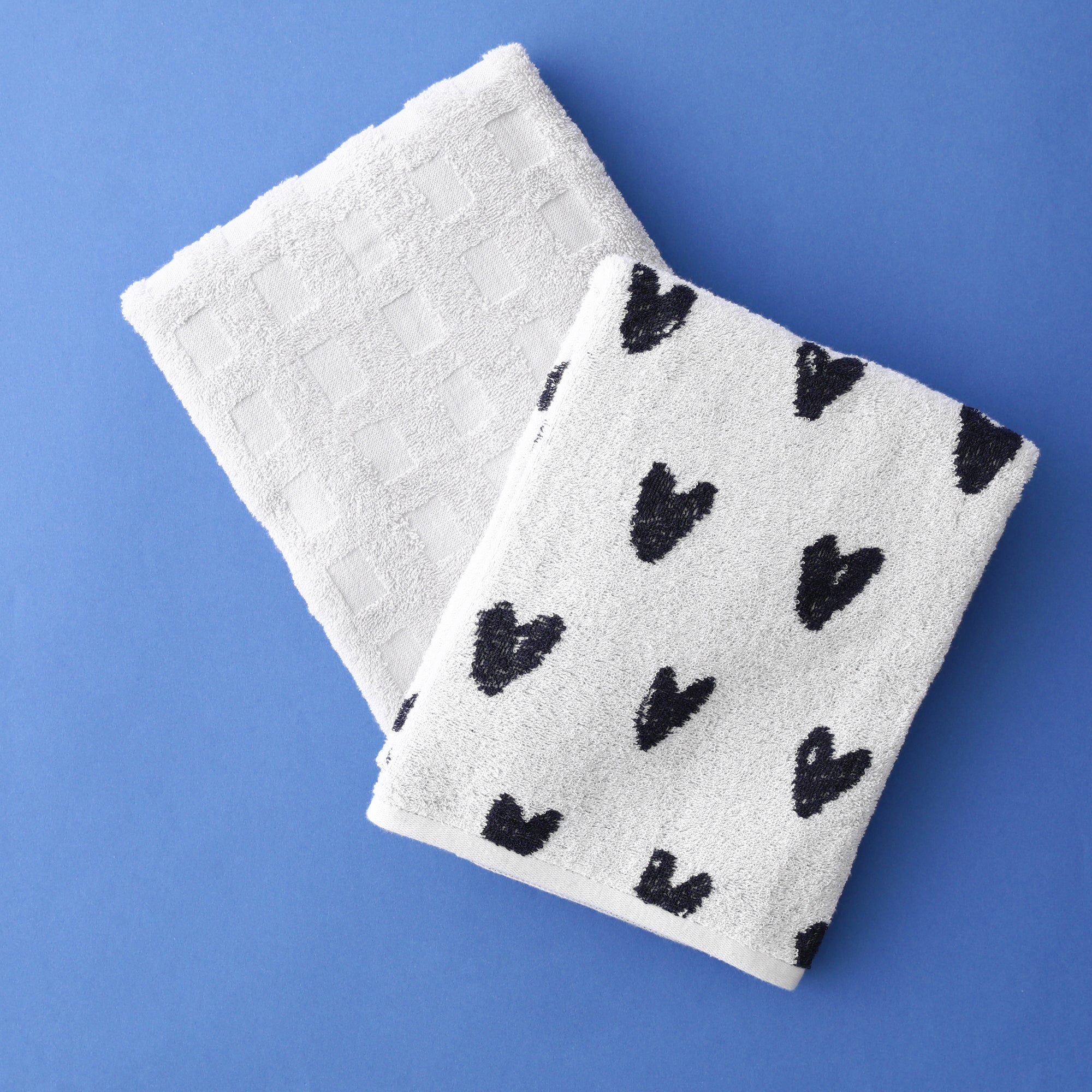 使い勝手のいい60x110cmサイズのお買い得なバスタオルの2枚セットです。1セットで2つの柄が楽しめます。シリーズの種類の中からお好みの柄を選んで、ちょっとした贈り物にもぴったり。薄手で柔らかい肌触りのため、毎日心地よくお使いいただけます。
