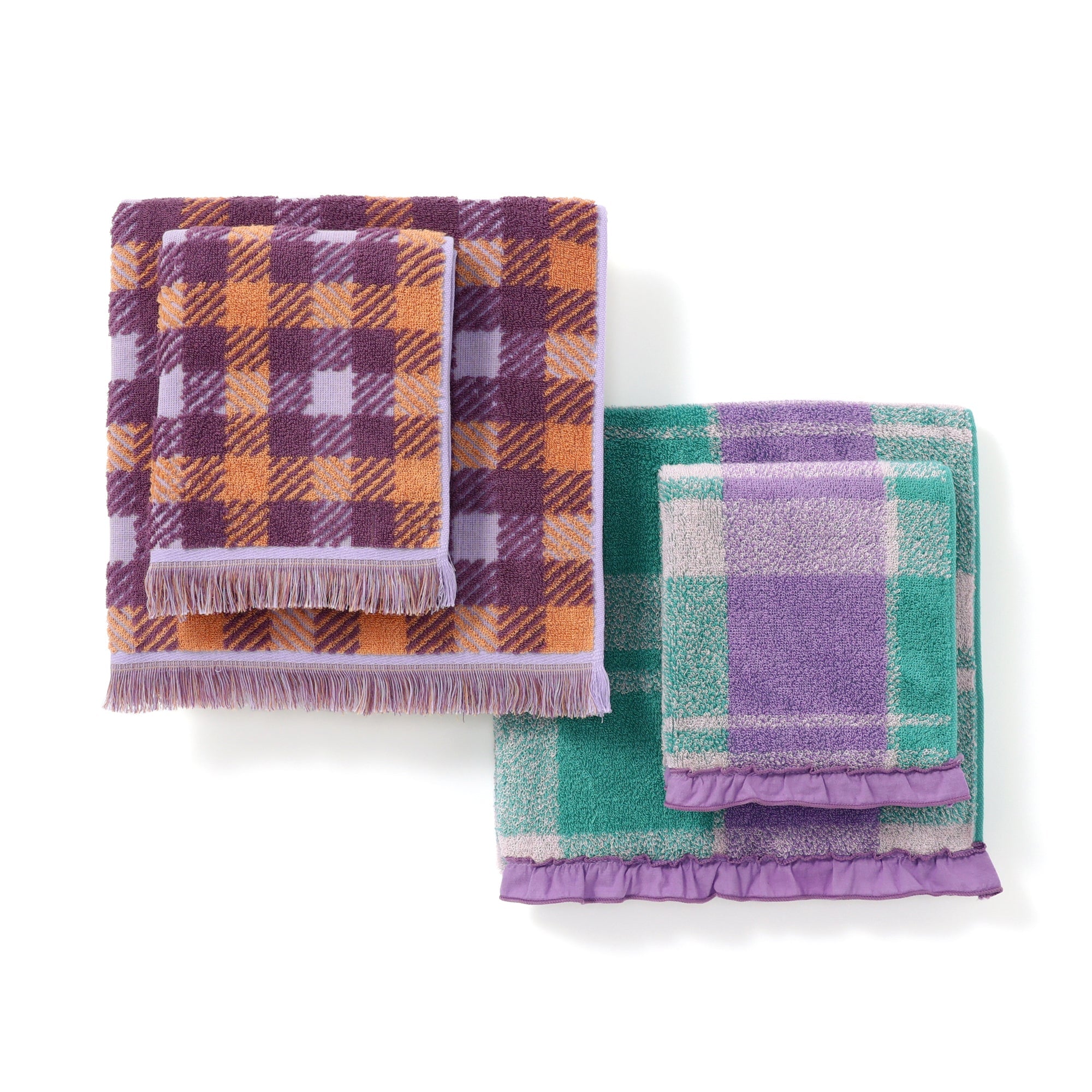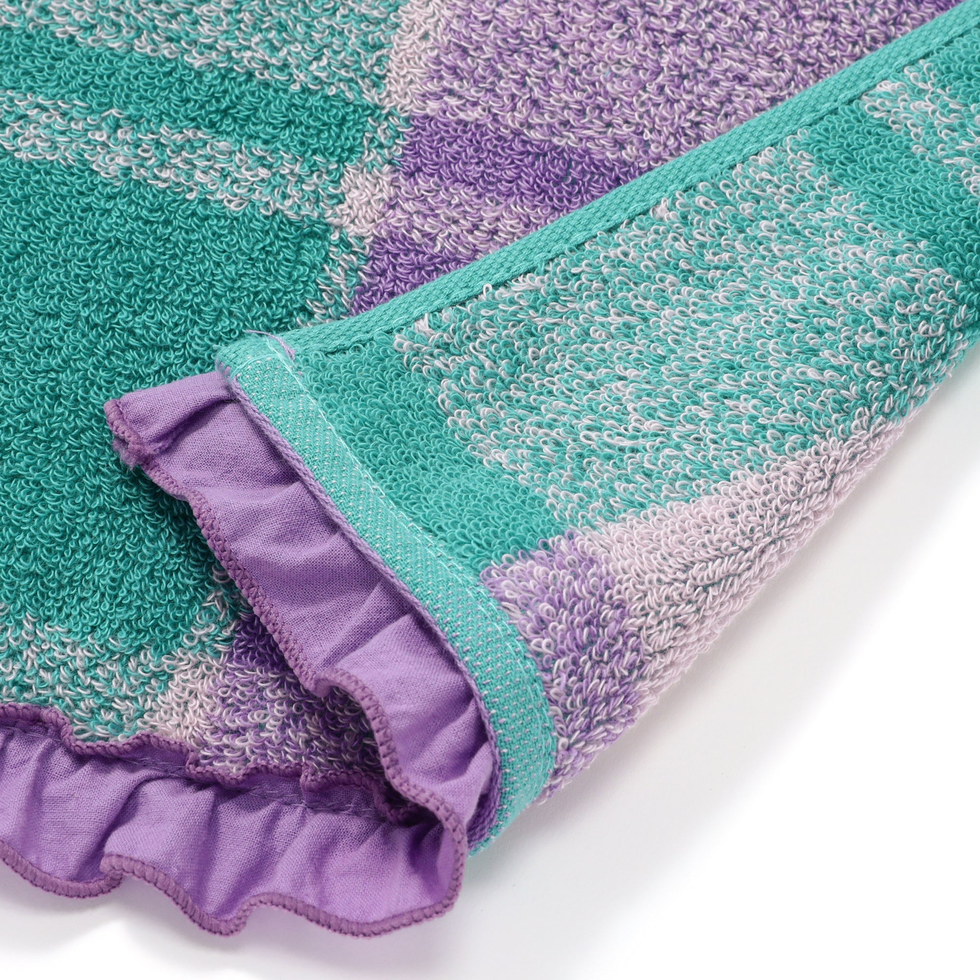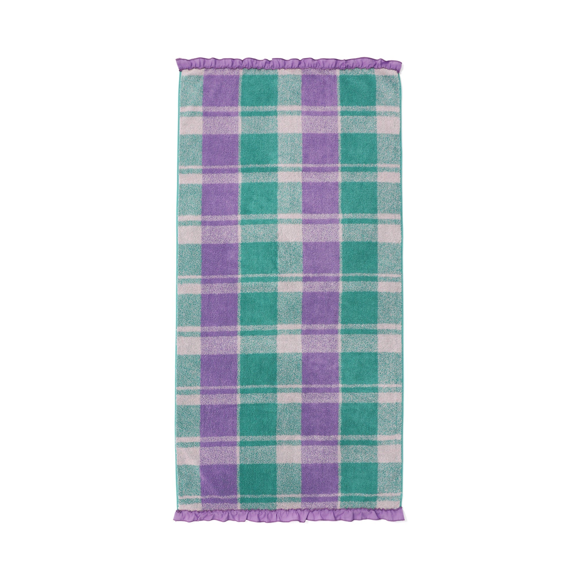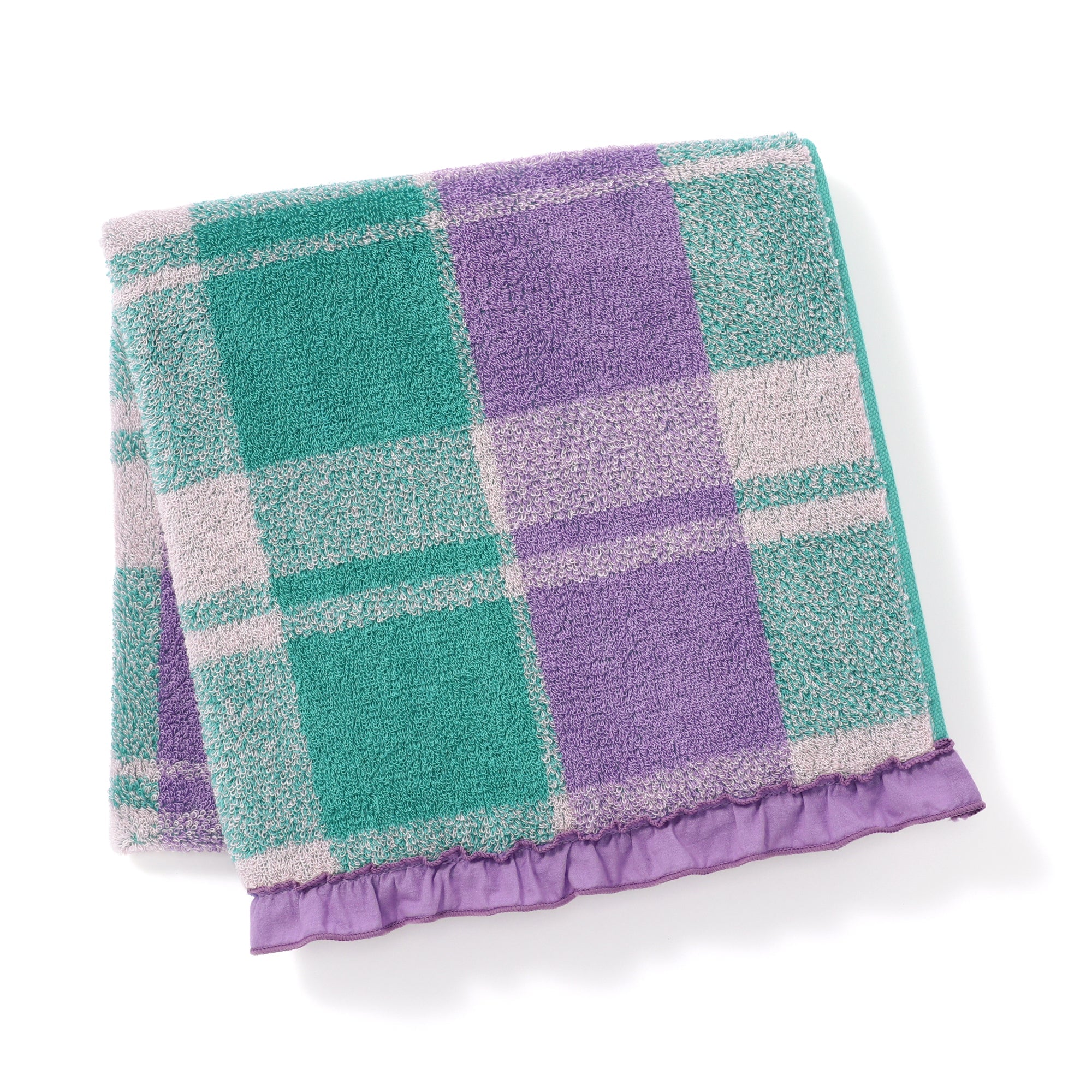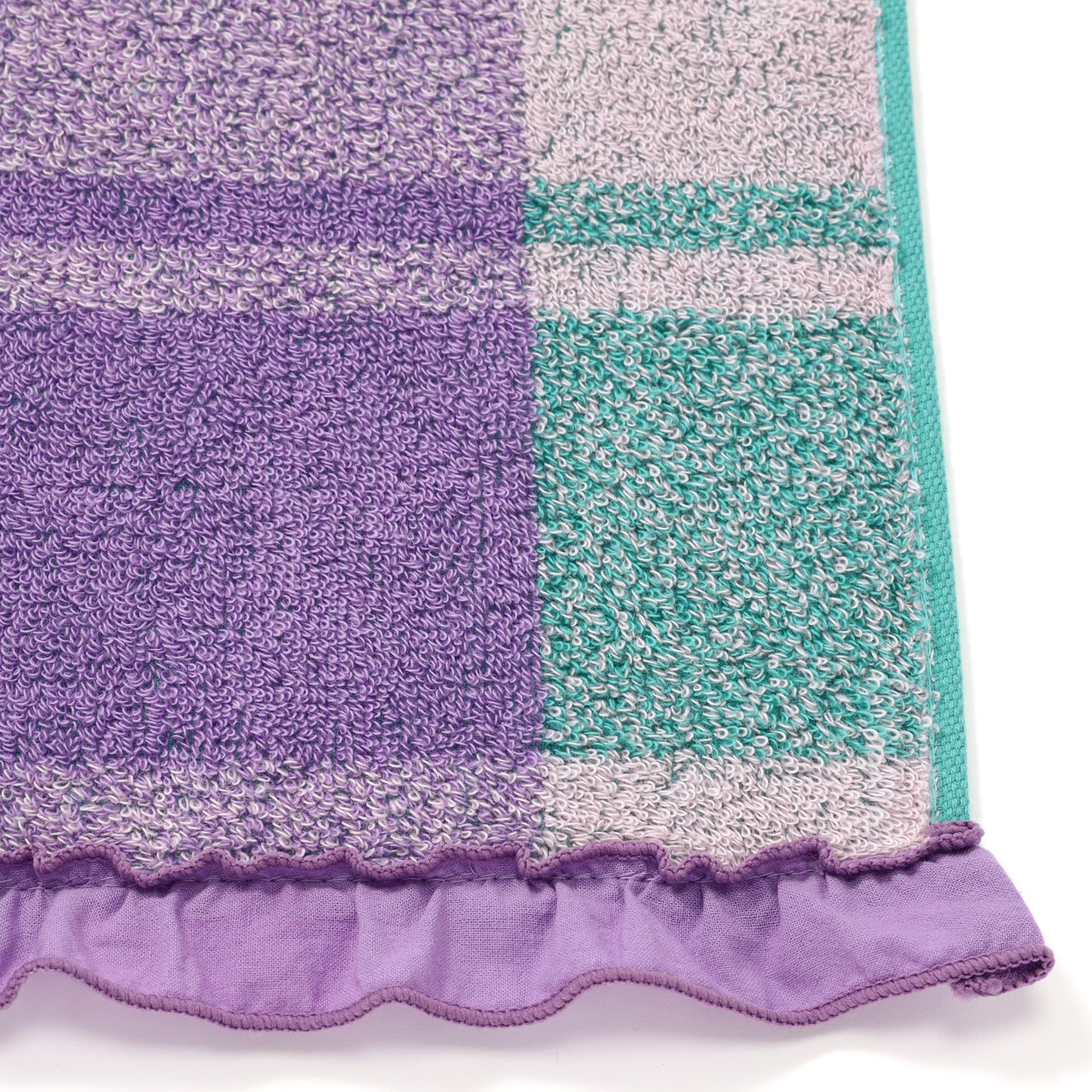 抗菌防臭プラッド フリル バスタオル パープル×グリーン