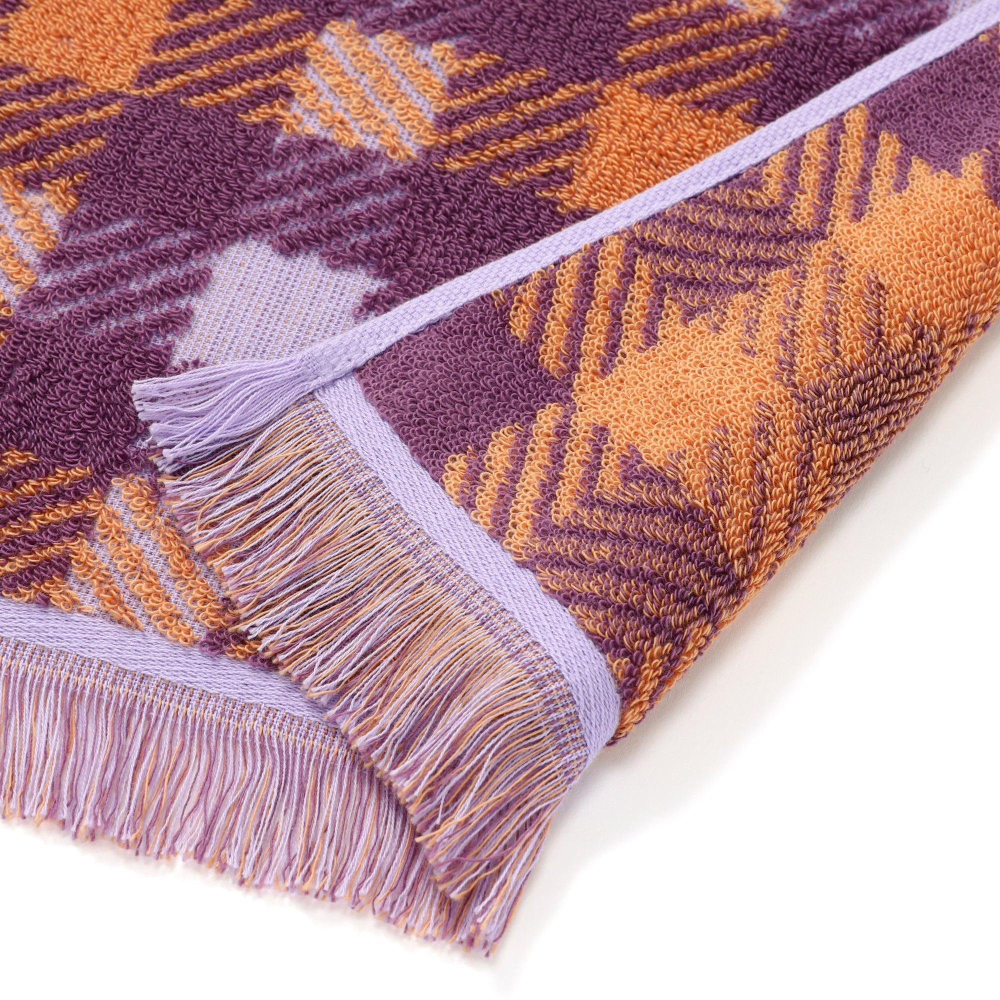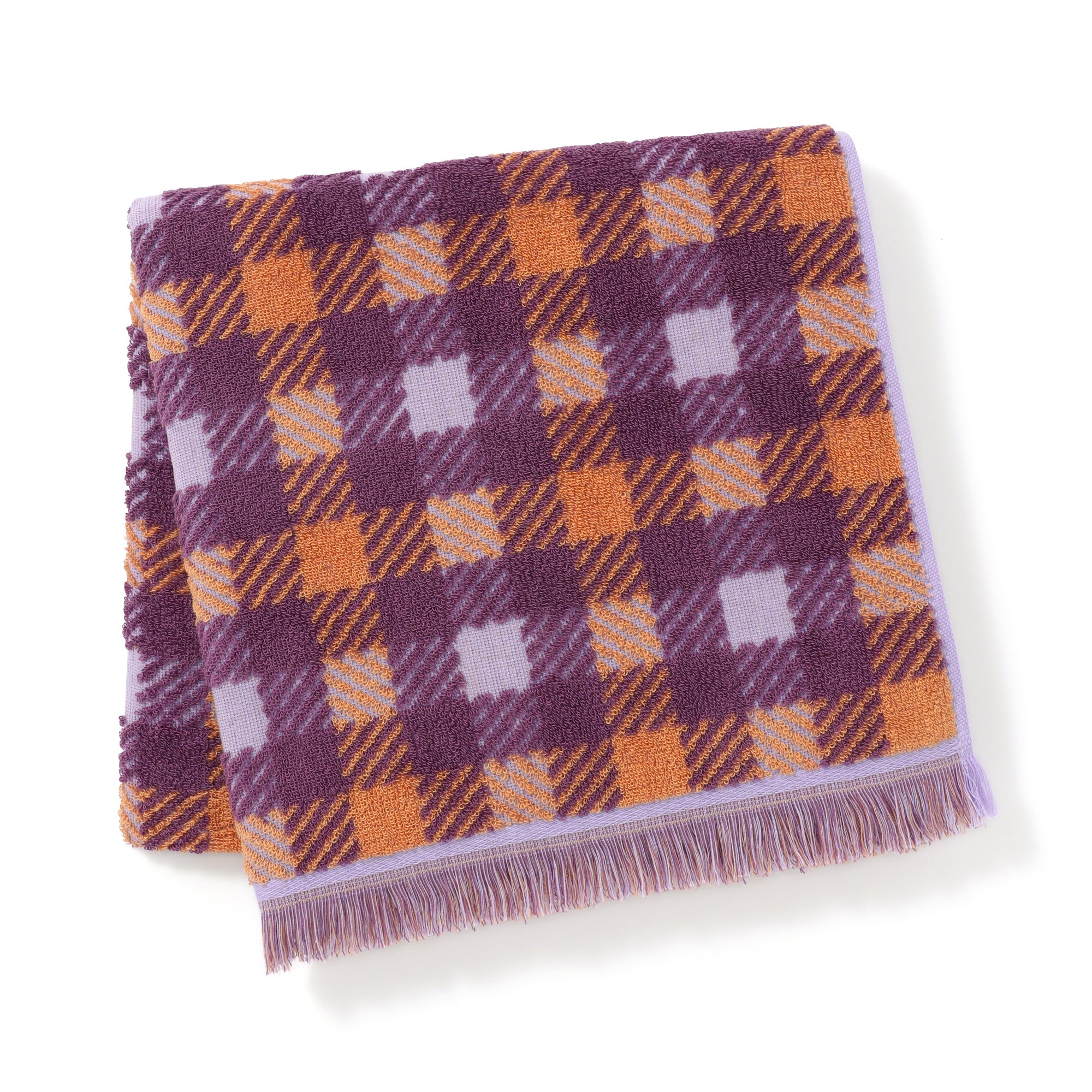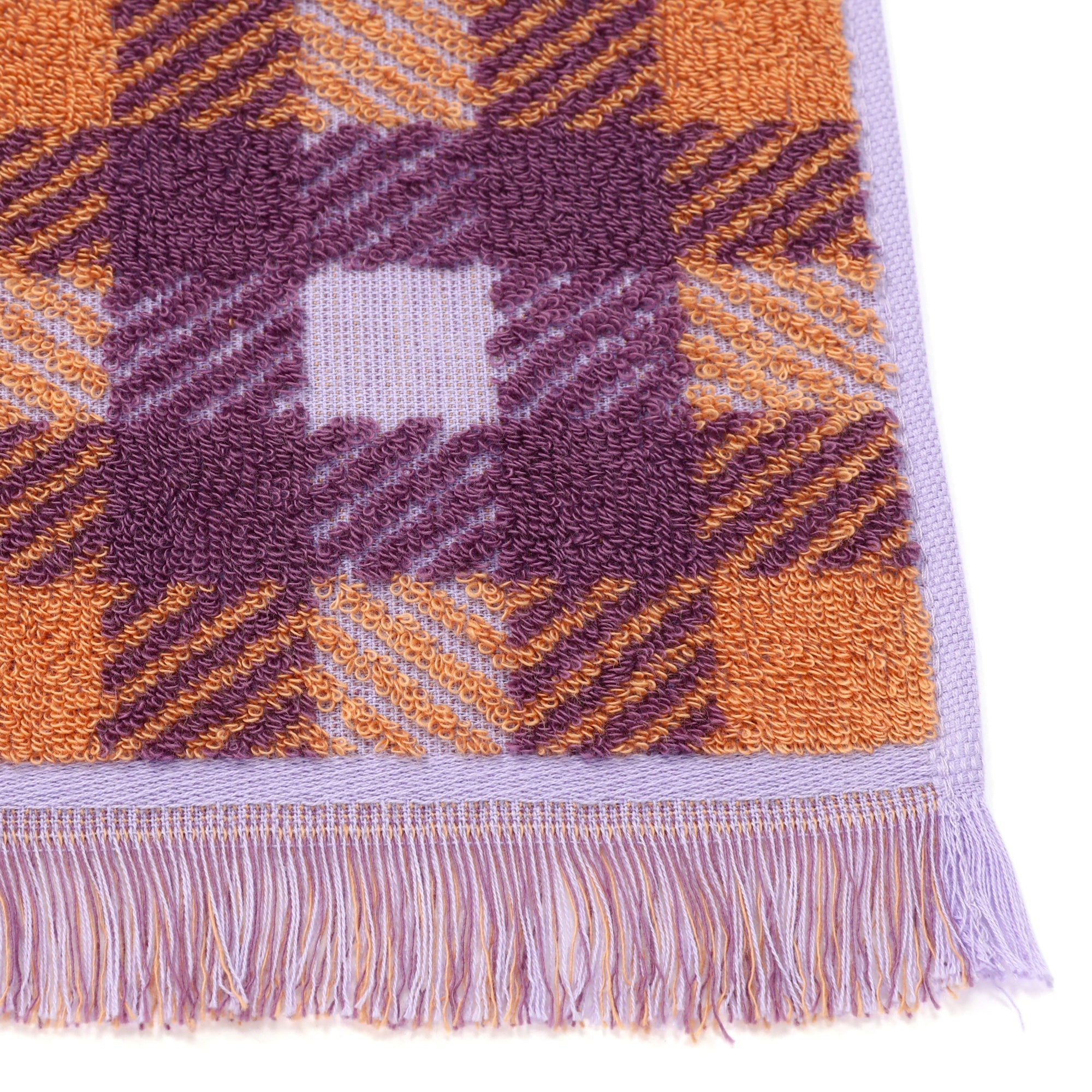 抗菌防臭プラッド フリンジ バスタオル オレンジ×パープル