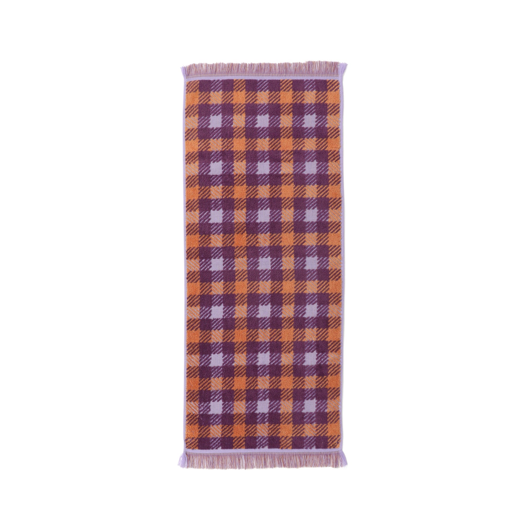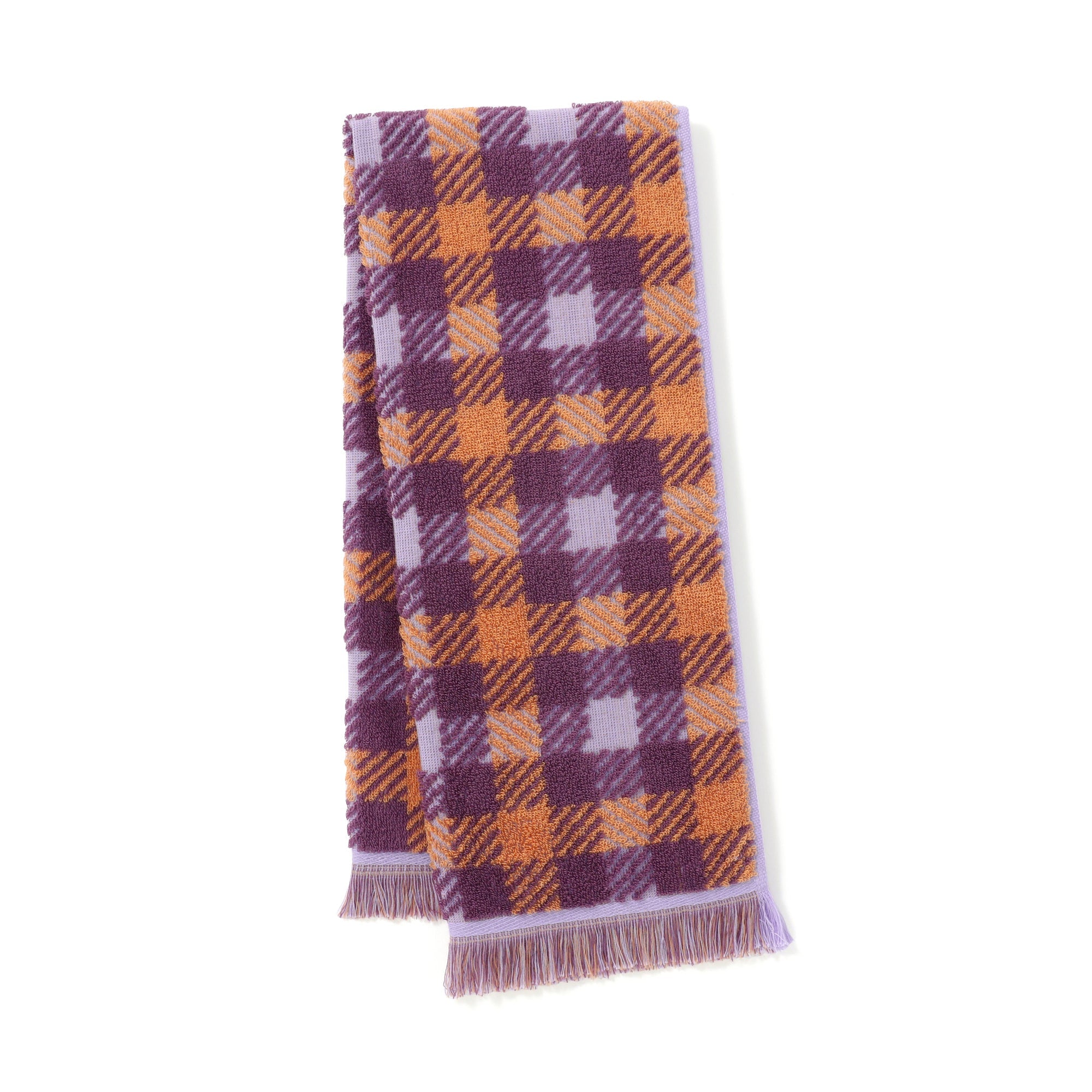 抗菌防臭プラッド フリンジ フェイスタオル オレンジ×パープル