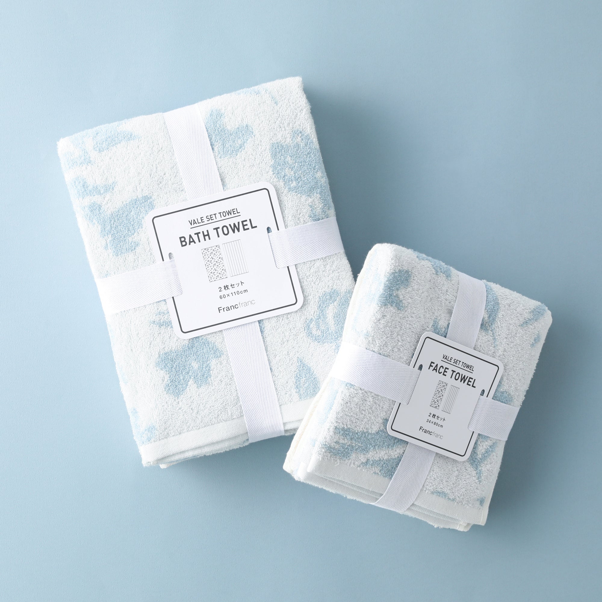 ヴァレセット フェイスタオル ナチュラルフラワー ライトブルー