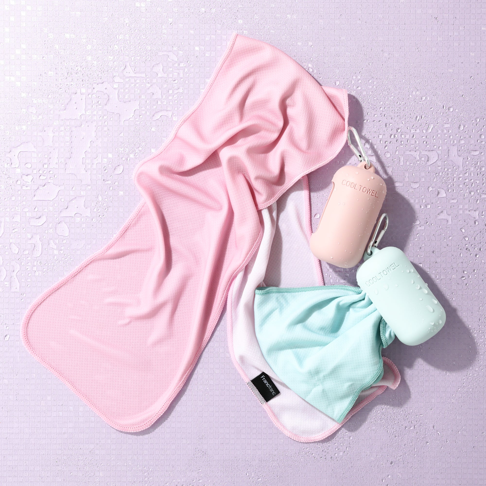 UVカットできる機能性タオルです。UVカット率98.5%の紫外線ケアできる素材を使用し、熱中症予防としてもご使用いただけます。畳んでケースに入れてコンパクトに持ち運びできるので、お出かけにも便利です。Mサイズは肩にかけ、夏場の日焼け防止に適したサイズで、 Sサイズは水で冷やして首元をクールダウンするのに適したサイズです。