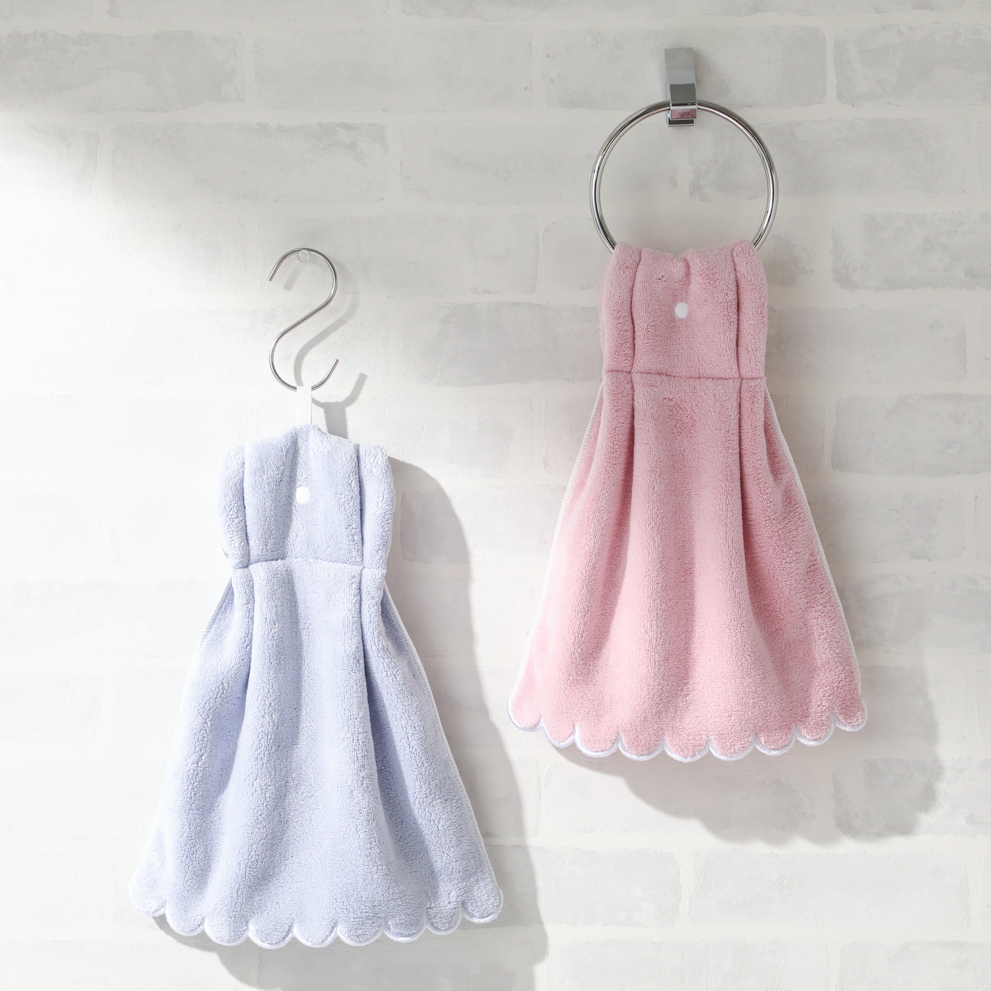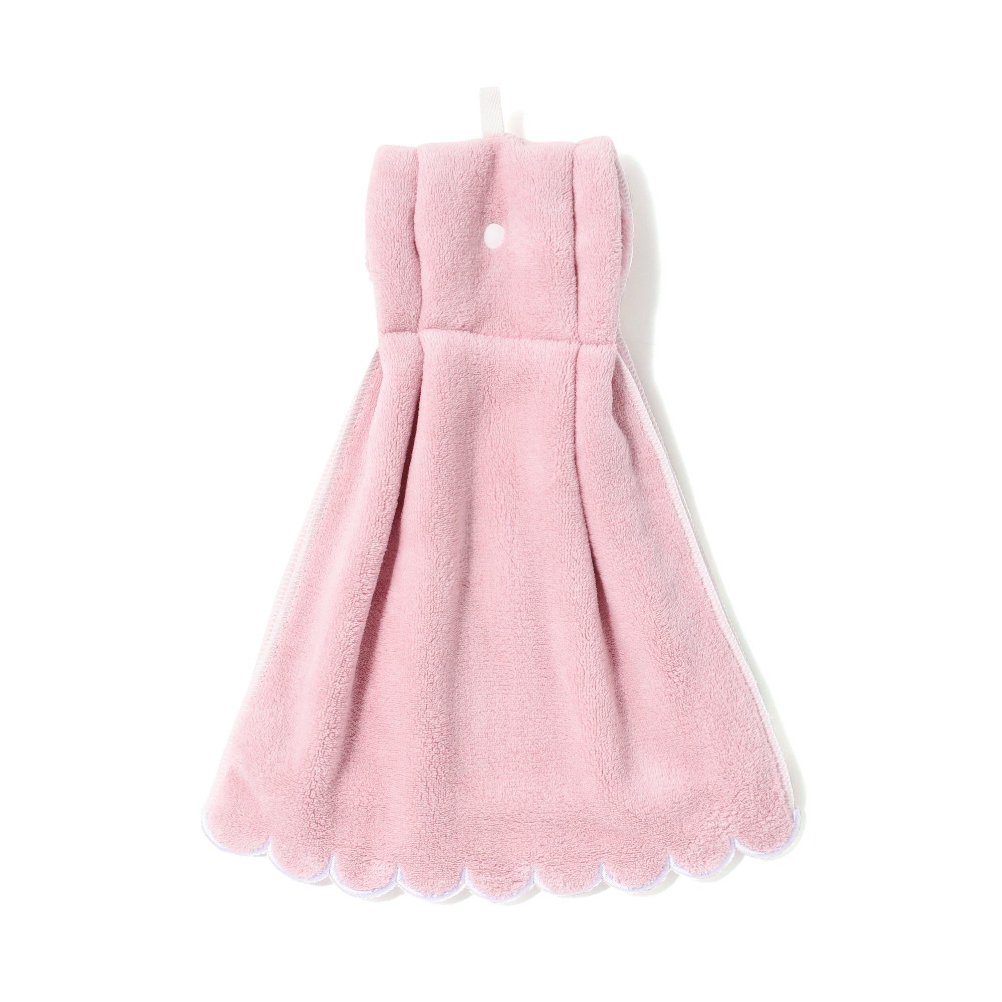 スナップボタン付きのずり落ちにくいタオルです。洗面所のタオルバーやトイレ用のタオルリング、キッチンの布巾掛けなどにタオルを掛けた後、スナップボタンを留めればずれずに使用できて快適。お子様が下から引っ張ってもずれません。キュートなスカラップの縁取りが水回りに彩りを添えます。サイズW300×D10×H350mm素材本体:ポリエステル87%・ナイロン13%、メローロック:ポリエステル100%、紐:コットン100%、釦:ポリエステル樹脂重量0.1 kgカラーPK品番 1105170077315 全国一律550円(税込)です。雑貨の商品金額合計が5,000円(税込)以上の場合、送料無料で配送いたします。※手数料、ラッピング料、付帯サービス料は含みません。※新生活期・年末年始は出荷や配送の繁忙期となるため、日時指定をいただいてもご希望日時通りお届け出来ないことがございます。■洗濯機:可■ドライクリーニング:不可■タンブル乾燥:不可■アイロン:否■はっ水加工:無■直接日光やライトに長時間照らされると変色することがあります。■お洗濯の際は、多少色落ちや毛羽落ちすることがありますので他のものとは別にお洗いください。■柔軟剤をご使用されますと、パイル糸が抜けやすく、また毛羽が落ちやすくなりますので、ご使用をお避けください。■色移りを防止するため、濡れた状態で長時間放置しないでください。■塩素系漂白剤の使用はお避けください。■タンブル乾燥は避け、形を整えて陰干ししてください。■この商品は、タオル掛けからずれ落ちにくくする為にスナップボタンをつけております。スナップボタン部分で顔や手を拭かないようにご注意ください。■原産国:中国
