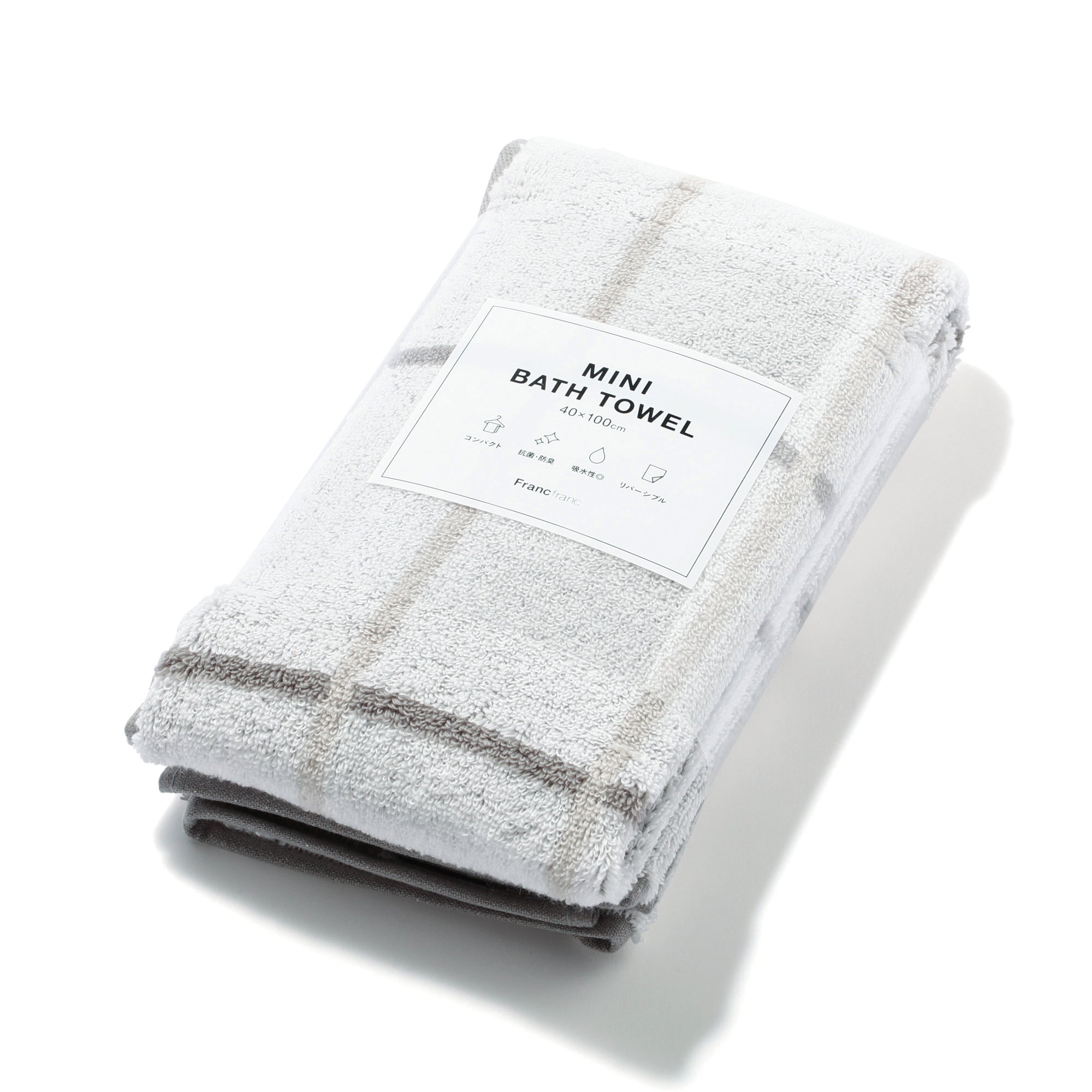 お洗濯が楽でかさばらずに収納できるミニバスタオルです。髪とからだをきっちり拭き取れるコンパクトなサイズだから、バスタオルでは大きすぎフェイスタオルでは小さすぎるという方におすすめです。無撚糸で吸水性に優れ、ふんわりとしたボリュームが楽しめます。気分によって使い分けできるリバーシブルデザインも嬉しいポイント。お好みに合わせて選べるカラー・柄を豊富にご用意しました。部屋干しでも安心の抗菌防臭機能付き。サイズW400×D1000×H5mm素材コットン100%重量0.145 kgカラーLGY品番 1105170078749 全国一律550円(税込)です。雑貨の商品金額合計が5,000円(税込)以上の場合、送料無料で配送いたします。※手数料、ラッピング料、付帯サービス料は含みません。※新生活期・年末年始は出荷や配送の繁忙期となるため、日時指定をいただいてもご希望日時通りお届け出来ないことがございます。■洗濯機:可■ドライクリーニング:不可■タンブル乾燥:不可■アイロン:不可■はっ水加工:無■直射日光やライトに長時間照らされると変色することがあります。■素材の特性上、毛羽立ち、毛羽落ち、パイル抜けが生じます。■初め数回のお洗濯には柔軟剤の使用はお避けください。■摩擦やお洗濯により色落ちや色移りが生じることがあります。濡れた状態で長時間放置 しないでください。■くず取りネットと洗濯ネットを併用し単独洗いをし てください。■お洗濯により多少縮みます。■漂白の際は酸素系漂白剤を使用してください。■タンブル乾燥は避け形を整えて陰干ししてください。■特性上、糸が飛び出したりしますので引っ張ったり、引っ掛けたりしないでください。抗菌・防臭作用は、永続的な効果ではありません。■原産国:中国