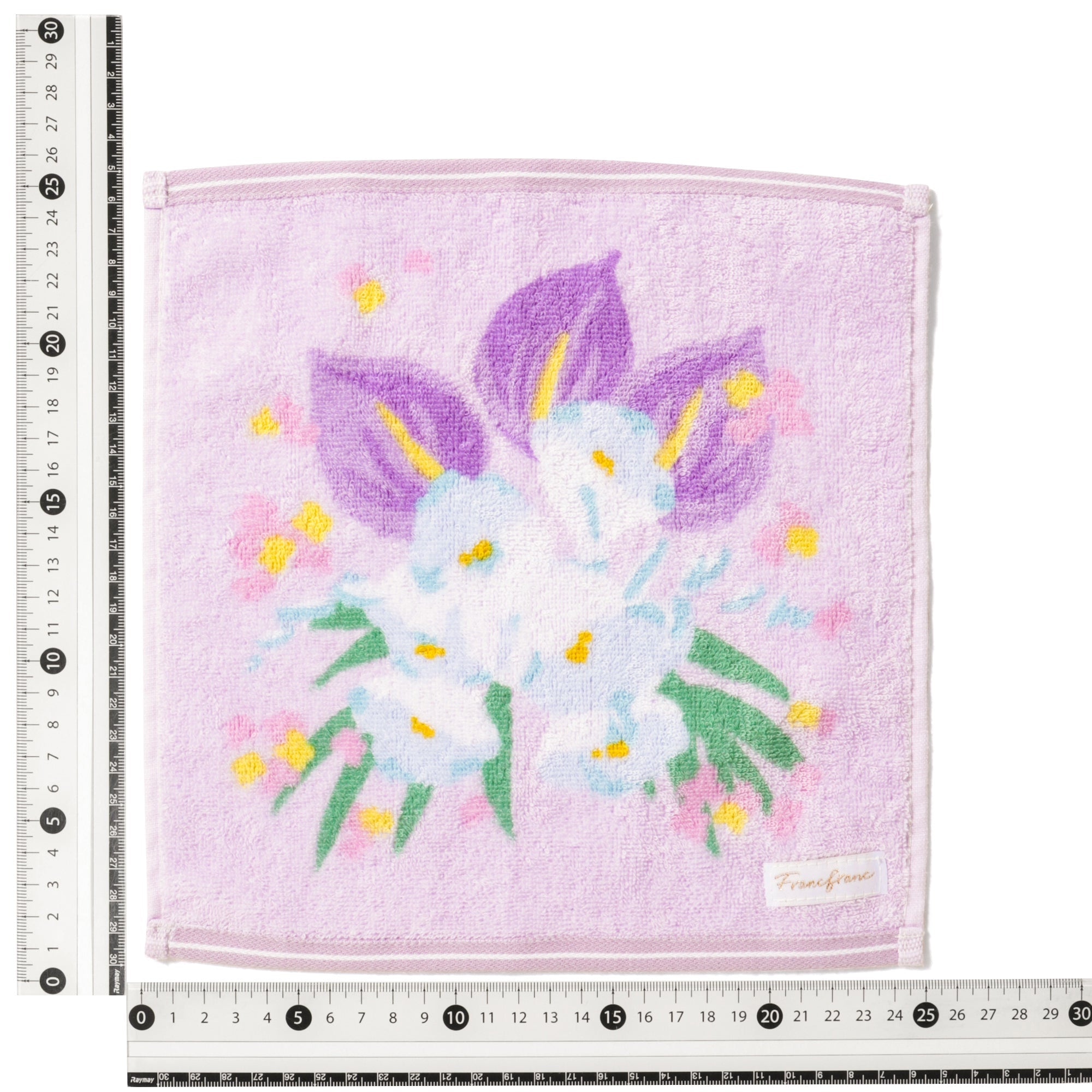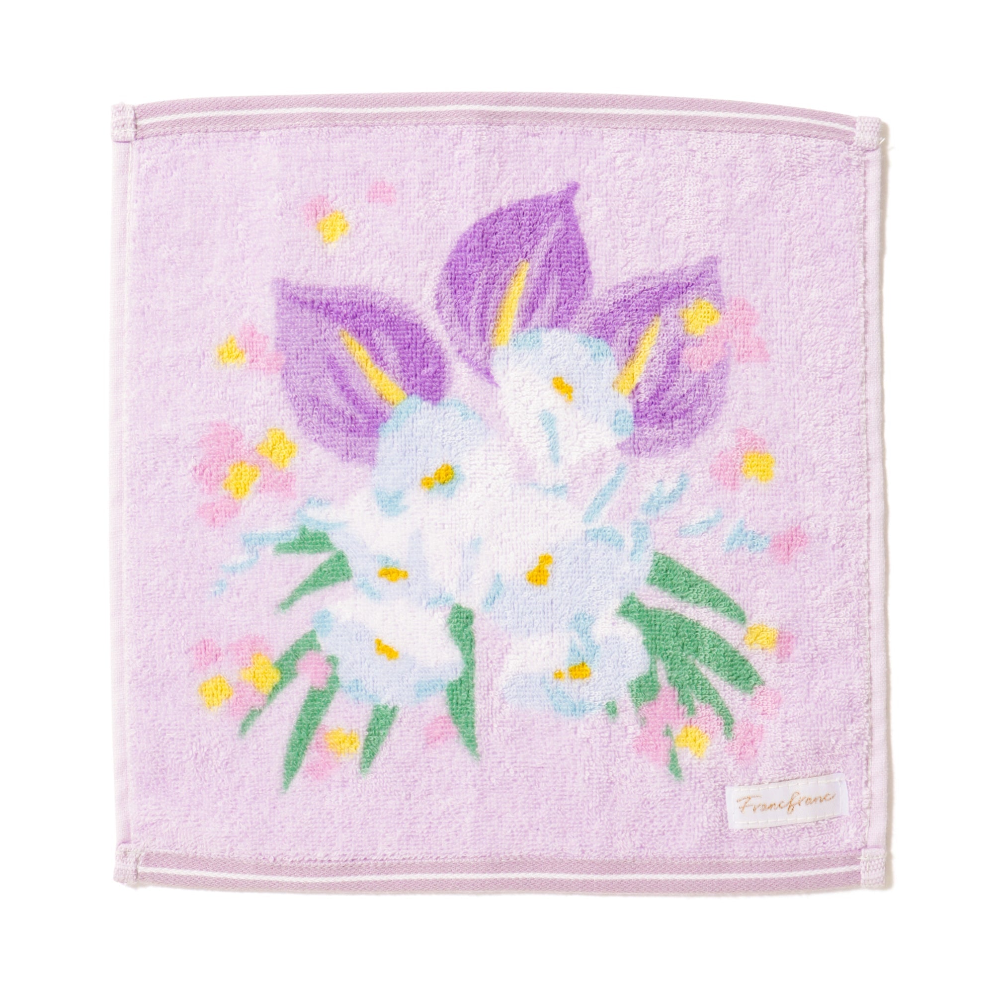 花束デザインにカラーが持つメッセージを込めたハンカチタオルです。パープルの色言葉は「おしゃれ」。センス溢れるあの人への感謝をこめたプチギフトにおすすめです。抗菌防臭機能つきで衛生面も安心してご使用いただけます。