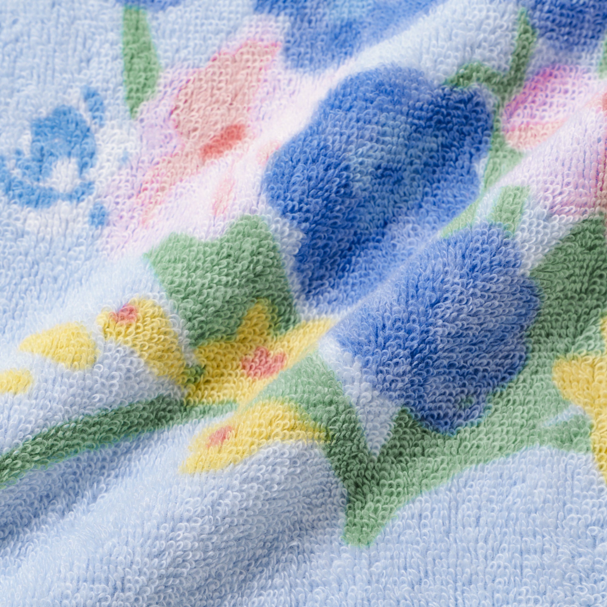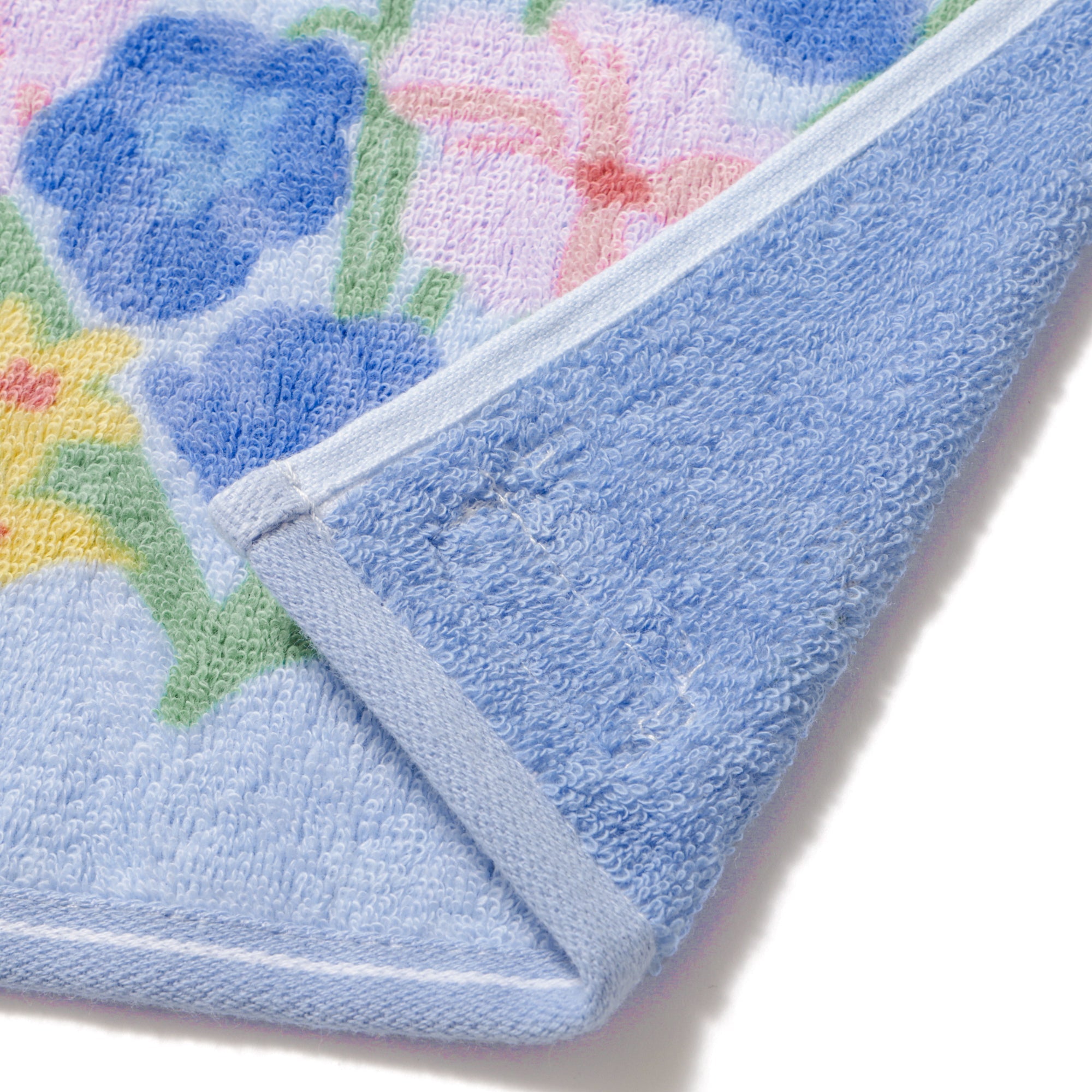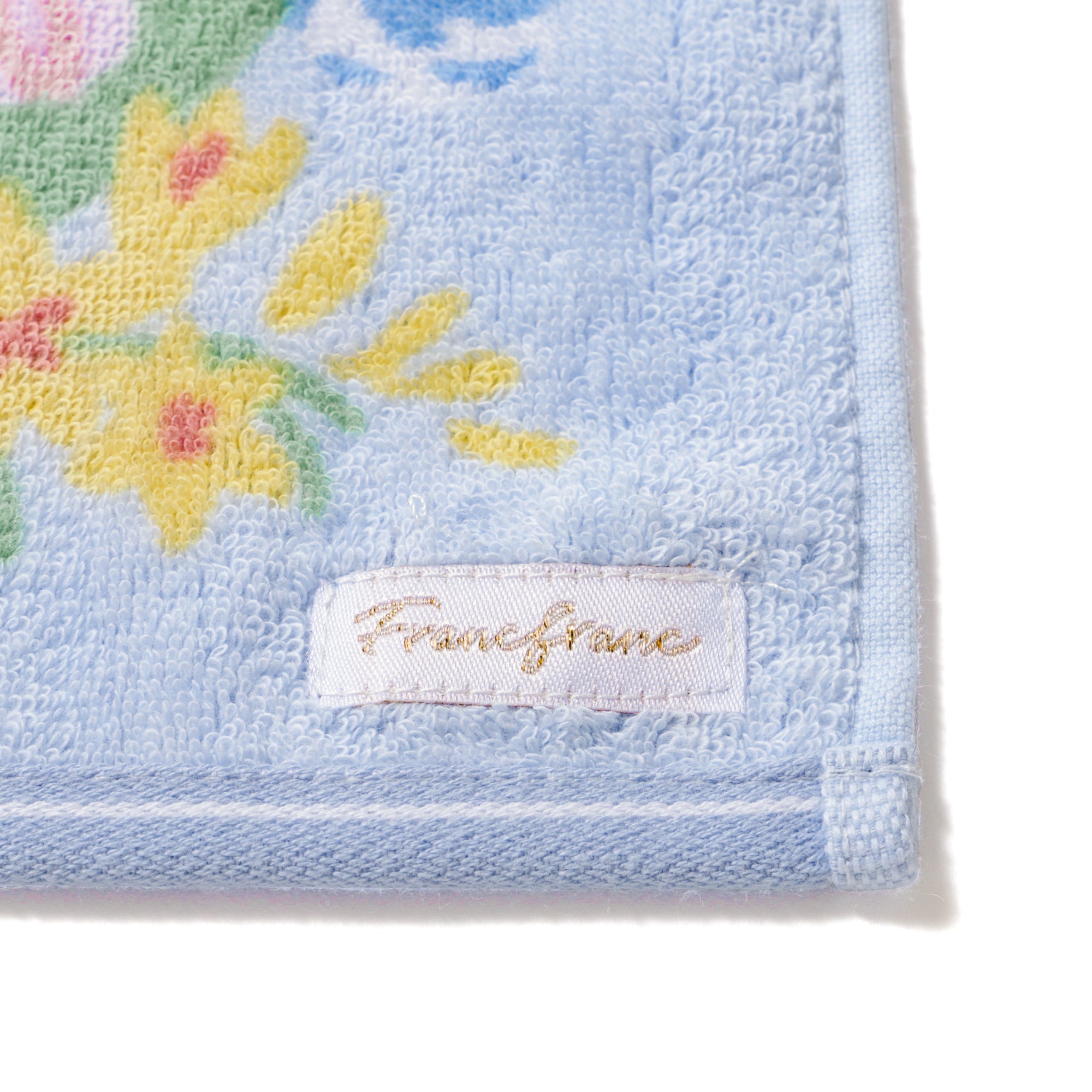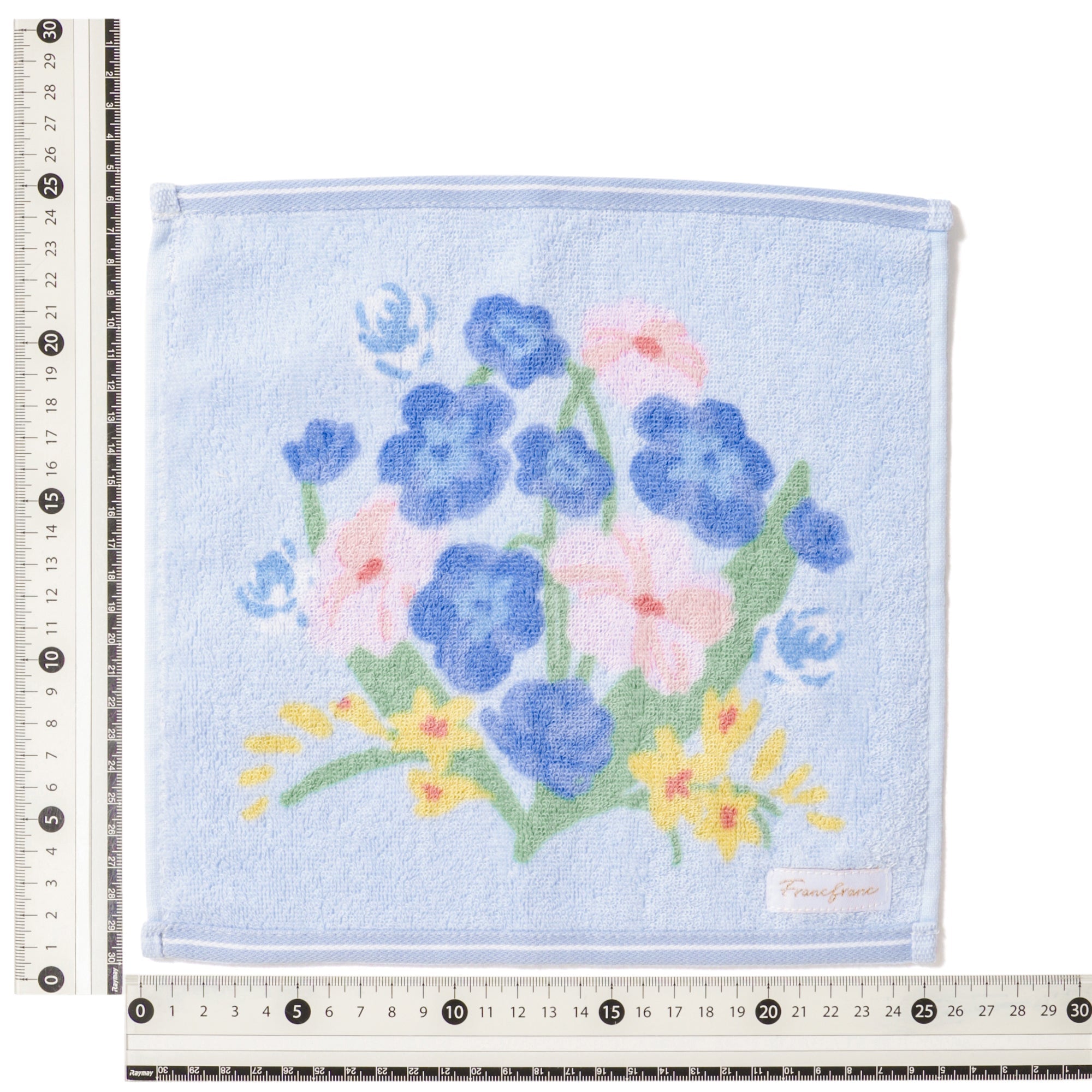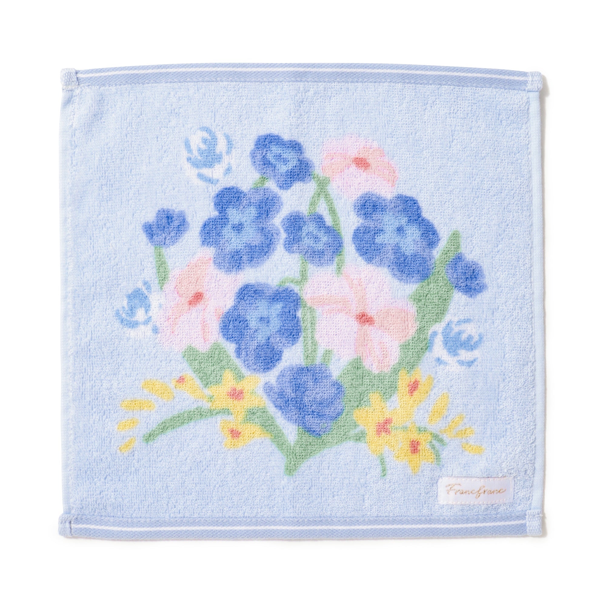 花束デザインにカラーが持つメッセージを込めたハンカチタオルです。ライトブルーの色言葉は「誠実」。いつもまっすぐなあの人への感謝をこめたプチギフトにおすすめです。抗菌防臭機能つきで衛生面も安心してご使用いただけます。