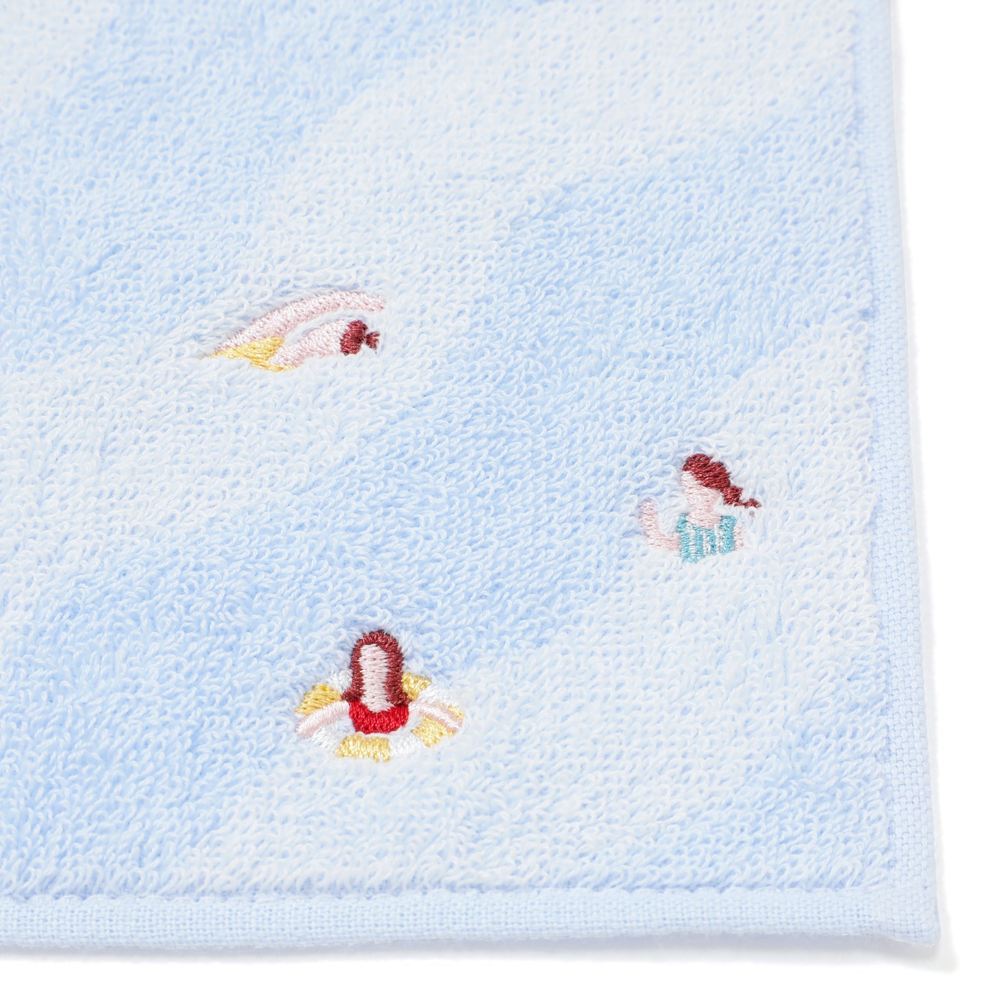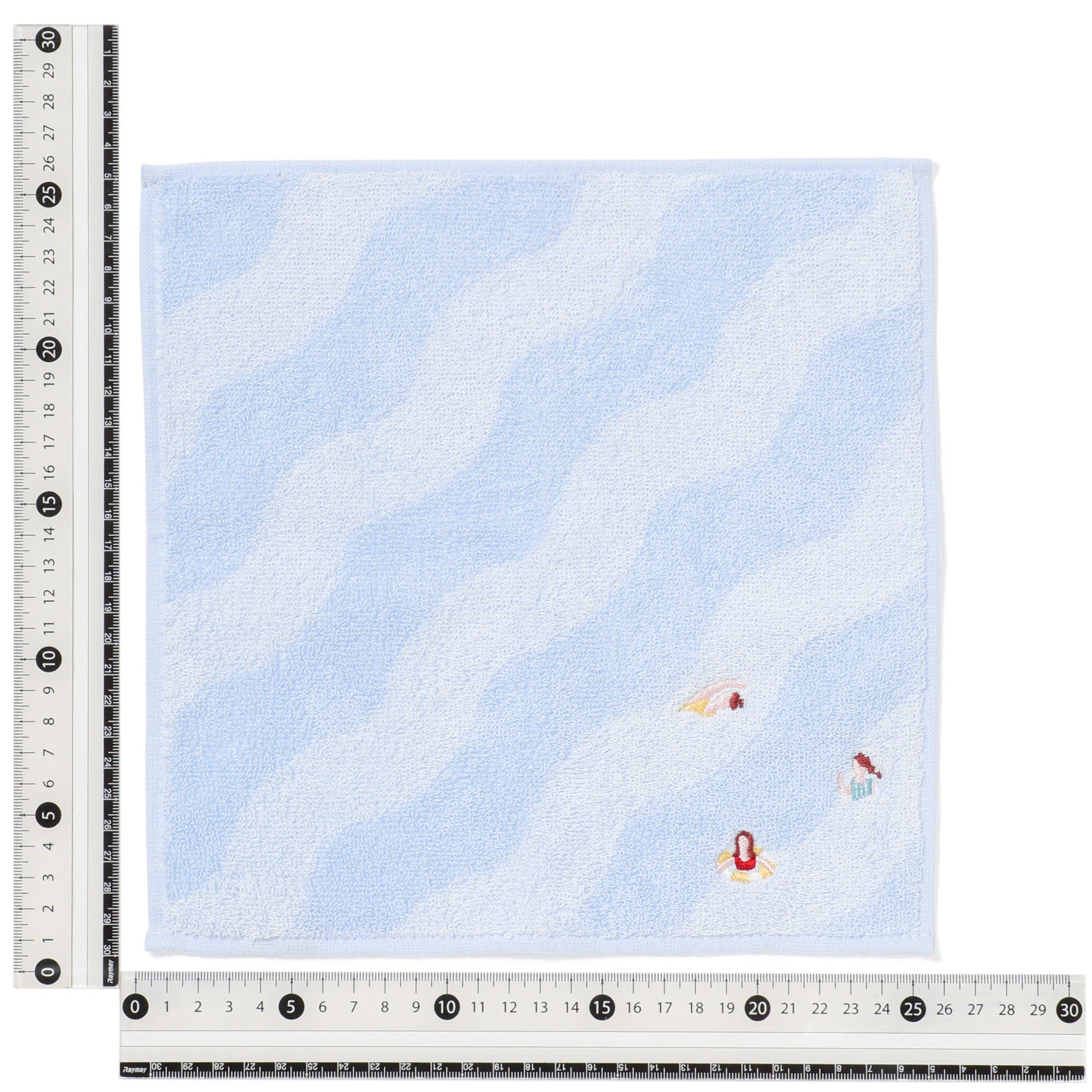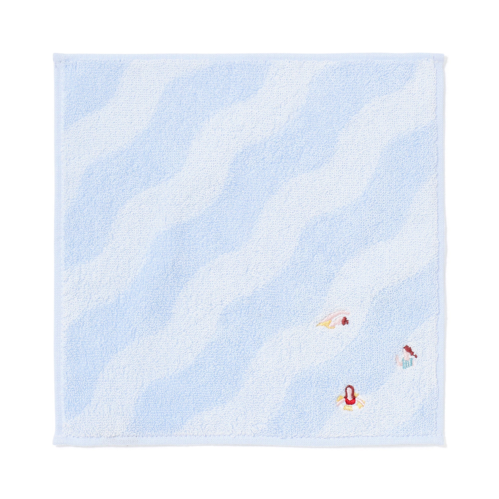 抗菌防臭機能を施したハンカチタオルです。波と海で泳ぐ女性たちを刺繍で表現しました。