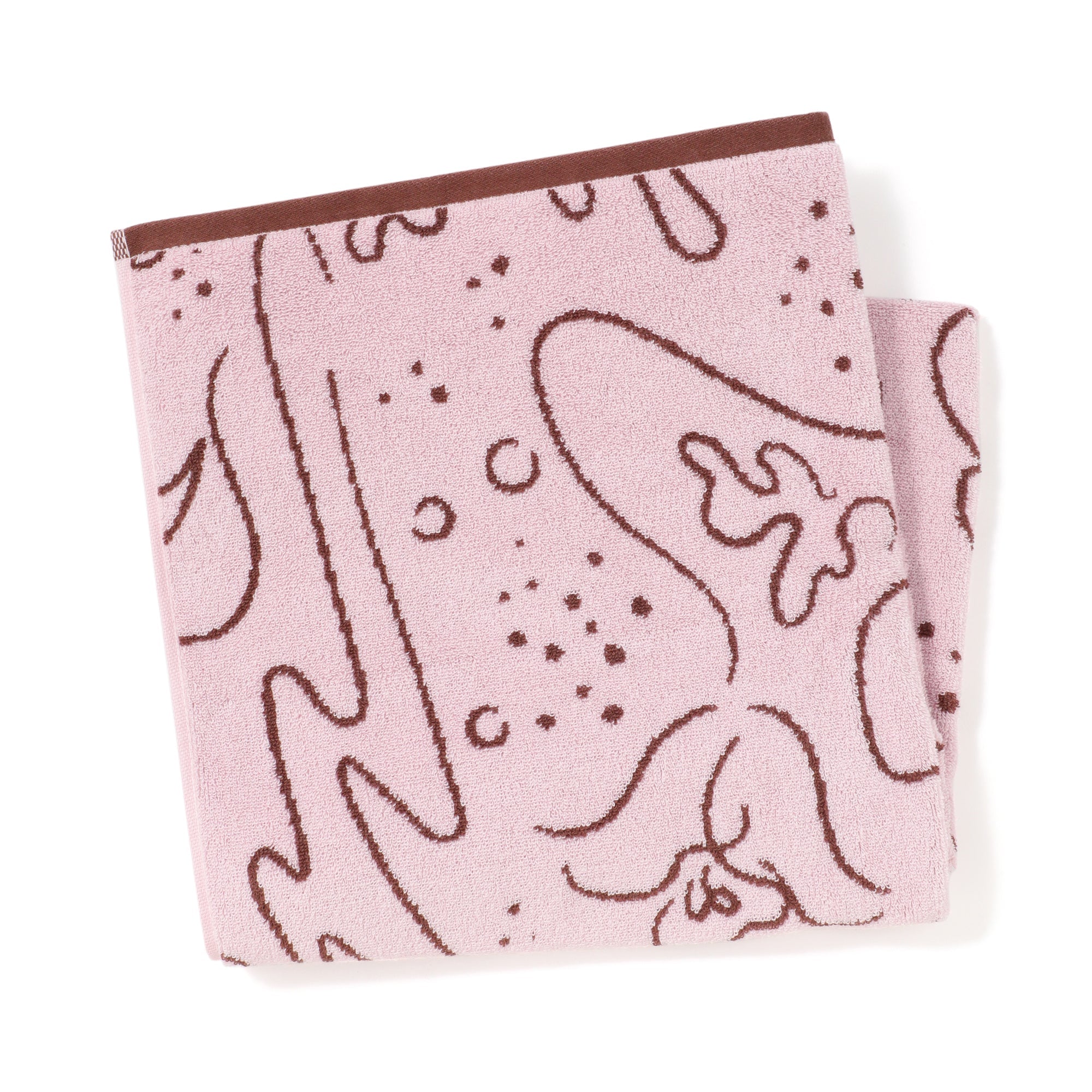 全面に柄を入れた、アートのようなバスタオルです。柄をパイルではっきりと見せながら、甘撚りで肌ざわりのよい感触に仕上げています。嬉しい抗菌防臭機能付き。柄は空間を華やかにする、花柄、アブストラクト柄、幾何学柄、ドローイング柄の4パターン。サイズはウォッシュ、フェイス、バスの3サイズをご用意しています。お気に入りの柄でライン使いいただくことで自分らしいバスタイムをお楽しみいただけます。