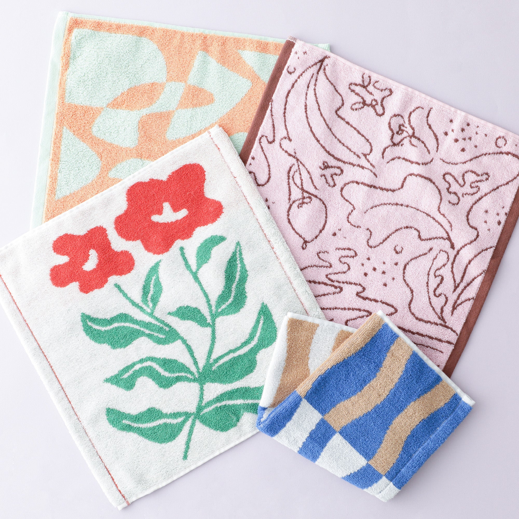 全面に柄を入れた、アートのようなウォッシュタオルです。柄をパイルではっきりと見せながら、甘撚りで肌ざわりのよい感触に仕上げています。嬉しい抗菌防臭機能付き。柄は空間を華やかにする、花柄、アブストラクト柄、幾何学柄、ドローイング柄の4パターン。サイズはウォッシュ、フェイス、バスの3サイズをご用意しています。お気に入りの柄でライン使いいただくことで自分らしいバスタイムをお楽しみいただけます。