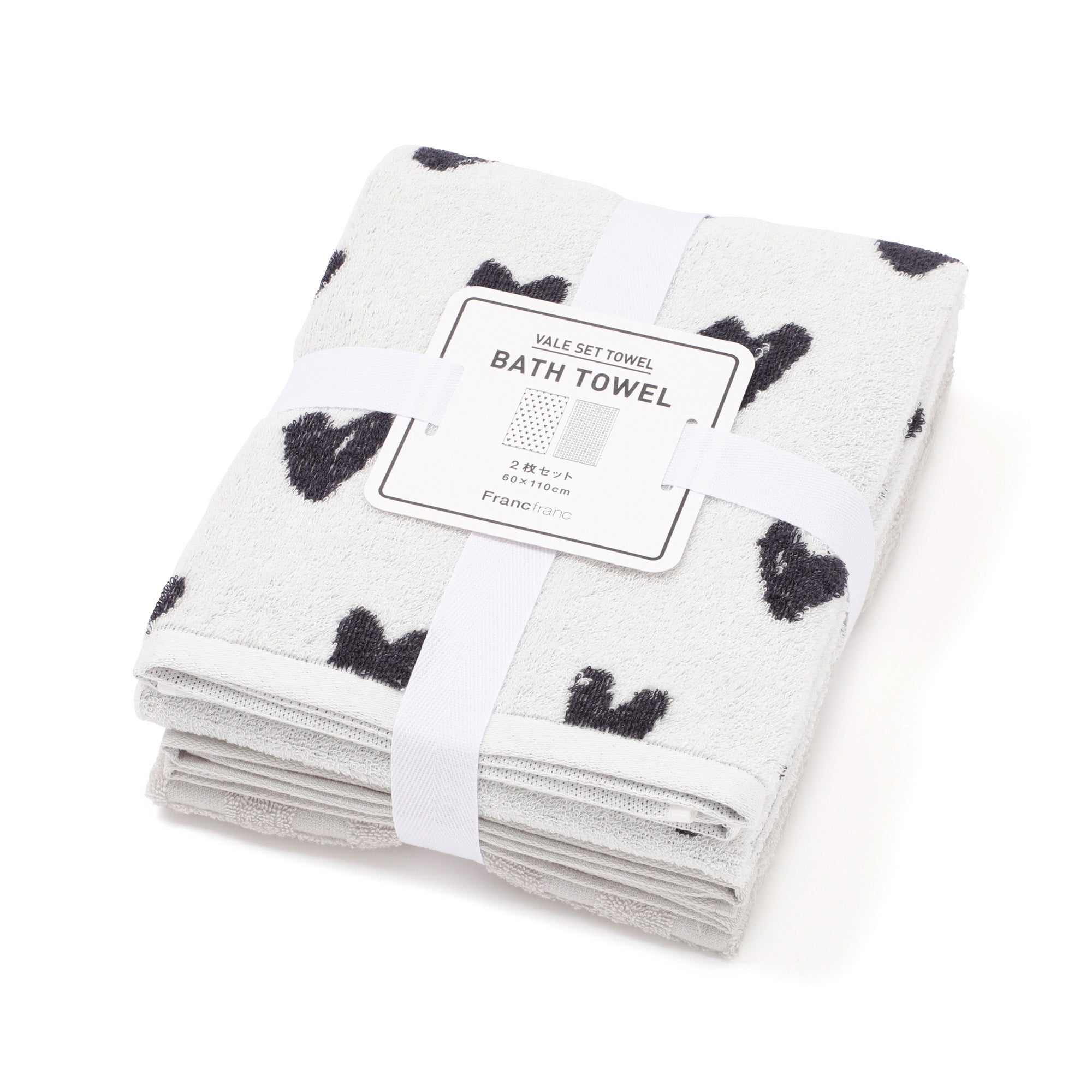 使い勝手のいい60×110cmサイズのお買い得なバスタオル2枚セットです。1セットで2つの柄が楽しめます。シリーズの中からお好みの柄を選んで、ちょっとした贈り物にもぴったり。薄手で柔らかい肌触りのため、毎日心地よくお使いいただけます。