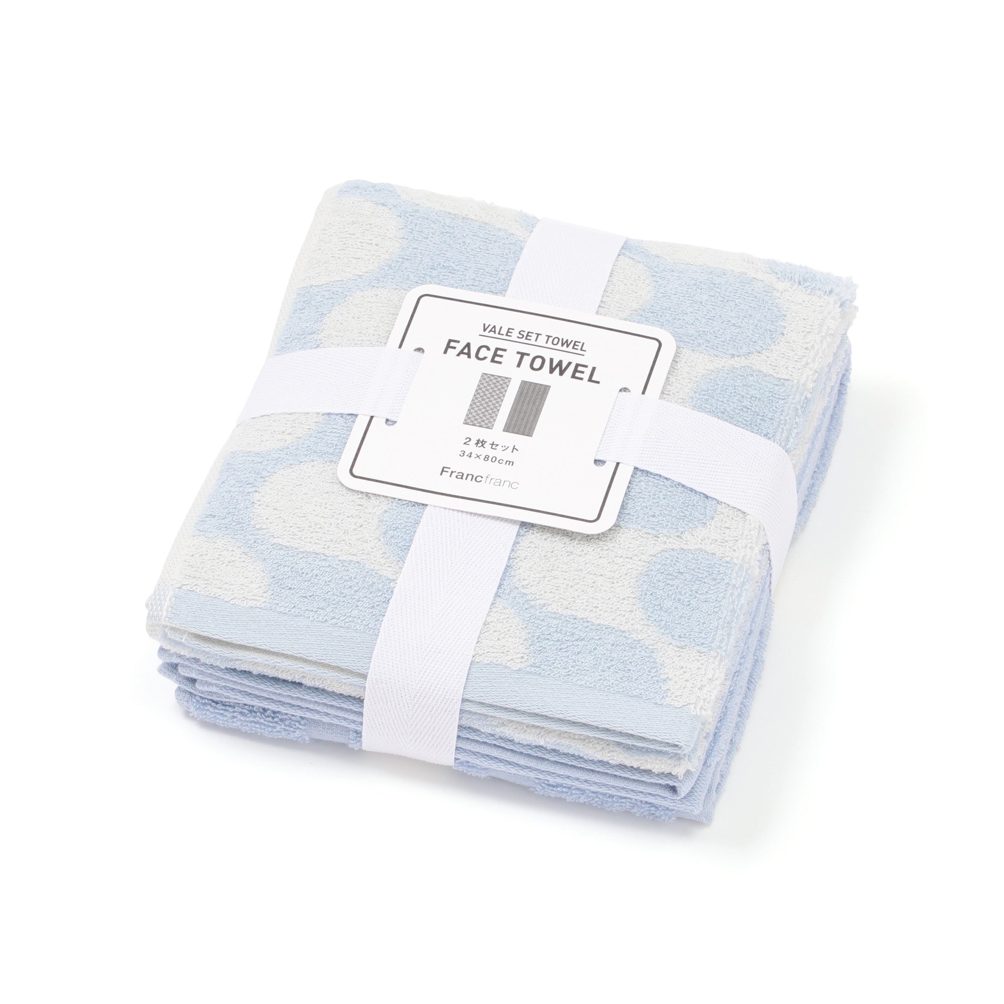 使い勝手のいい34×80cmサイズのお買い得なフェイスタオル2枚セットです。1セットで2つの柄が楽しめます。シリーズの中からお好みの柄を選んで、ちょっとした贈り物にもぴったり。薄手で柔らかい肌触りのため、毎日心地よくお使いいただけます。
