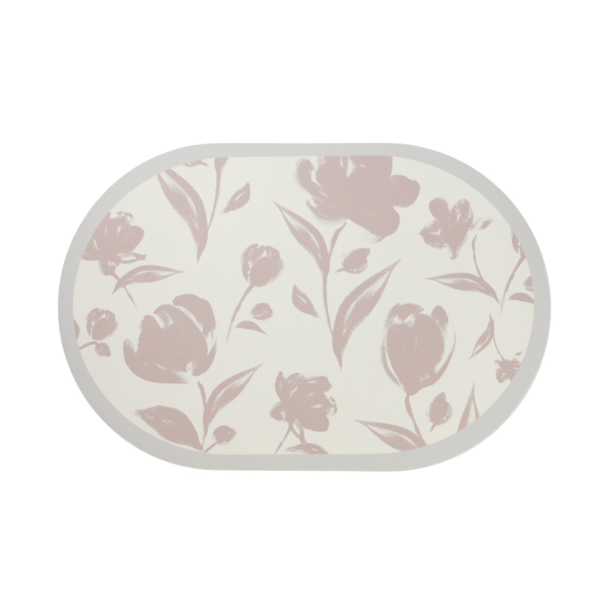 珪藻土入りソフトバスマット 楕円形 ビッグフラワー ベージュ