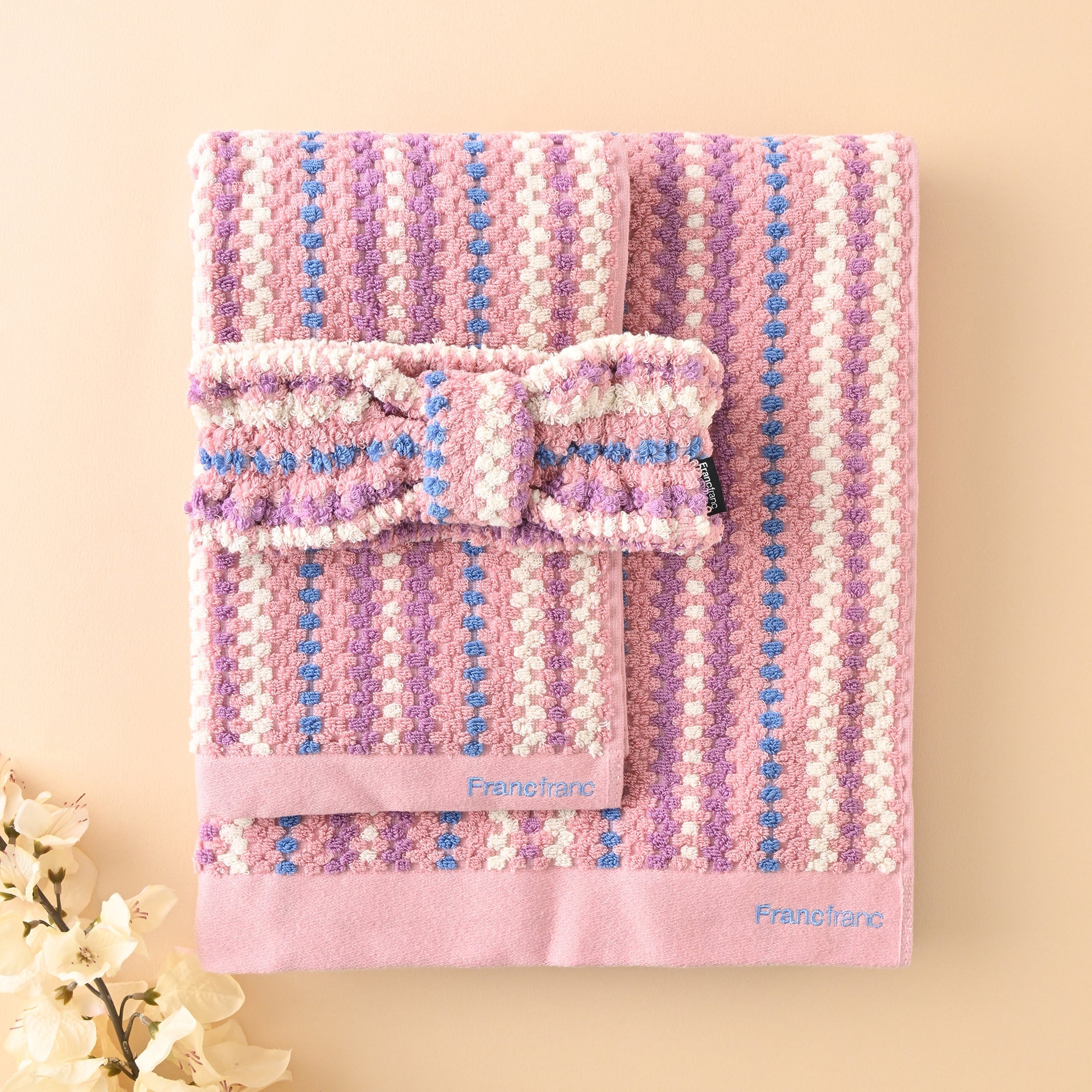 凹凸のあるジャガード生地が可愛いフェイスタオルです。カラーごとに違った可愛さが楽しめます。抗菌防臭機能付きなのも嬉しいポイントです。