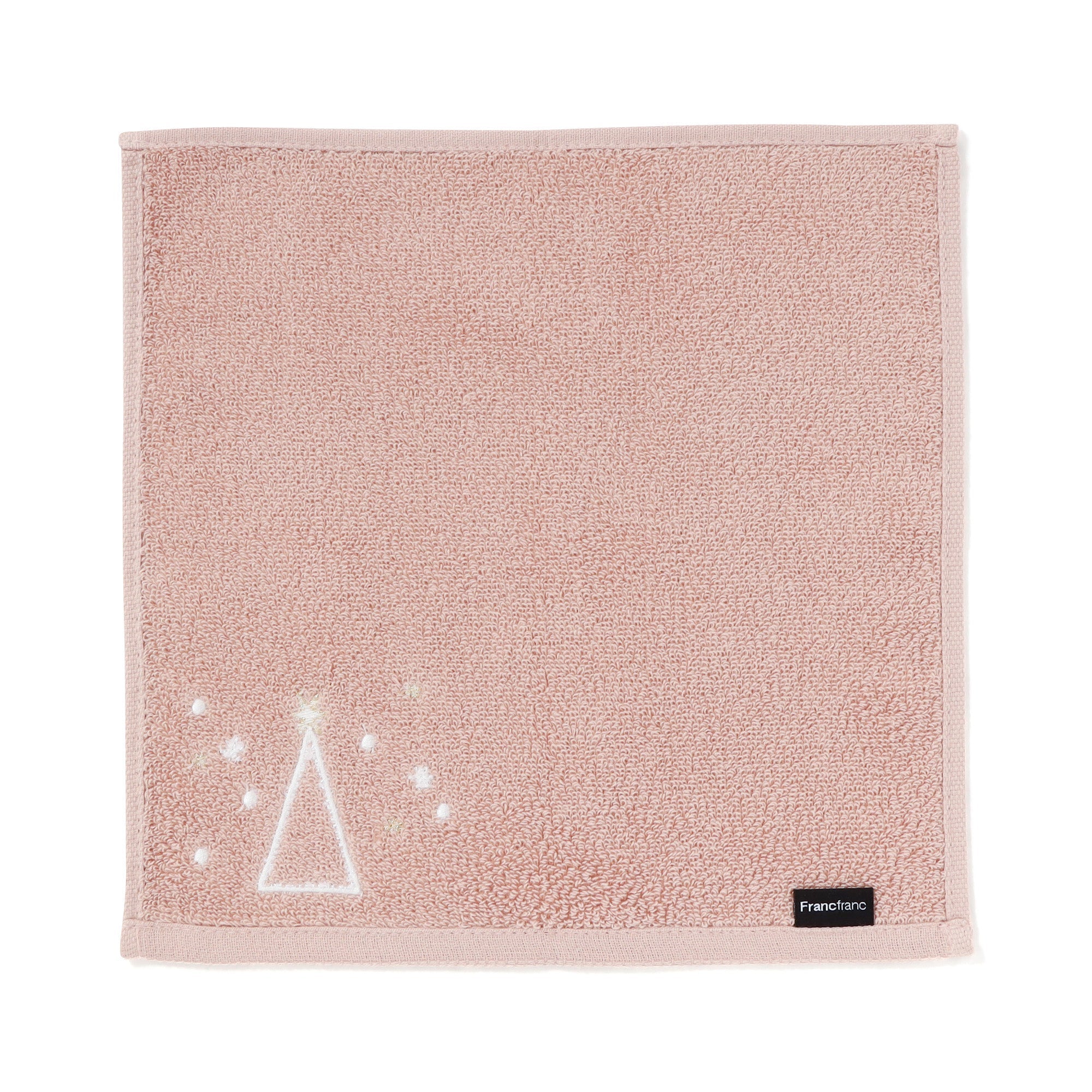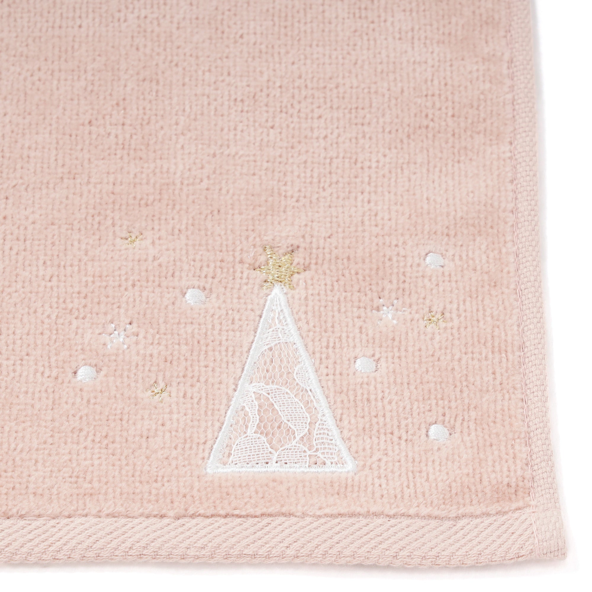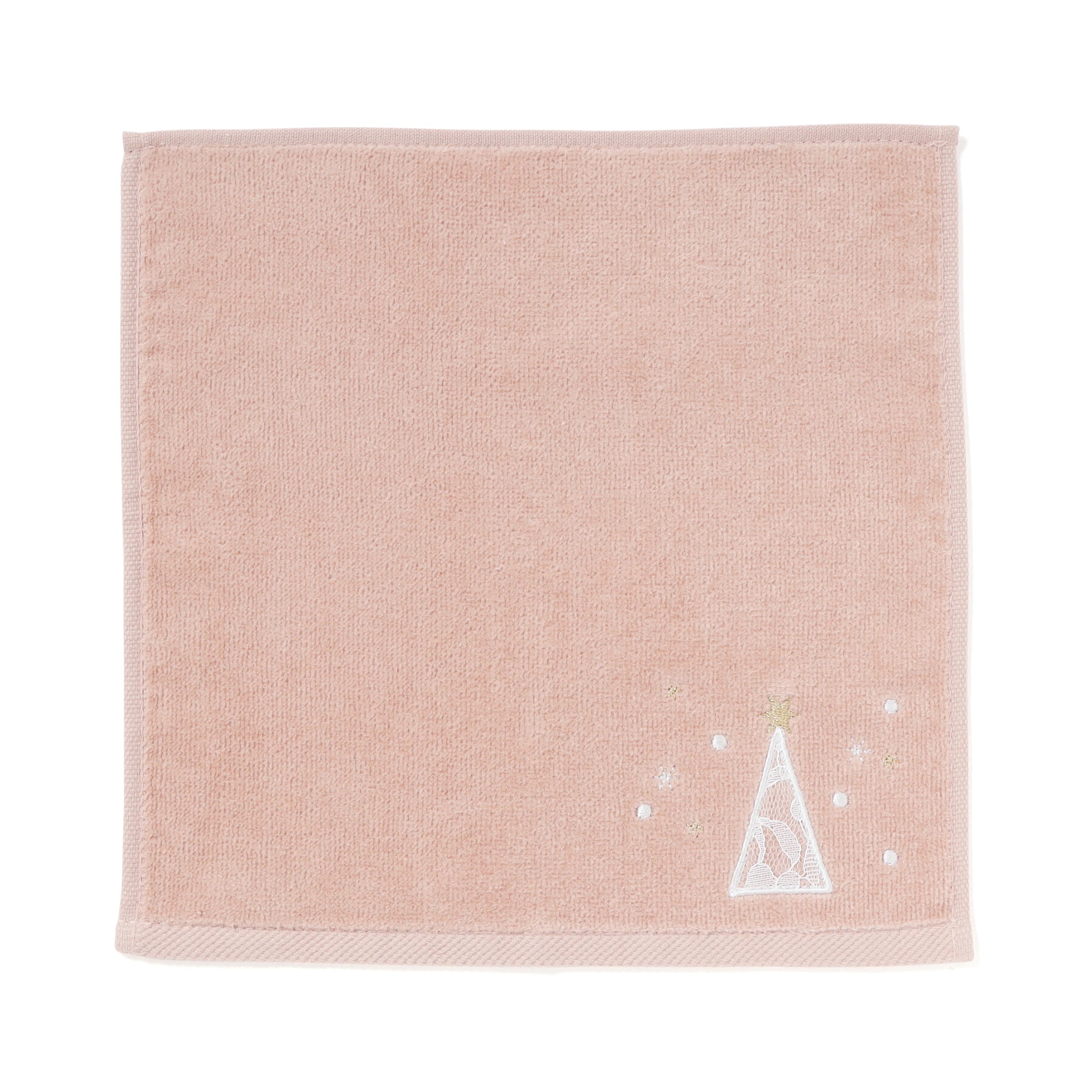 抗菌防臭機能を施したハンカチタオルです。レースのホワイトツリーとラメ糸の刺繍の組み合わせが可愛らしいデザインです。