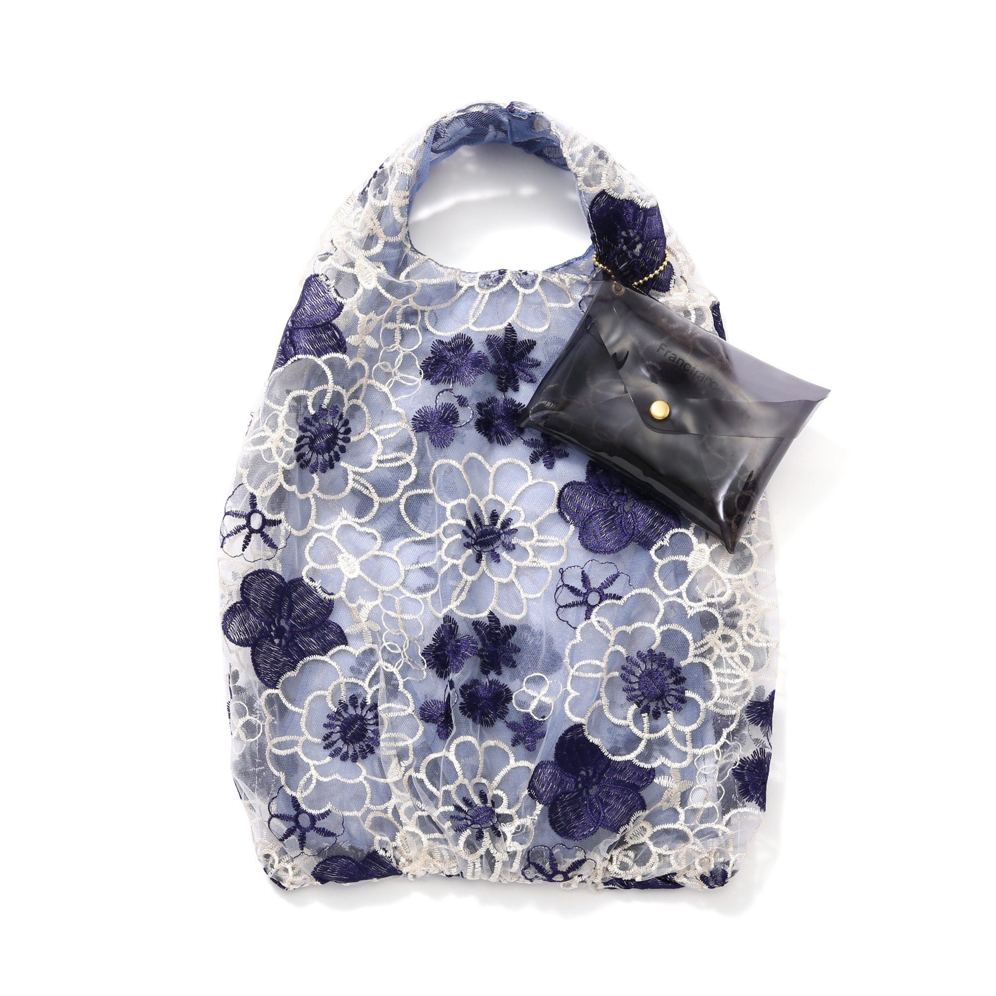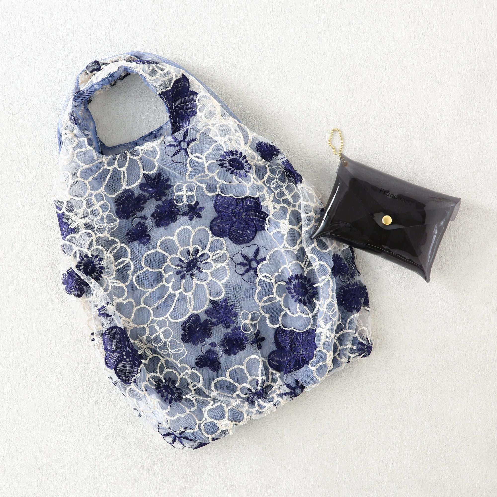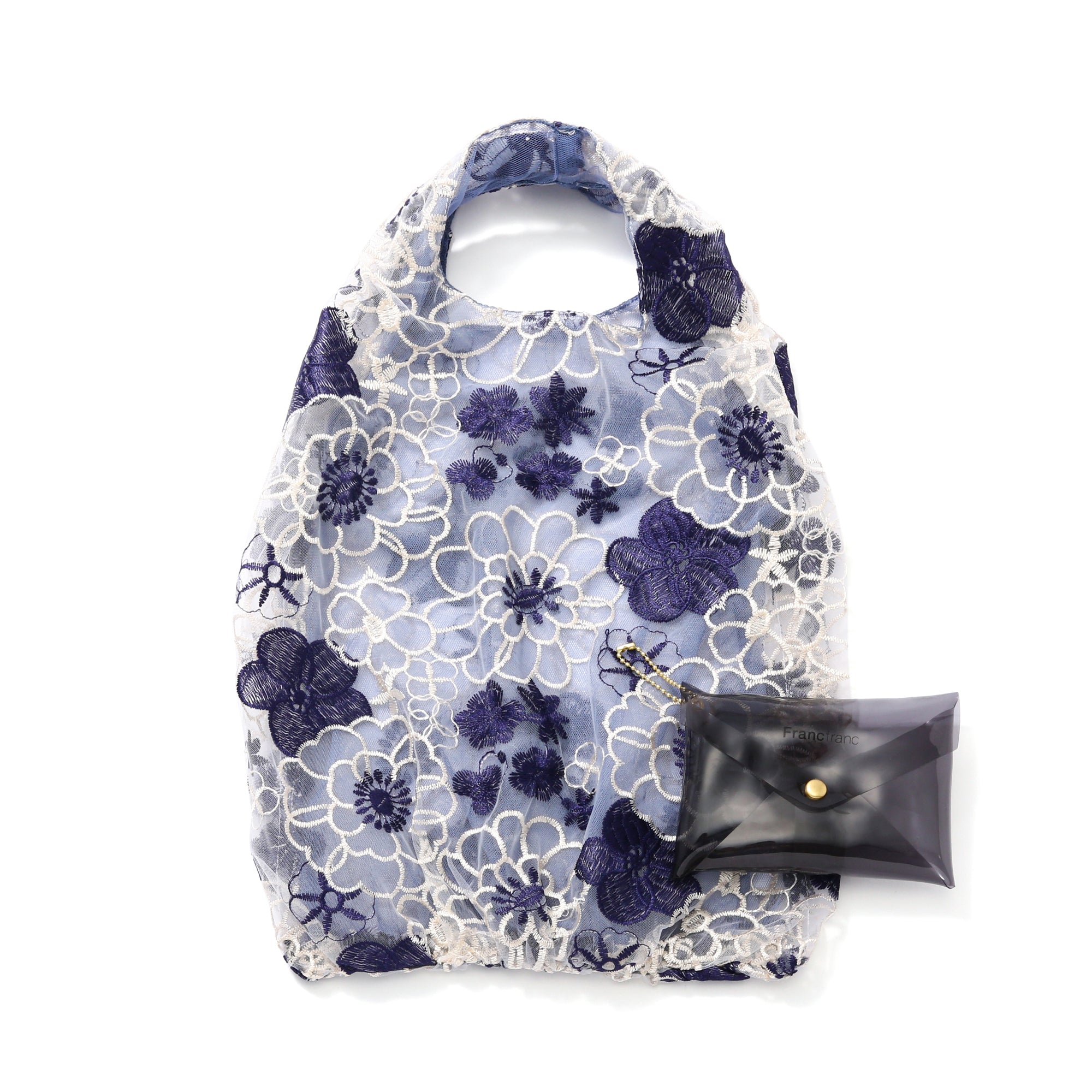 チュール素材の透け感とフラワーモチーフの刺繍がフェミニンなミニバッグです。 ちょっとそこまでにうれしいサイズ。サブバッグとしても活躍します。 軽やかなチュール素材に施された色とりどりの花の刺繍。見るたびに心ときめく、とっておきのデザインです。 ※刺繍や柄の配置などは一点ずつ異なります。あらかじめご了承ください。 くしゅくしゅっと丸めて付属のビニールポーチに入れて持ち運べます。 ポーチのサイズを少し大きめにリニューアル。バッグを出し入れしやすくなりました。 ポーチにはボールチェーンが付いています。 バッグの取っ手などにチェーンを取り付けておけばポーチが迷子になりません。
