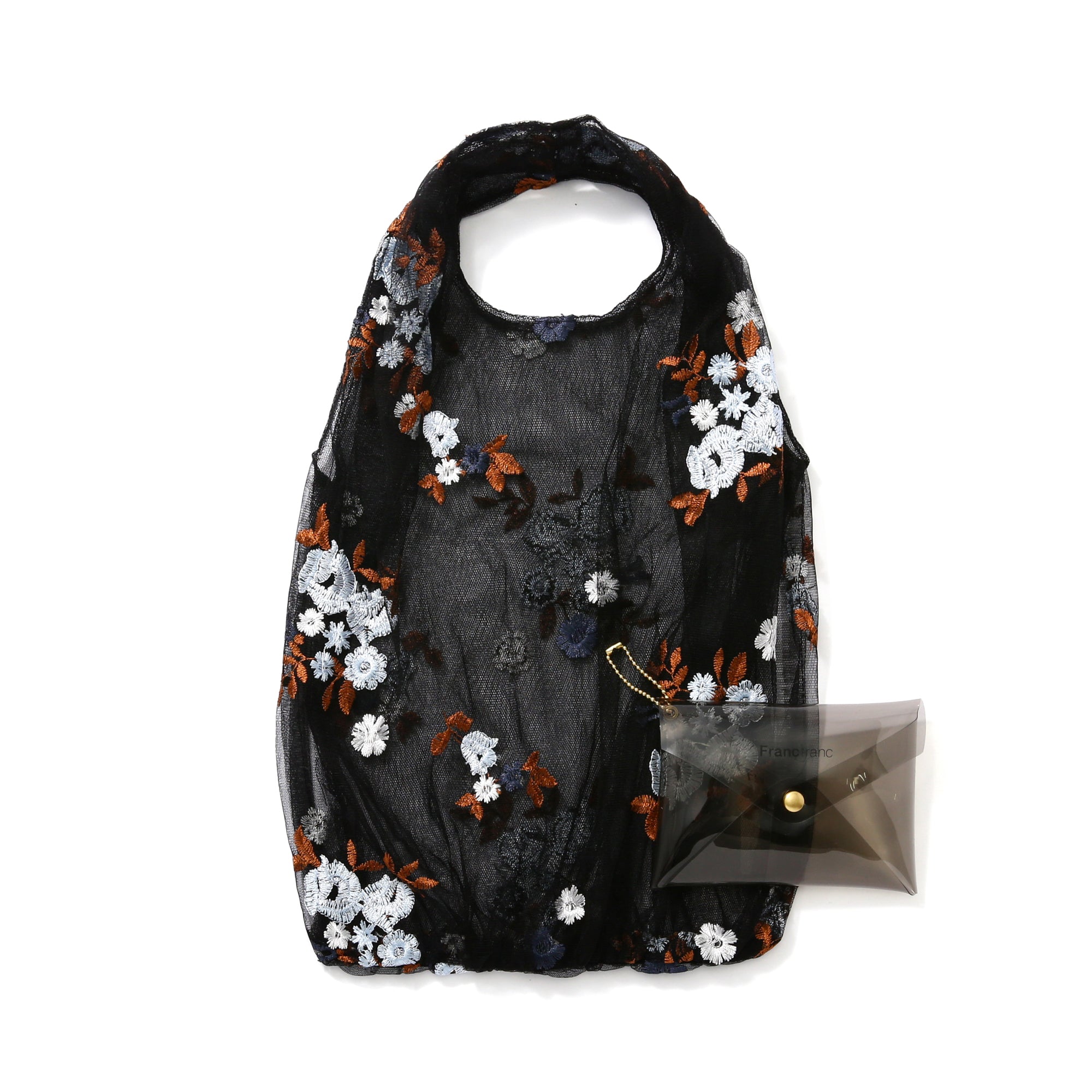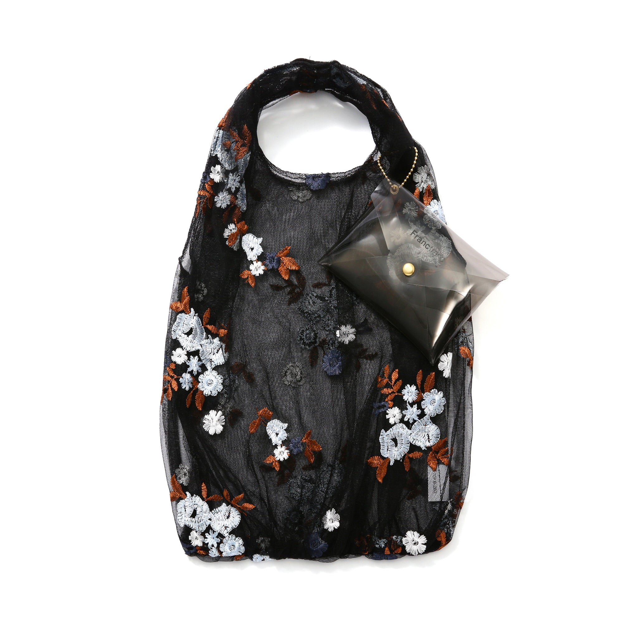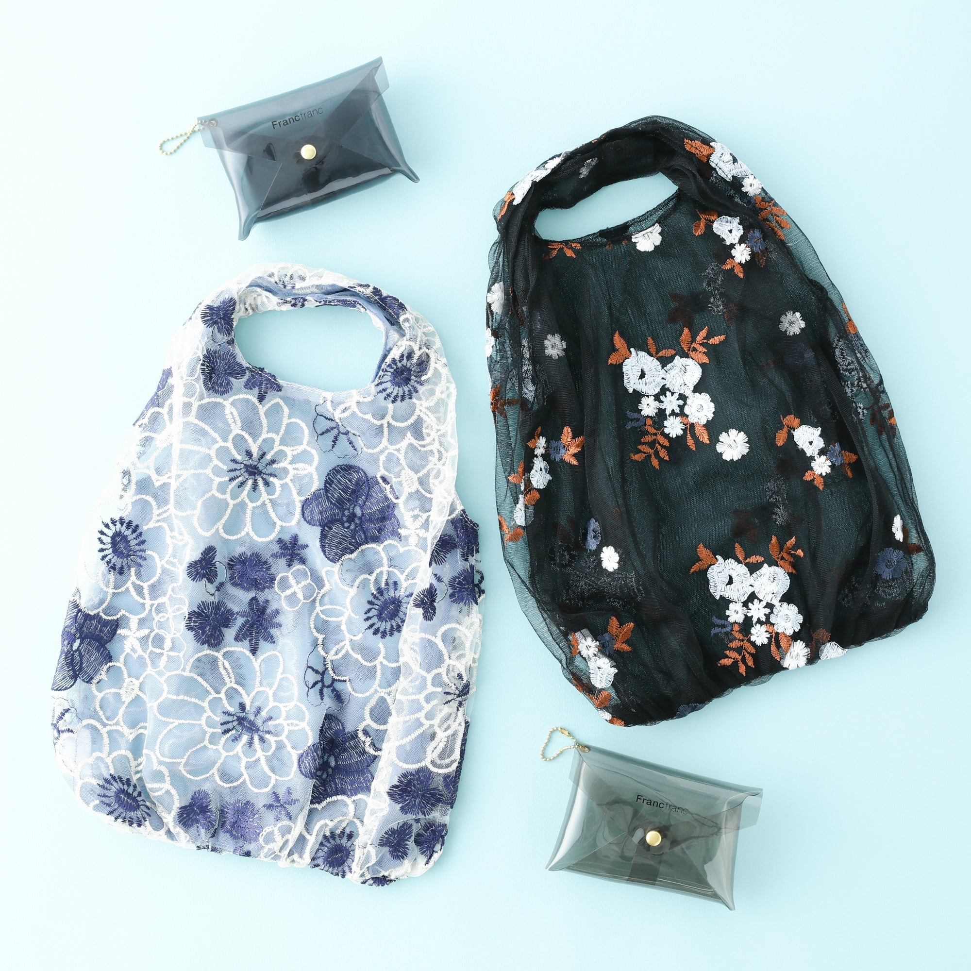 チュール素材の透け感とフラワーモチーフの刺繍がフェミニンなミニバッグです。 ちょっとそこまでにうれしいサイズ。サブバッグとしても活躍します。 軽やかなチュール素材に施された色とりどりの花の刺繍。見るたびに心ときめく、とっておきのデザインです。 ※刺繍や柄の配置などは一点ずつ異なります。あらかじめご了承ください。 くしゅくしゅっと丸めて付属のビニールポーチに入れて持ち運べます。 ポーチのサイズを少し大きめにリニューアル。バッグを出し入れしやすくなりました。 ポーチにはボールチェーンが付いています。 バッグの取っ手などにチェーンを取り付けておけばポーチが迷子になりません。