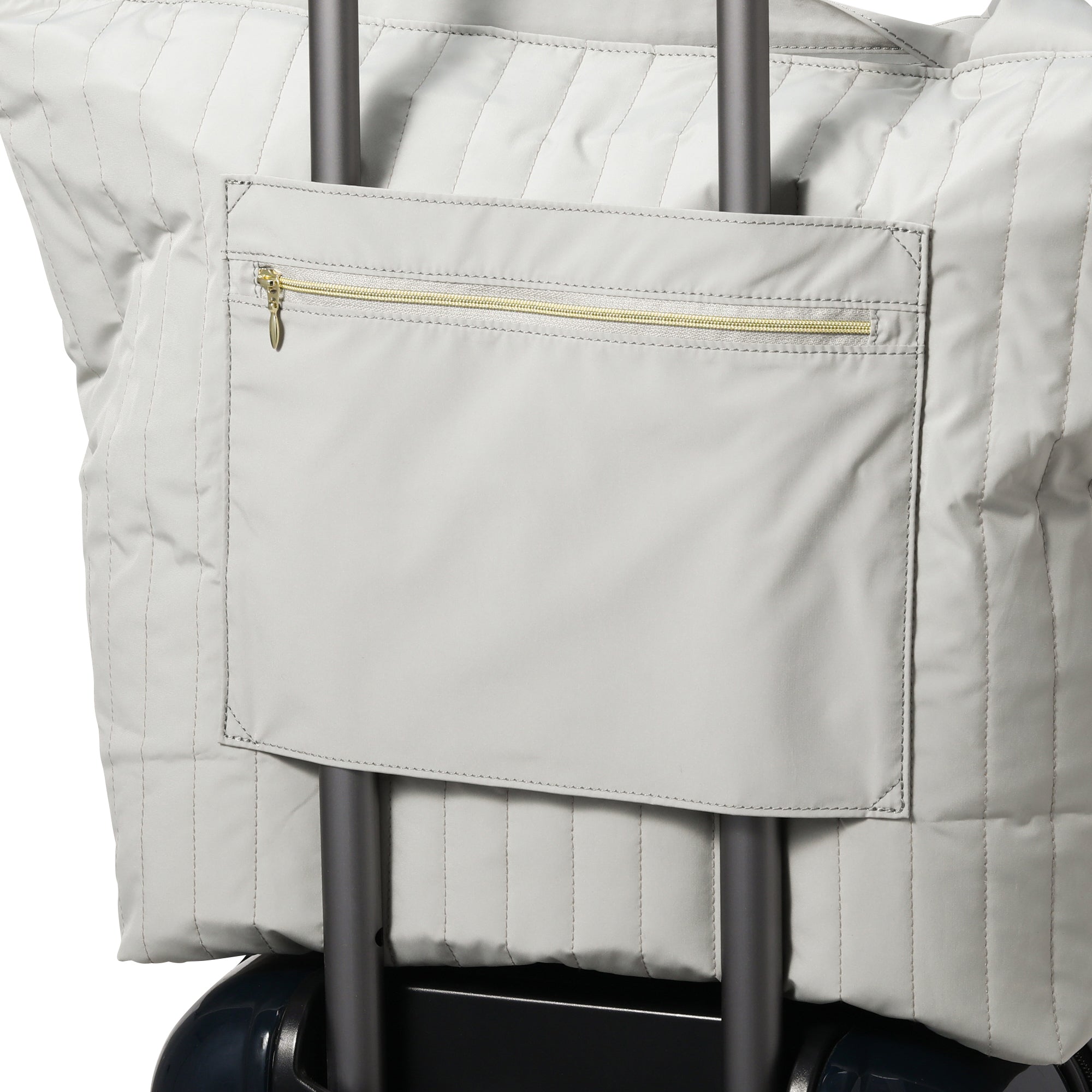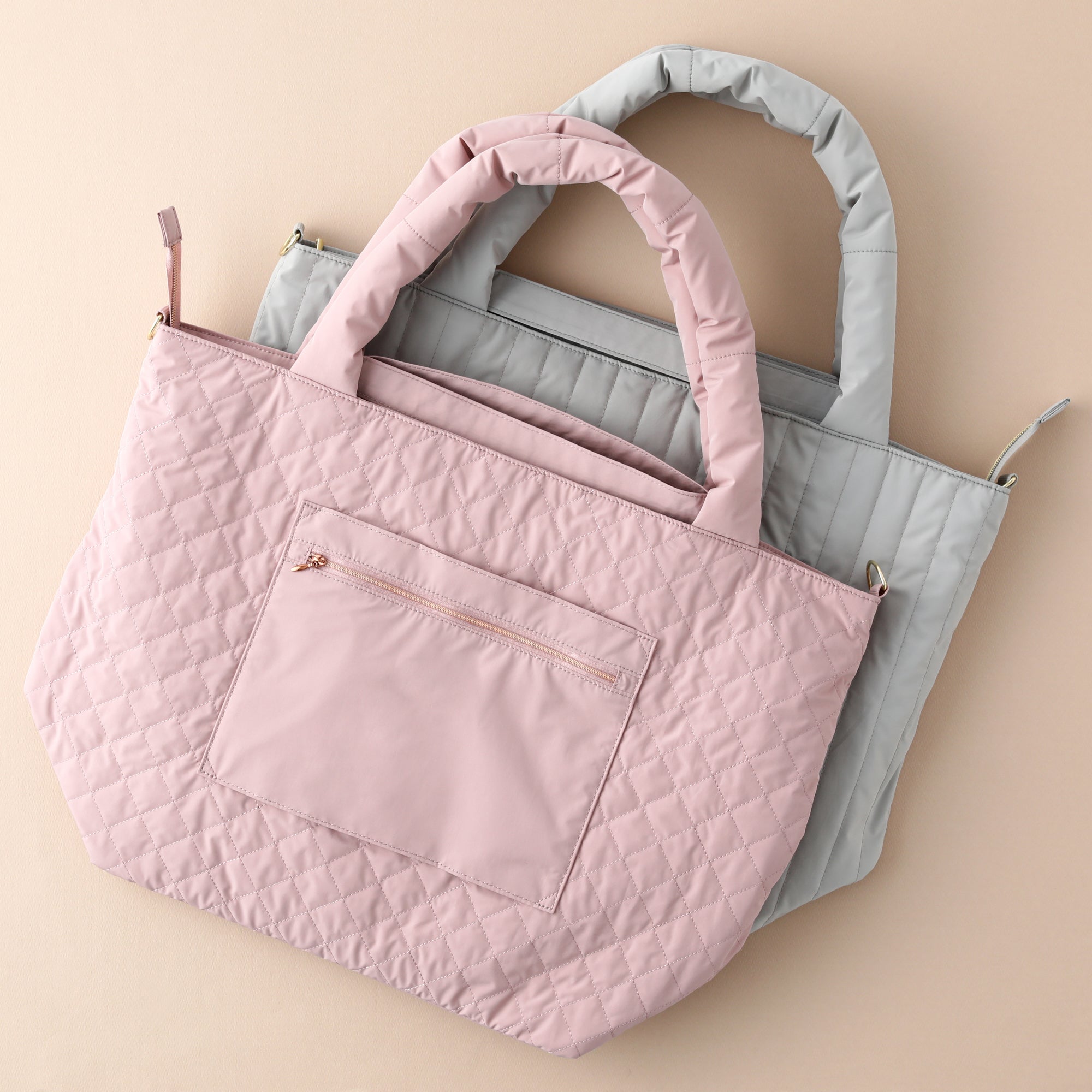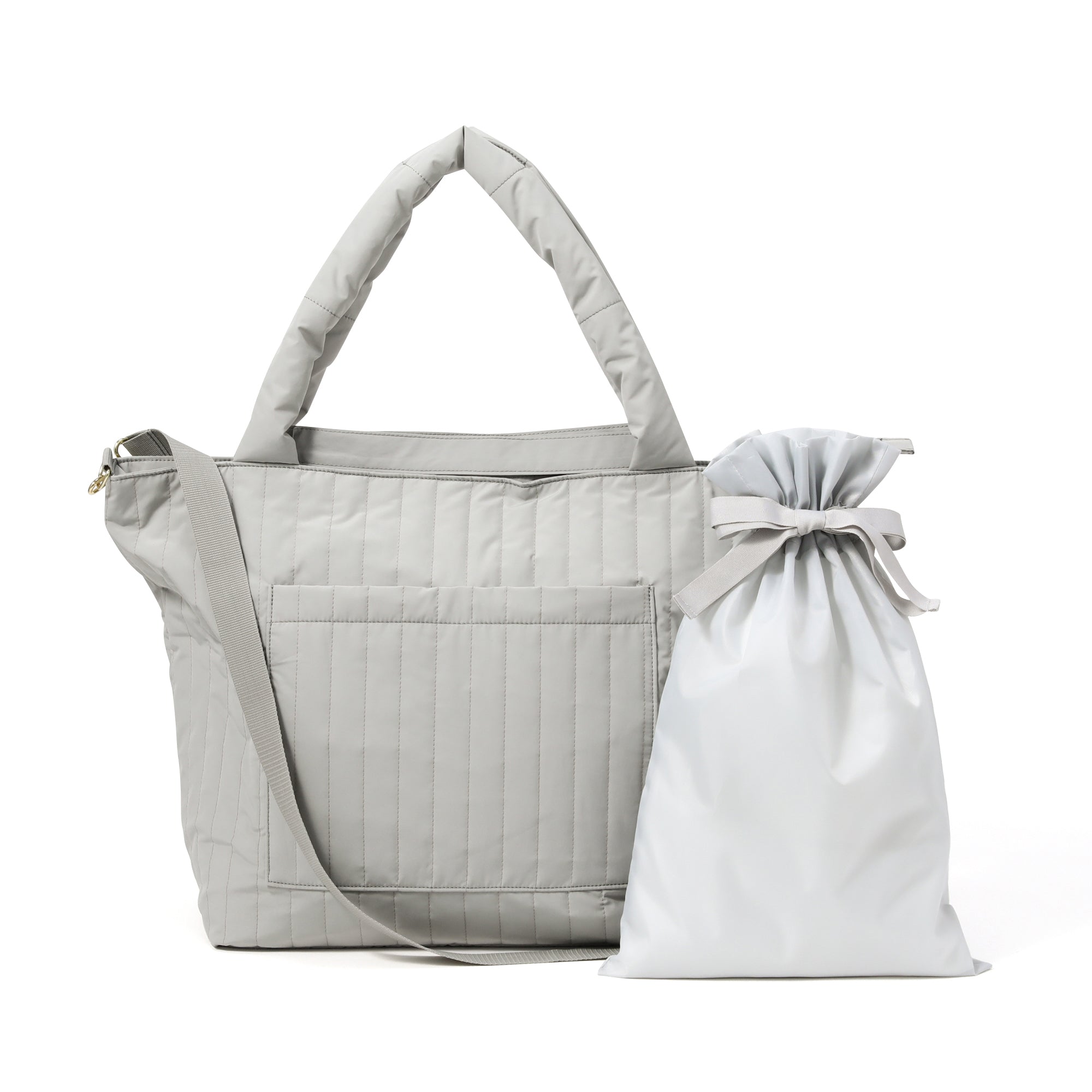 リモートワークグッズで人気のキルティングシリーズにトラベルアイテムが登場しました。荷物がたっぷり入るトラベル用トートバッグです。 1泊2日程度の短期間の旅行に最適なサイズ。スーツケースの取っ手にぴったりはまる仕様です。 手持ちしやすい短めの持ち手と、肩にかけられる長めの持ち手、ナナメがけできるショルダーストラップの3WAYで使い勝手抜群。 内側には細かいものを分けてしまえるポケットがたくさん。ドリンクホルダーも付いているので、水筒が倒れません。 使用しないときは付属の巾着袋に折りたたんで収納すればコンパクトに保管できます。