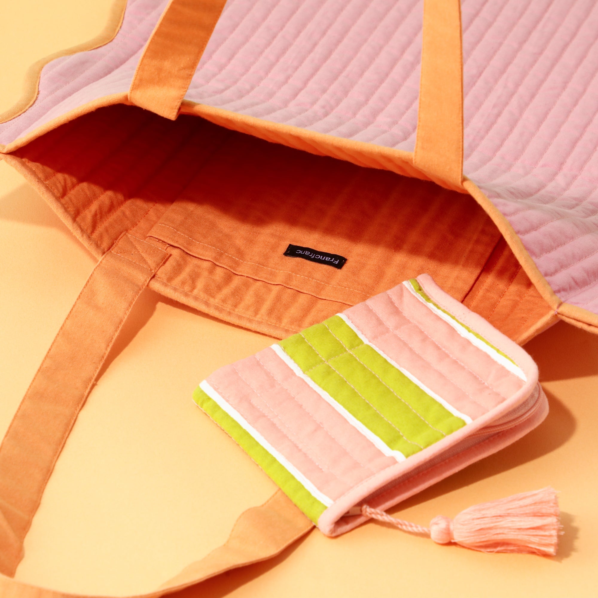 バイカラーウェーブ トートバッグ ピンク
