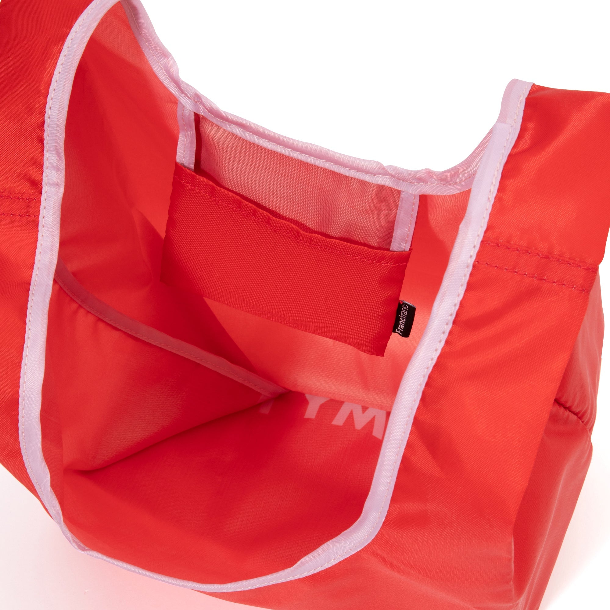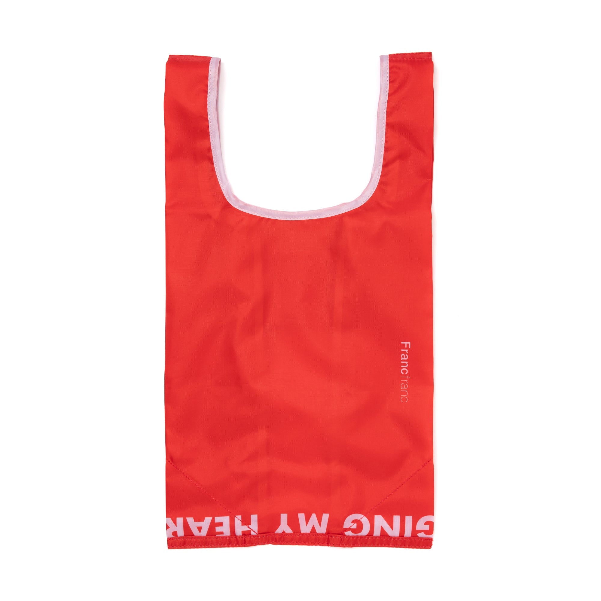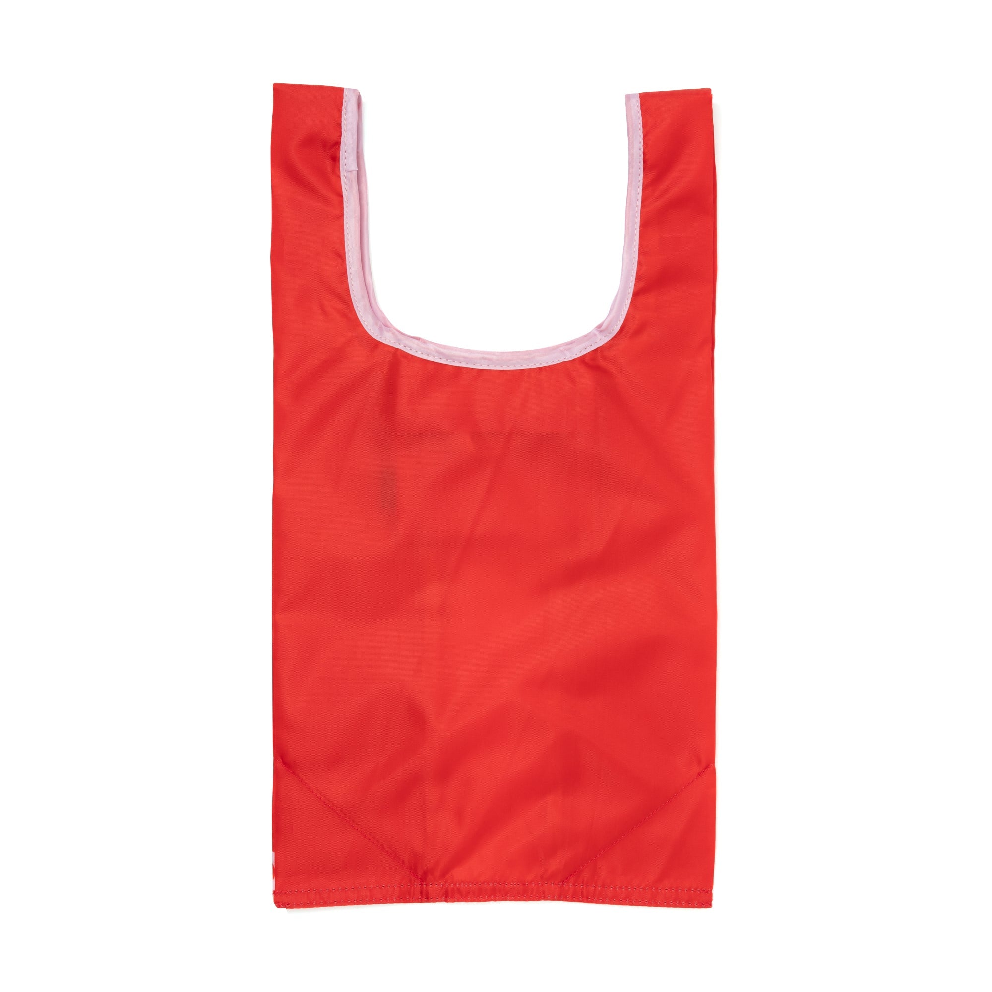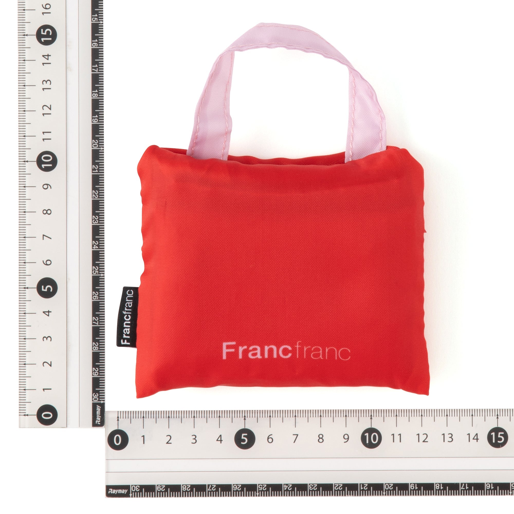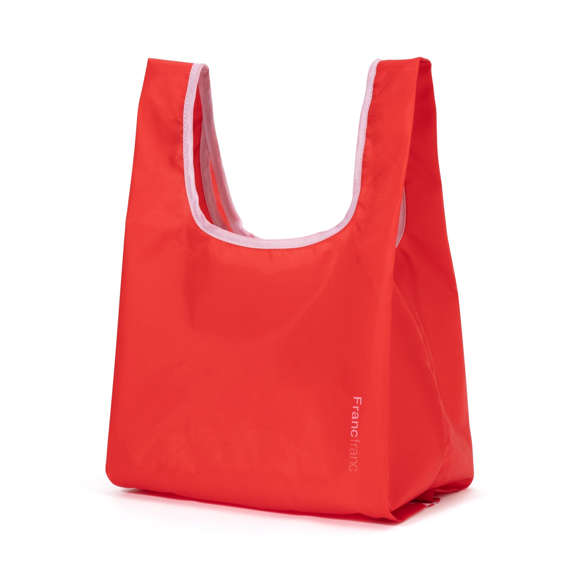 コンビニに持っていくのに丁度いいサイズのエコバッグです。 ちょっとした買い物に重宝するサイズ感です。 小さく折りたたむことができ、収納時もかさばらないのも嬉しいポイント。