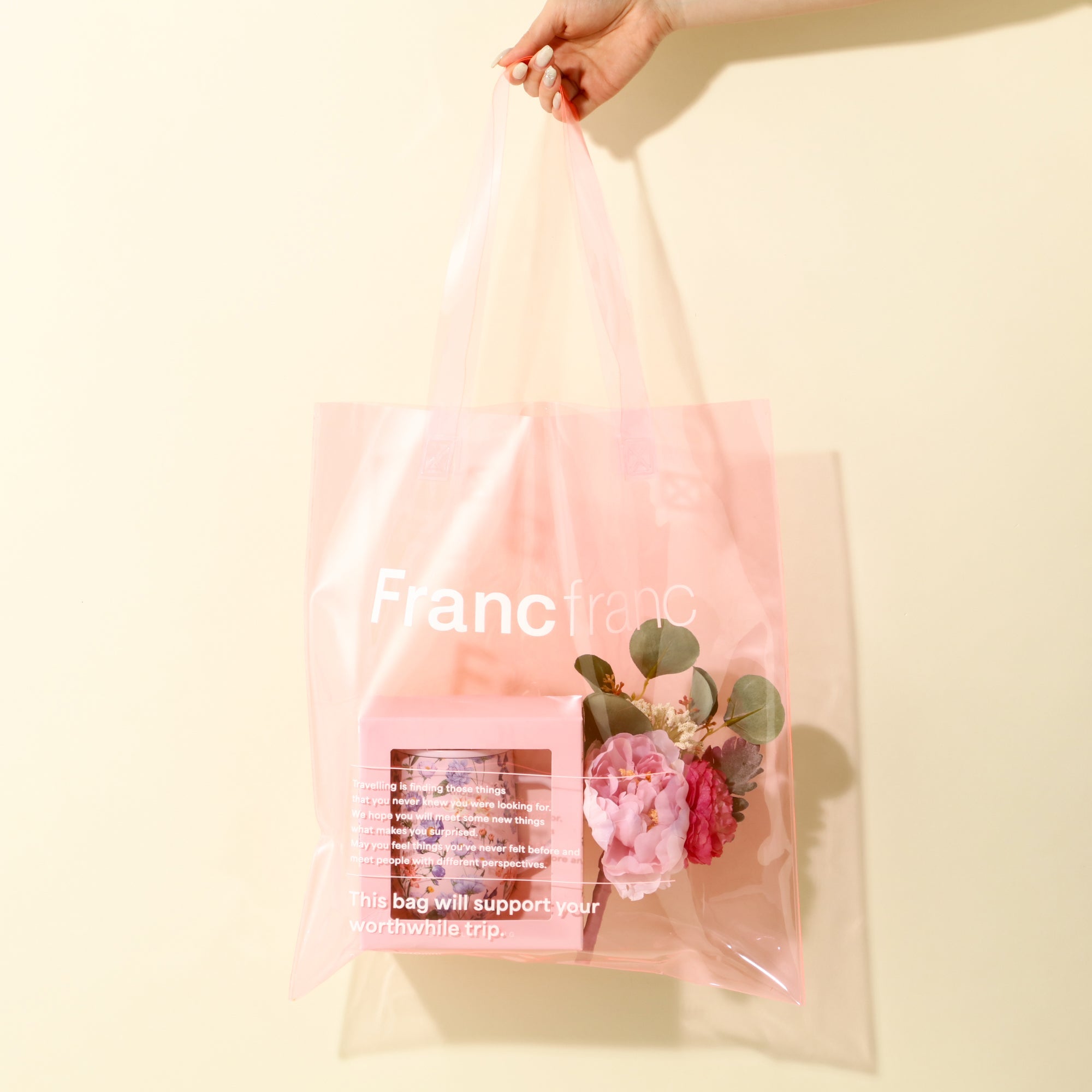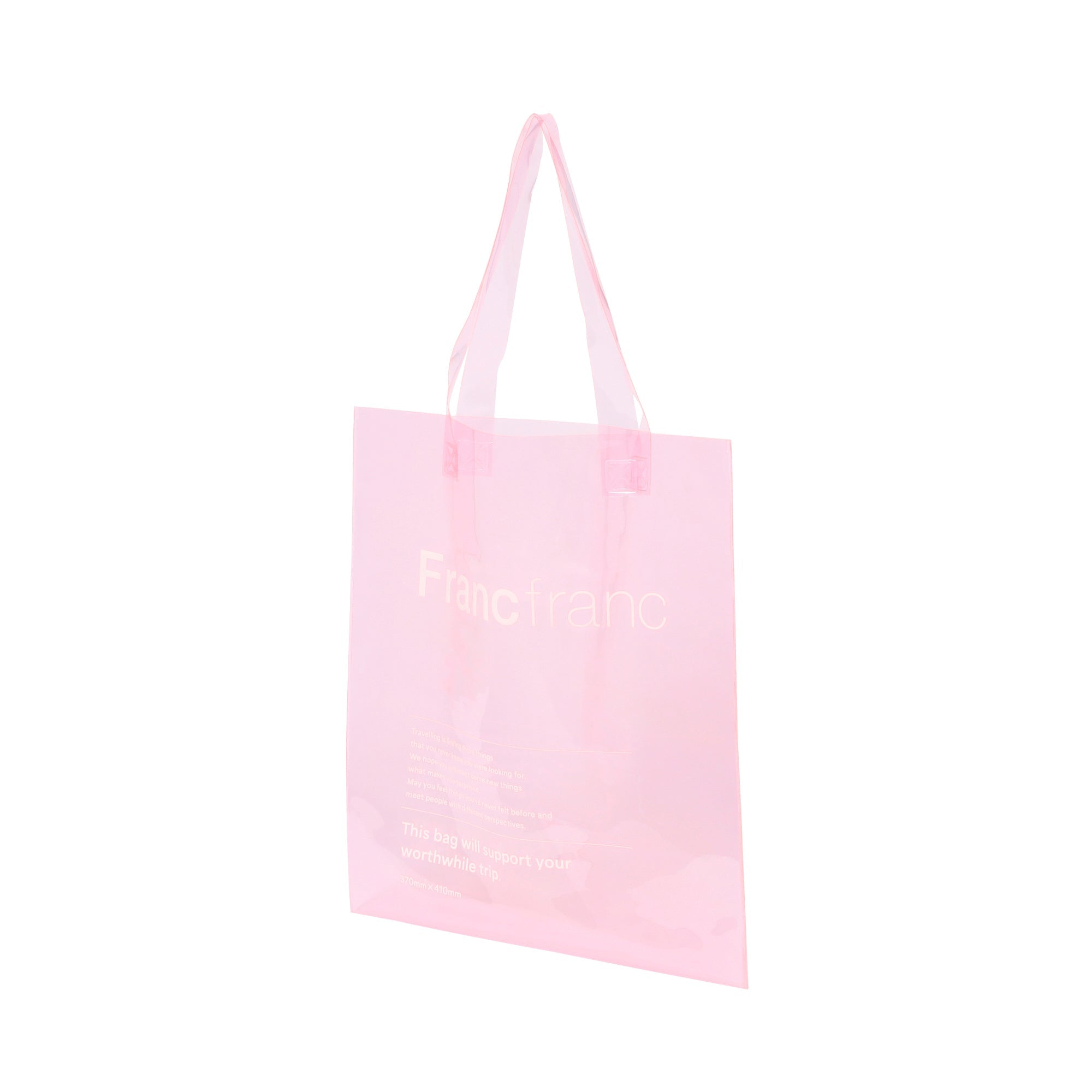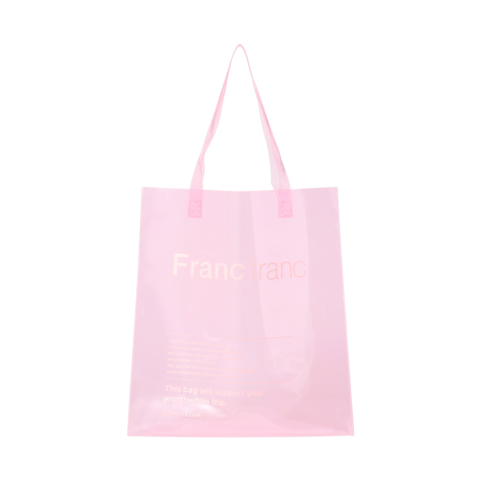 爽やかなカラーがおしゃれなクリアトートバッグです。 レジャーや普段使いなど自由に使えるシンプルなかたちです。 防水仕様なので海やプールなど水場のレジャーに最適で、シーズンに一つは持っておきたいアイテムです。 中身が見えるバッグなので、お気に入りのポーチなどを入れてコーディネートをお楽しみください。