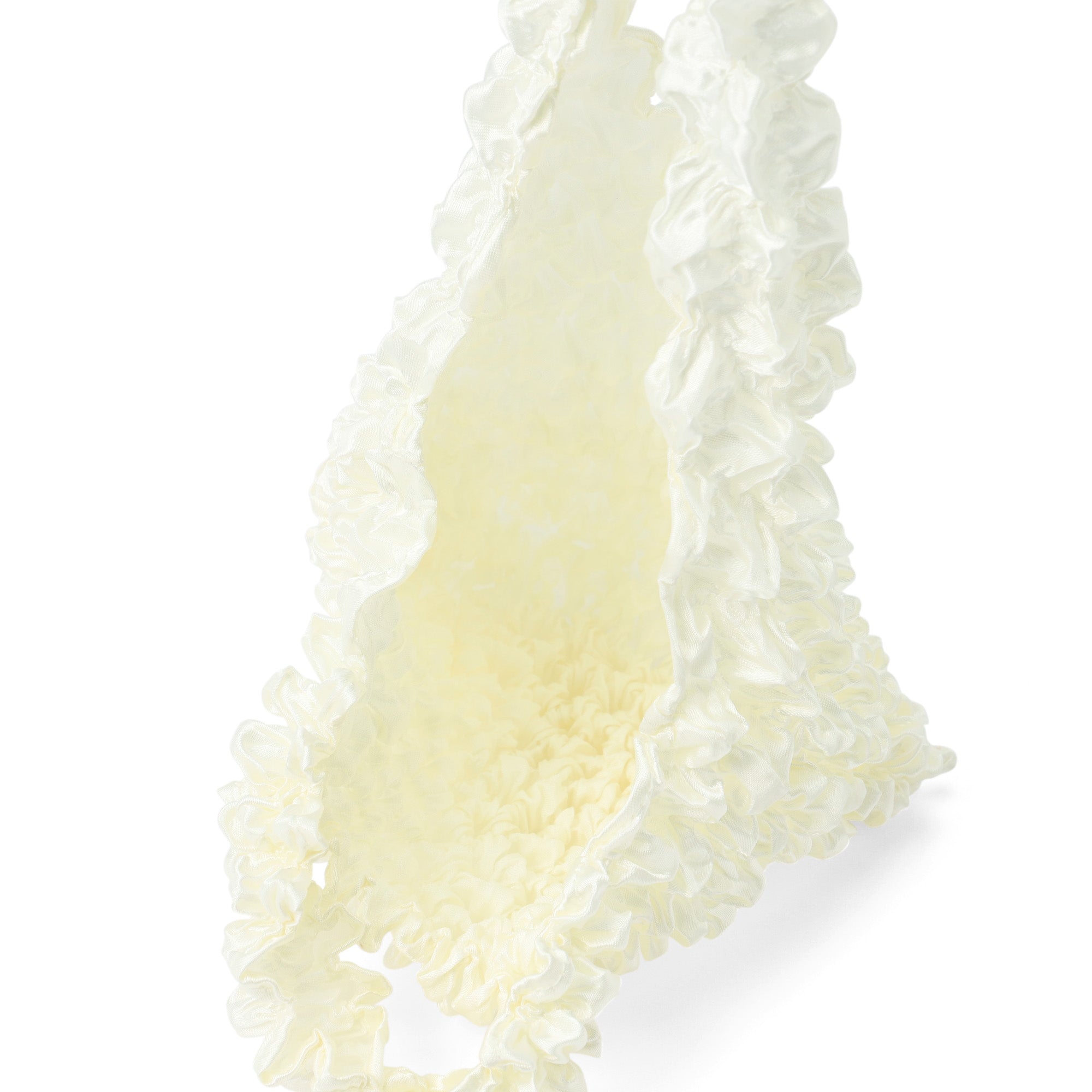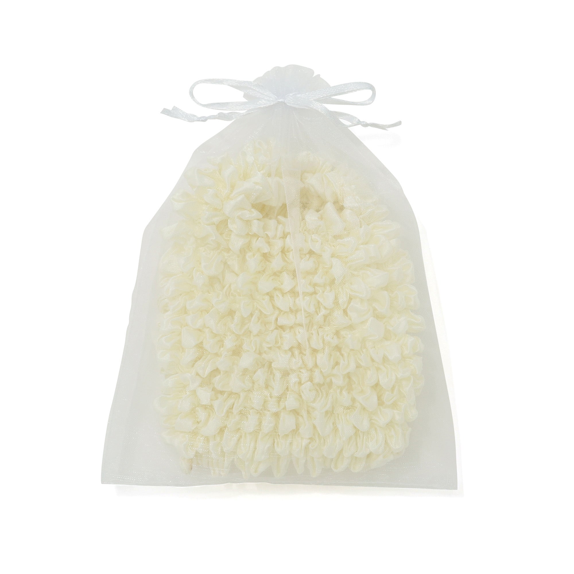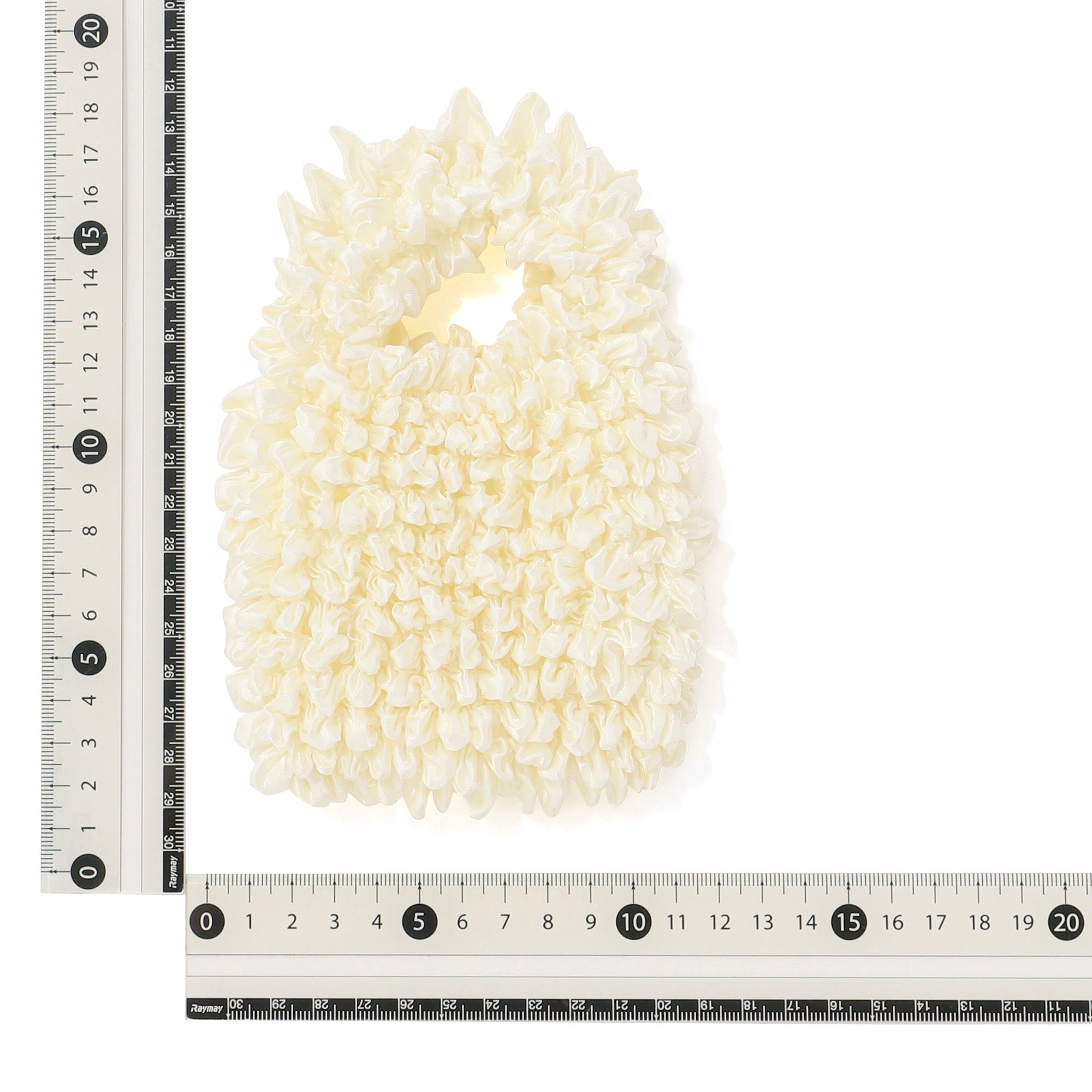 くしゅくしゅとした生地の風合いがユニークなエコバッグです。 伸縮性のある生地なので荷物を入れると生地が伸び、A4サイズ相当の大きさになります。 たたまずに小さくなるので、バッグの中に忍ばせておくのに便利です。