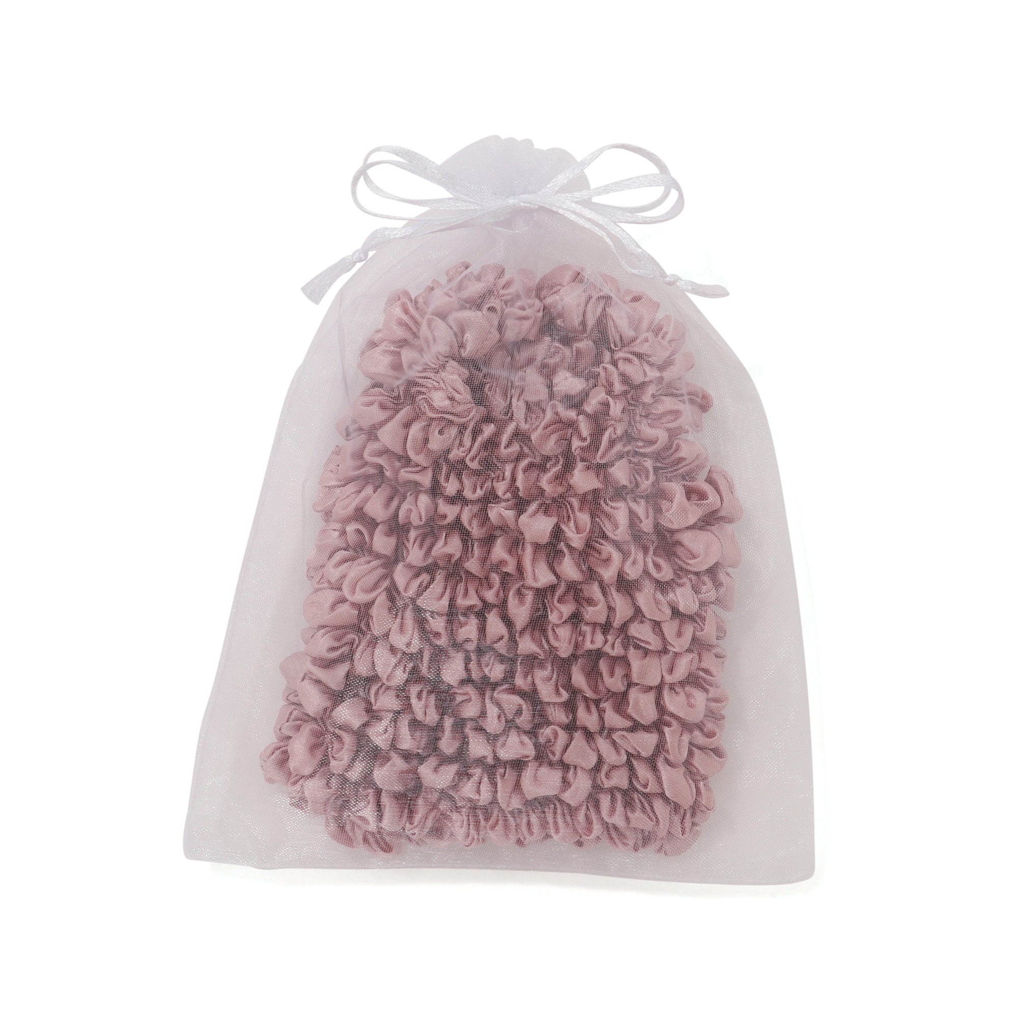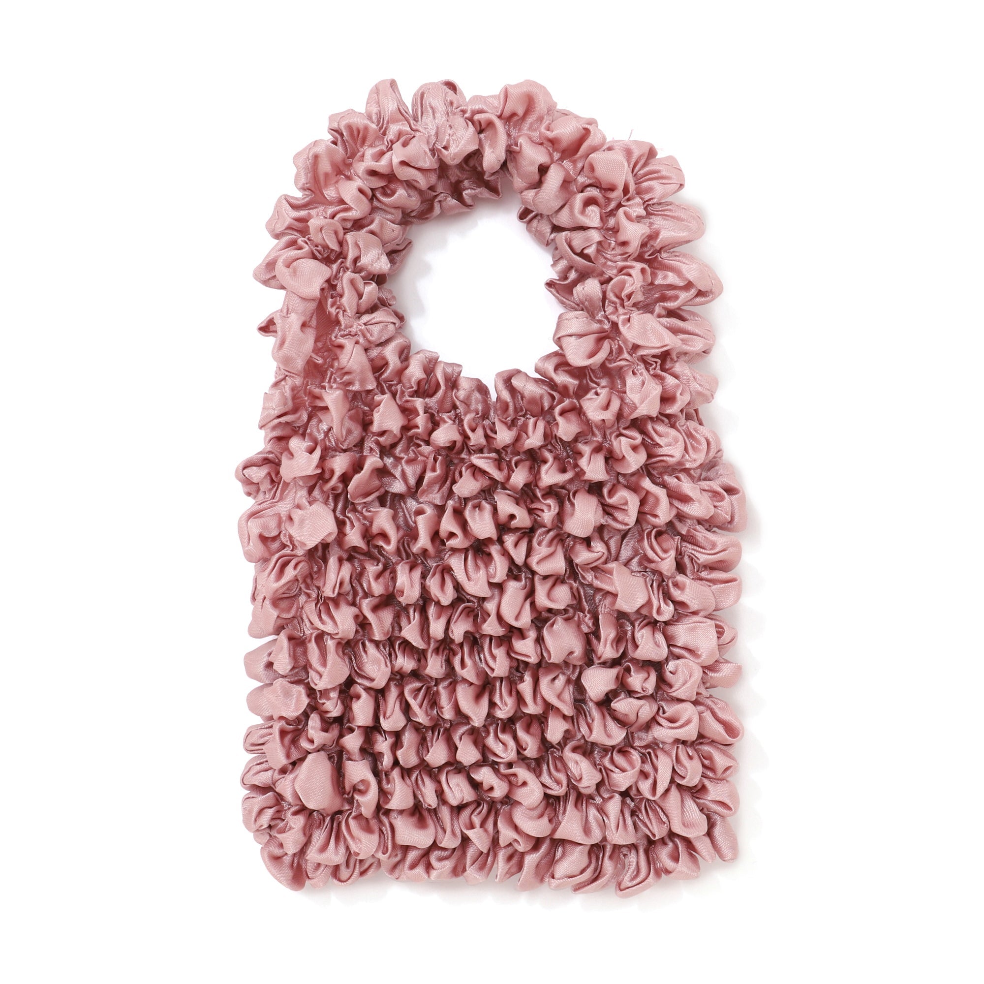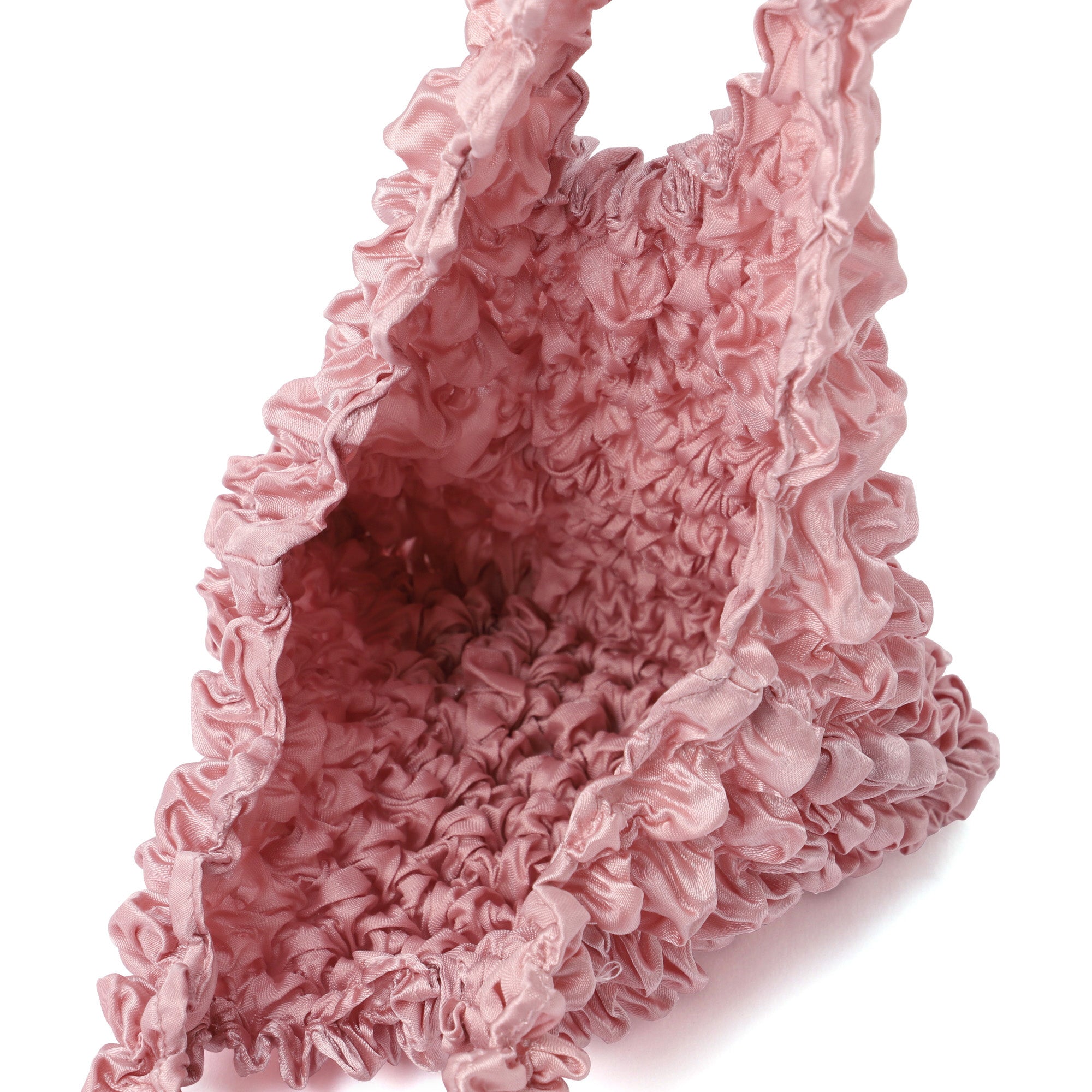 くしゅくしゅとした生地の風合いがユニークなエコバッグです。 伸縮性のある生地なので荷物を入れると生地が伸び、A4サイズ相当の大きさになります。 たたまずに小さくなるので、バッグの中に忍ばせておくのに便利です。