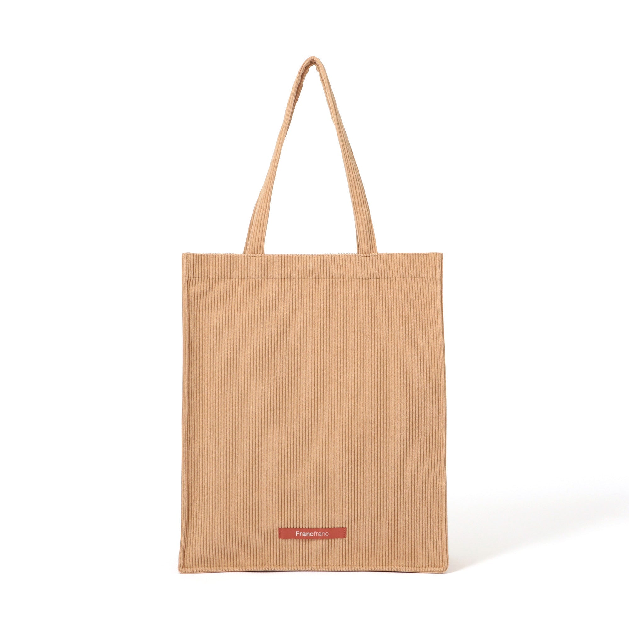 季節感やトレンドに合わせて様々な生地で展開するロゴトートシリーズです。Mサイズは大容量で、推し活にも便利な形状です。応援うちわもスッポリ入るサイズ感です。コーデュロイ生地は様々なコーディネートに合わせやすく、軽くて使い勝手のよい生地感です。