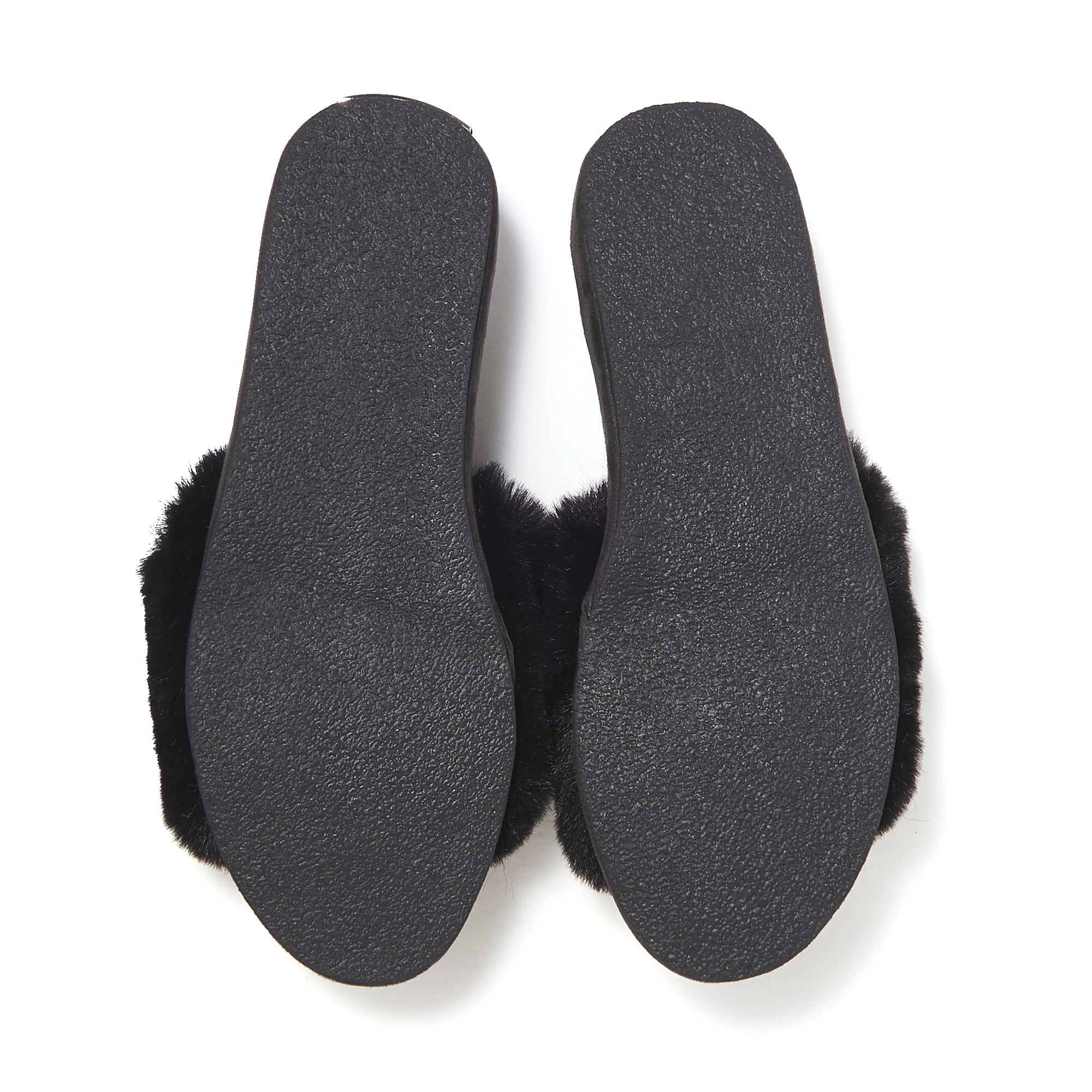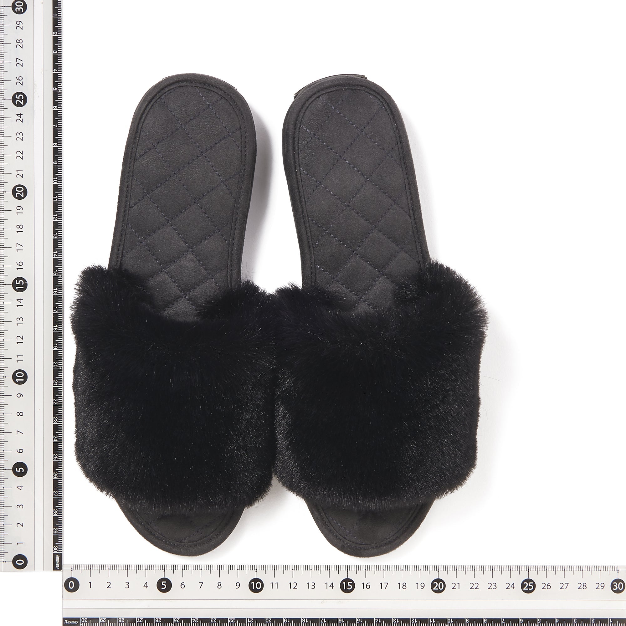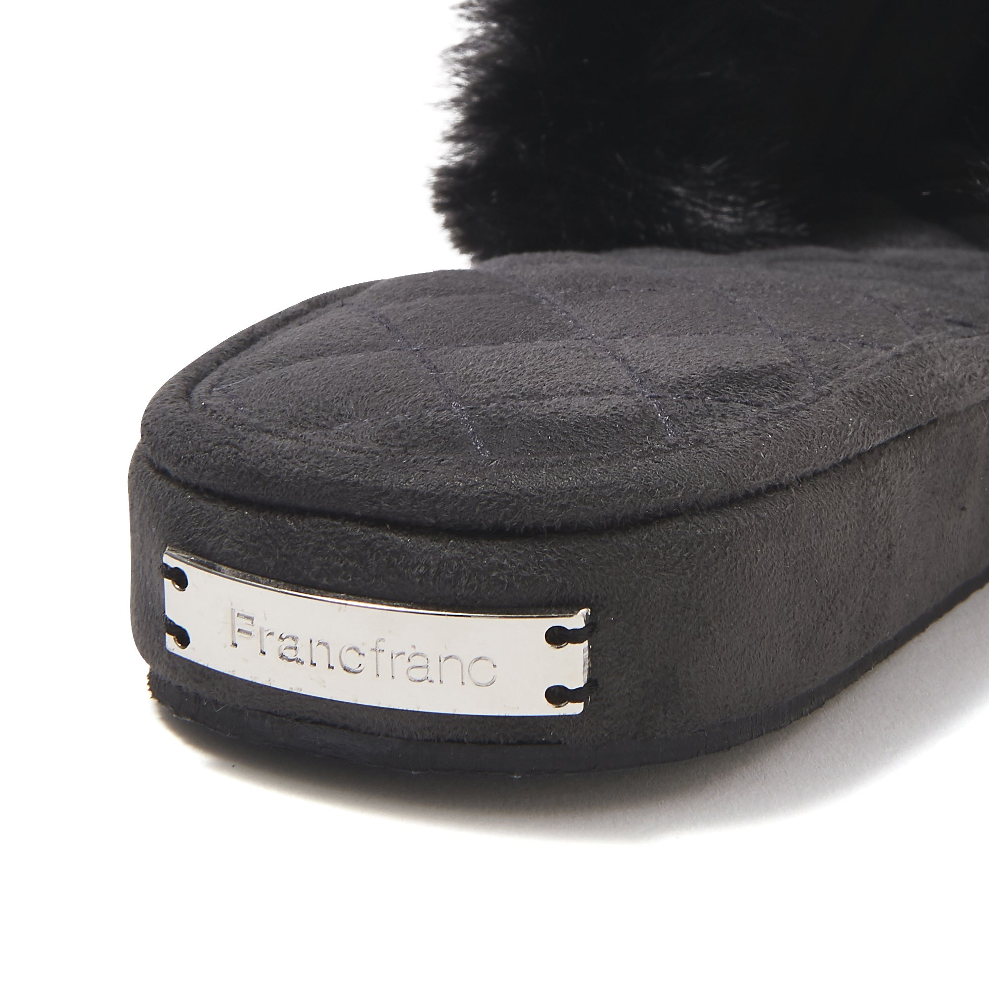 歩きやすい高さのヒールのルームシューズです。 かかと部分に金属ロゴプレートをつけ、高級感を出しています。触り心地が良く、スリムな形状と高さのあるヒールでスタイルアップにもなり、部屋の中でもオシャレに過ごせます。