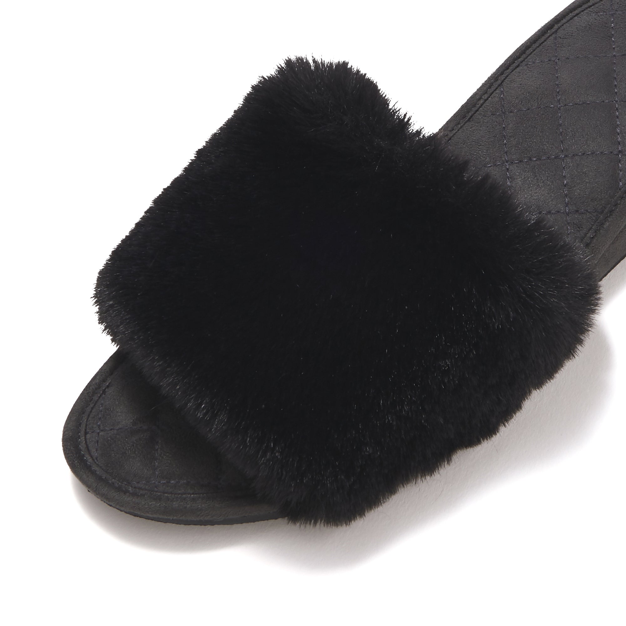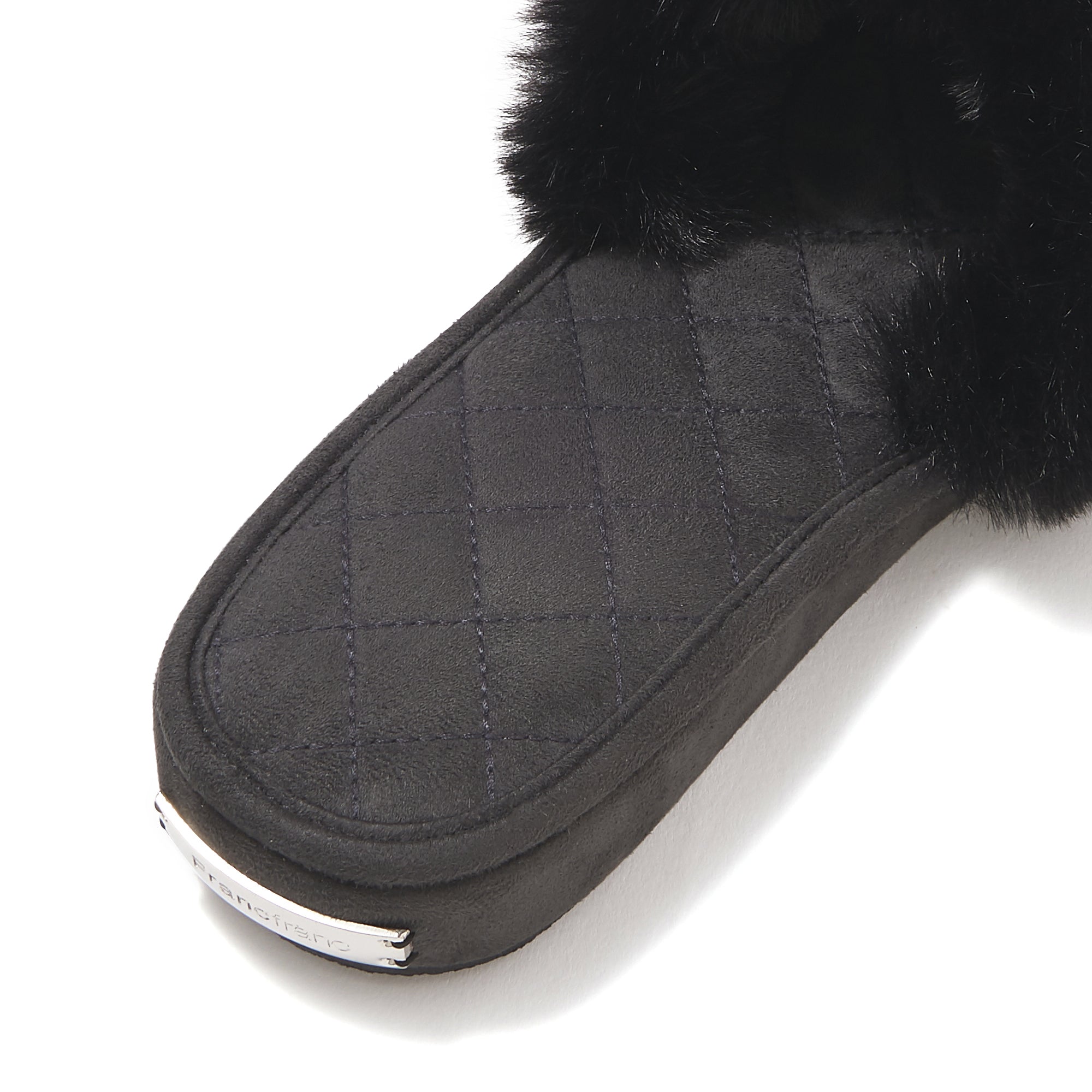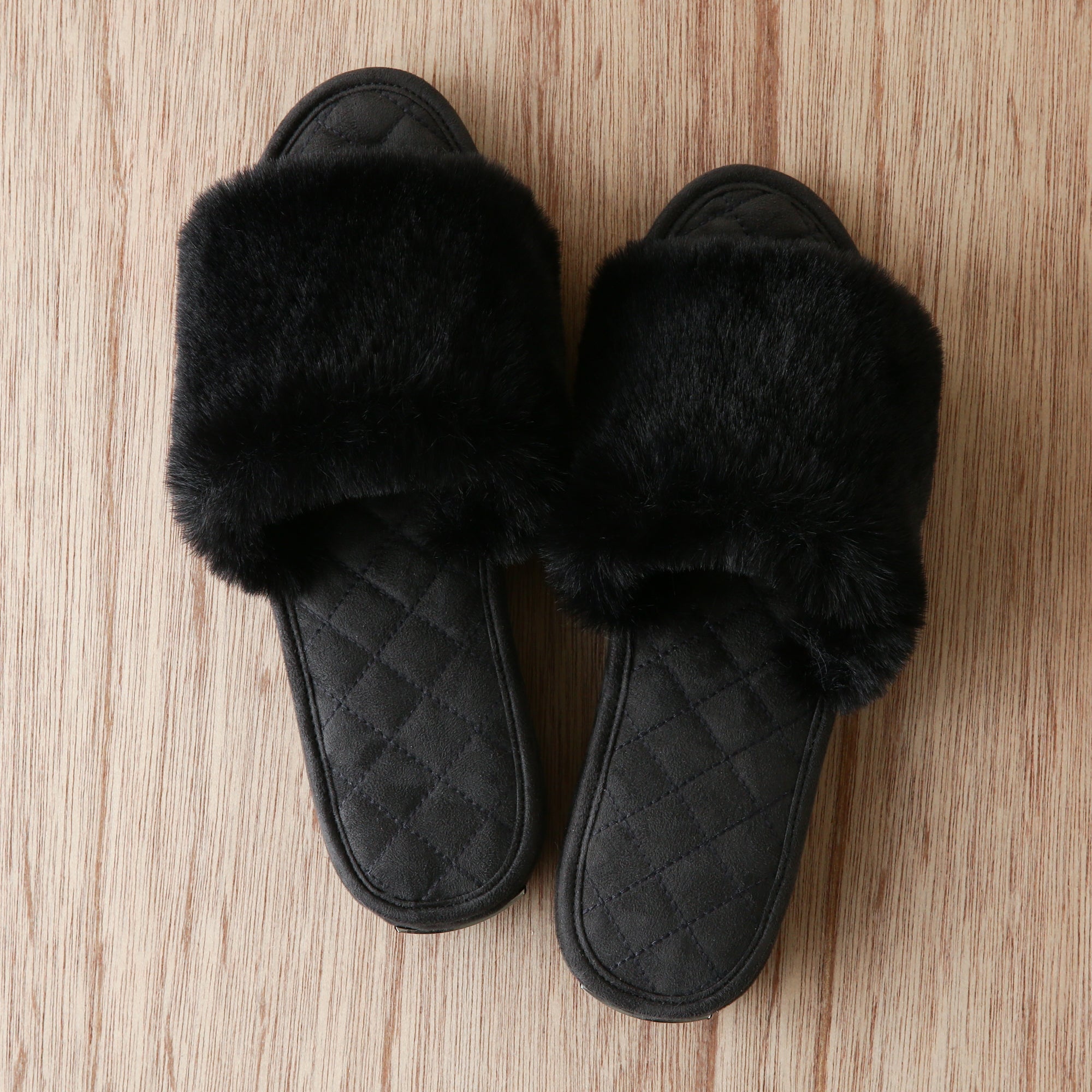 歩きやすい高さのヒールのルームシューズです。 かかと部分に金属ロゴプレートをつけ、高級感を出しています。触り心地が良く、スリムな形状と高さのあるヒールでスタイルアップにもなり、部屋の中でもオシャレに過ごせます。