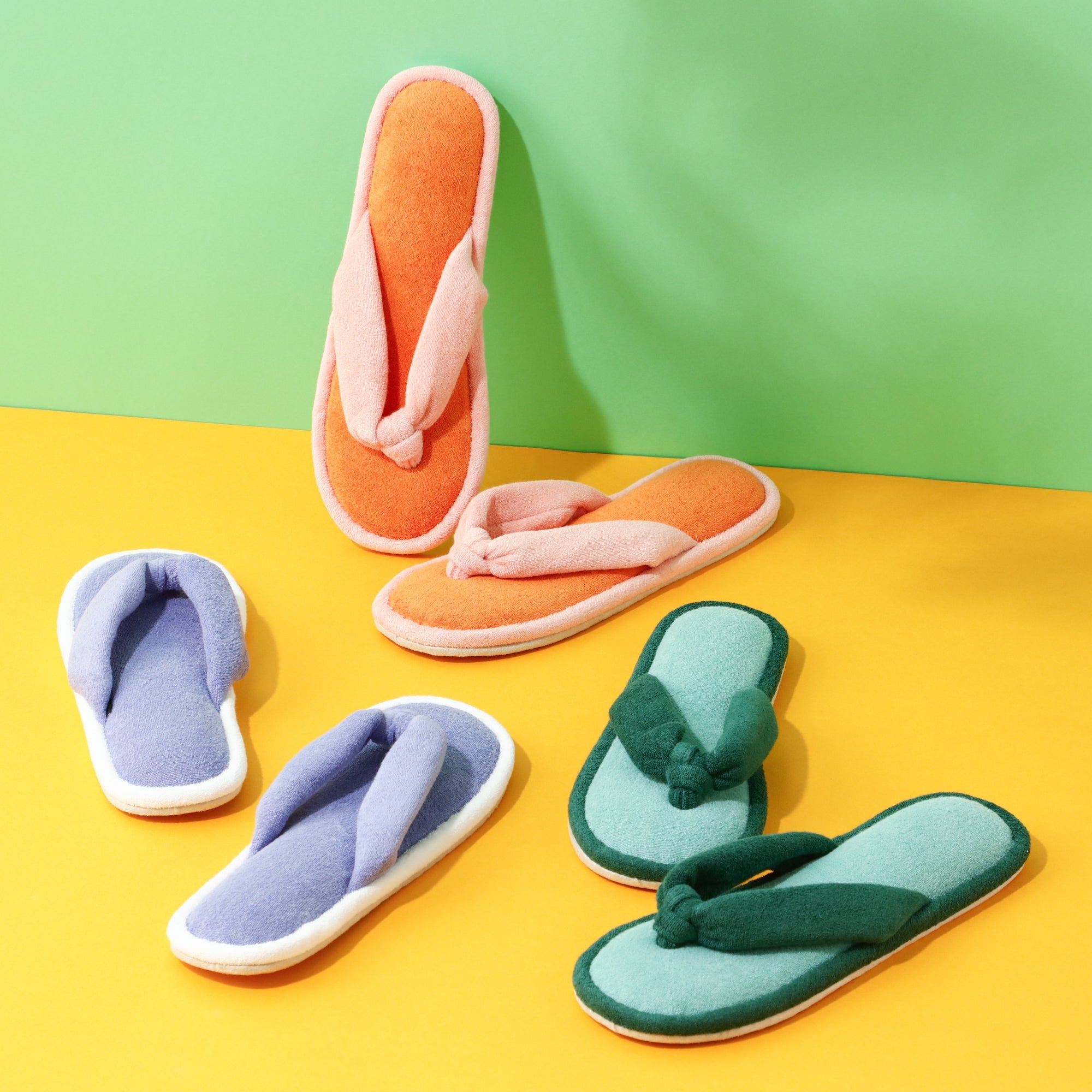 ニットパイルでさらふわっとした履き心地のトングサンダルです。 タオルポンチョと合わせてお使いいただくのもおすすめです。