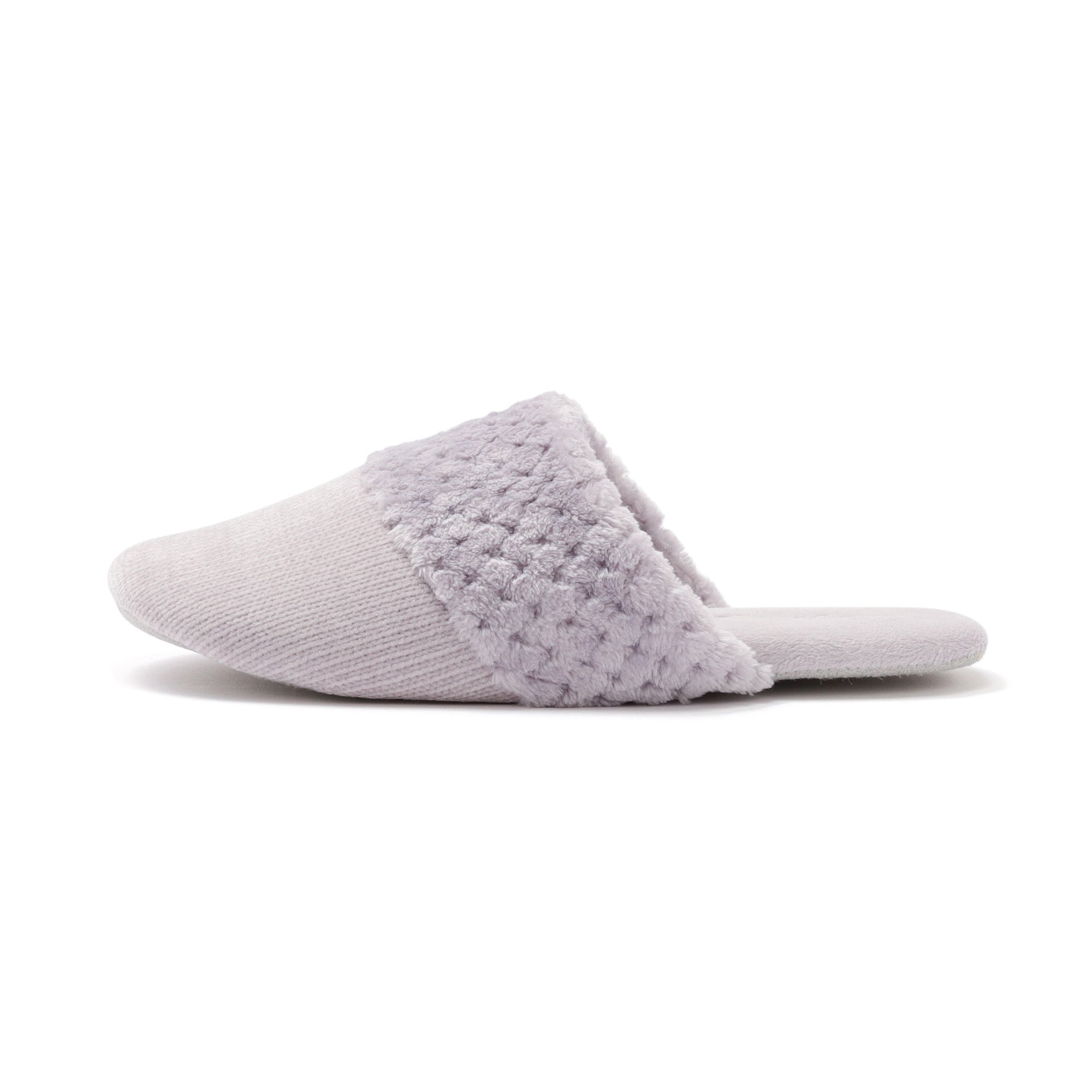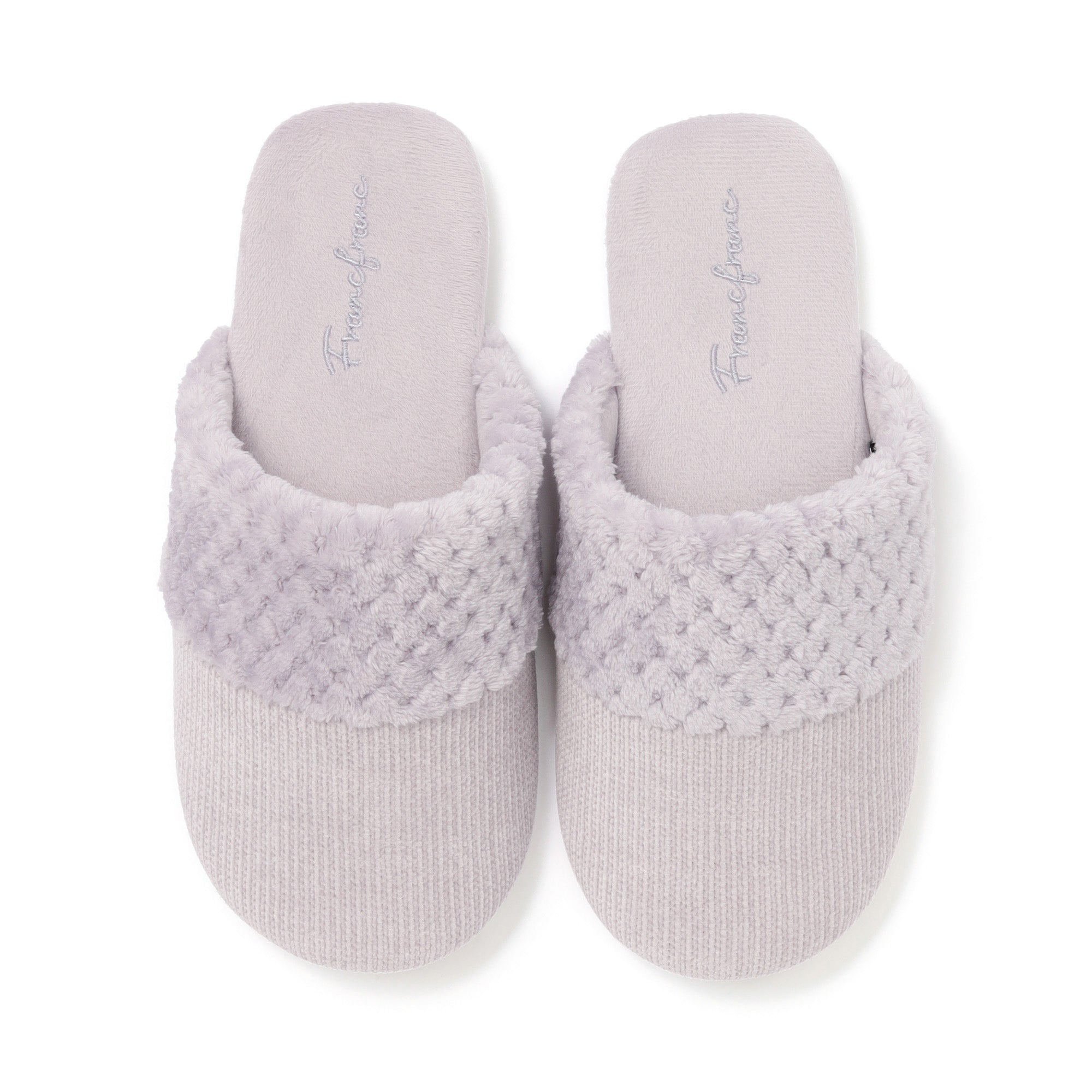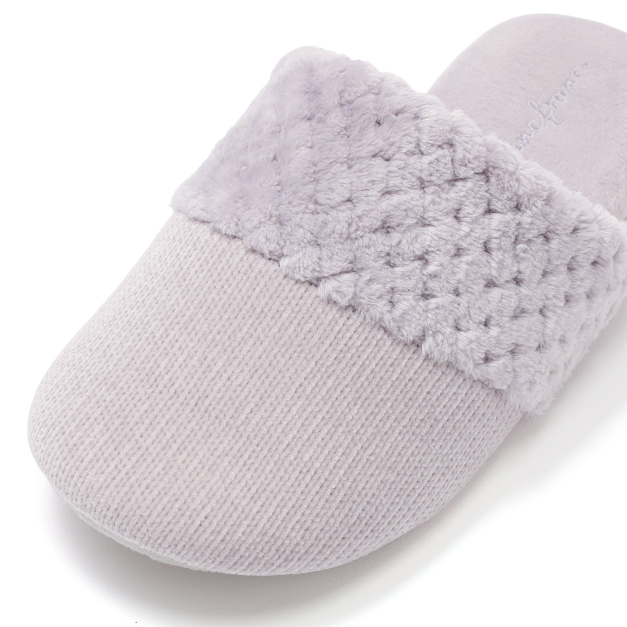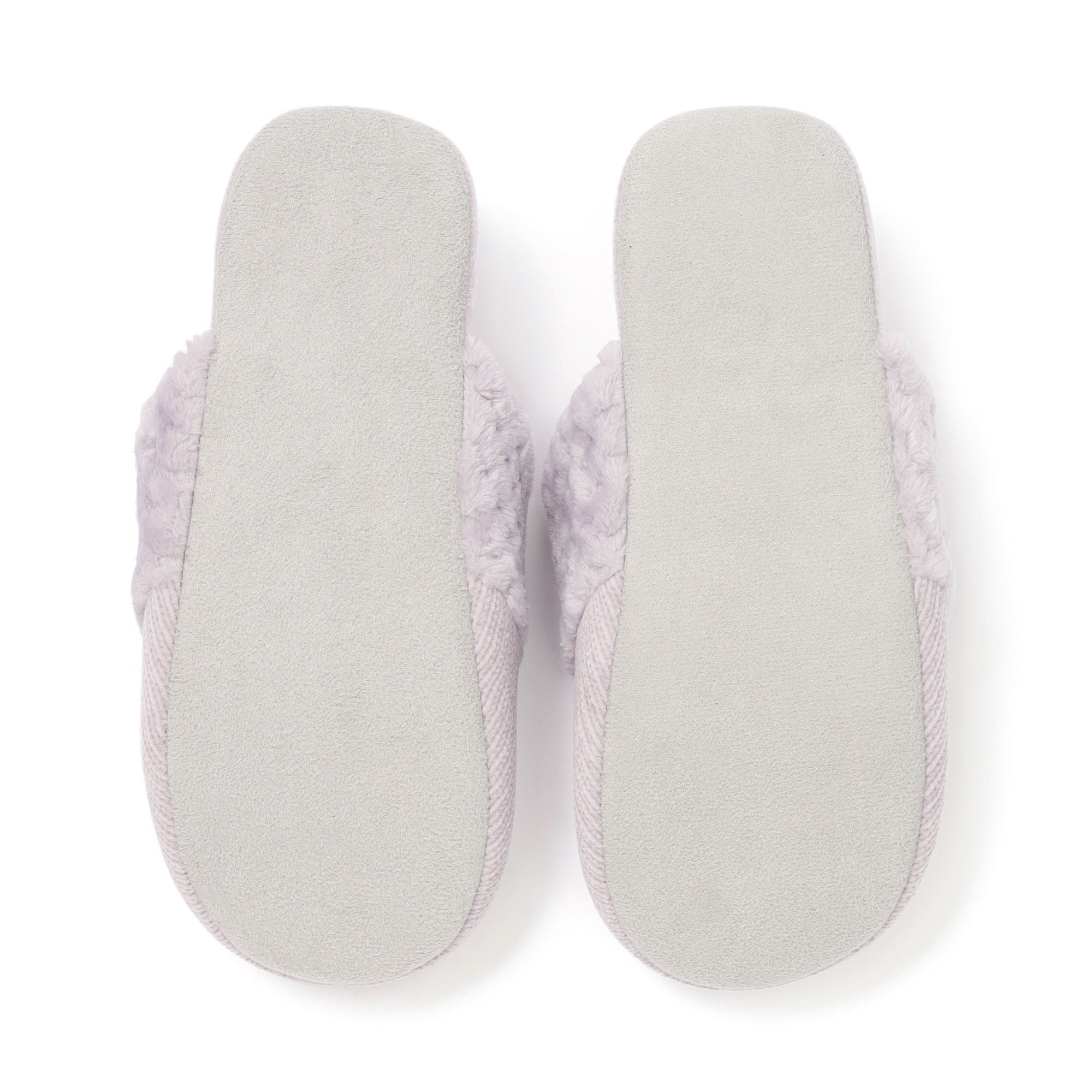 シェニールのような柔らかい素材を使用したルームシューズです。暖かさとすっきり感を両立したデザインで、もこもこしすぎず脱ぎ履きしやすい一足です。