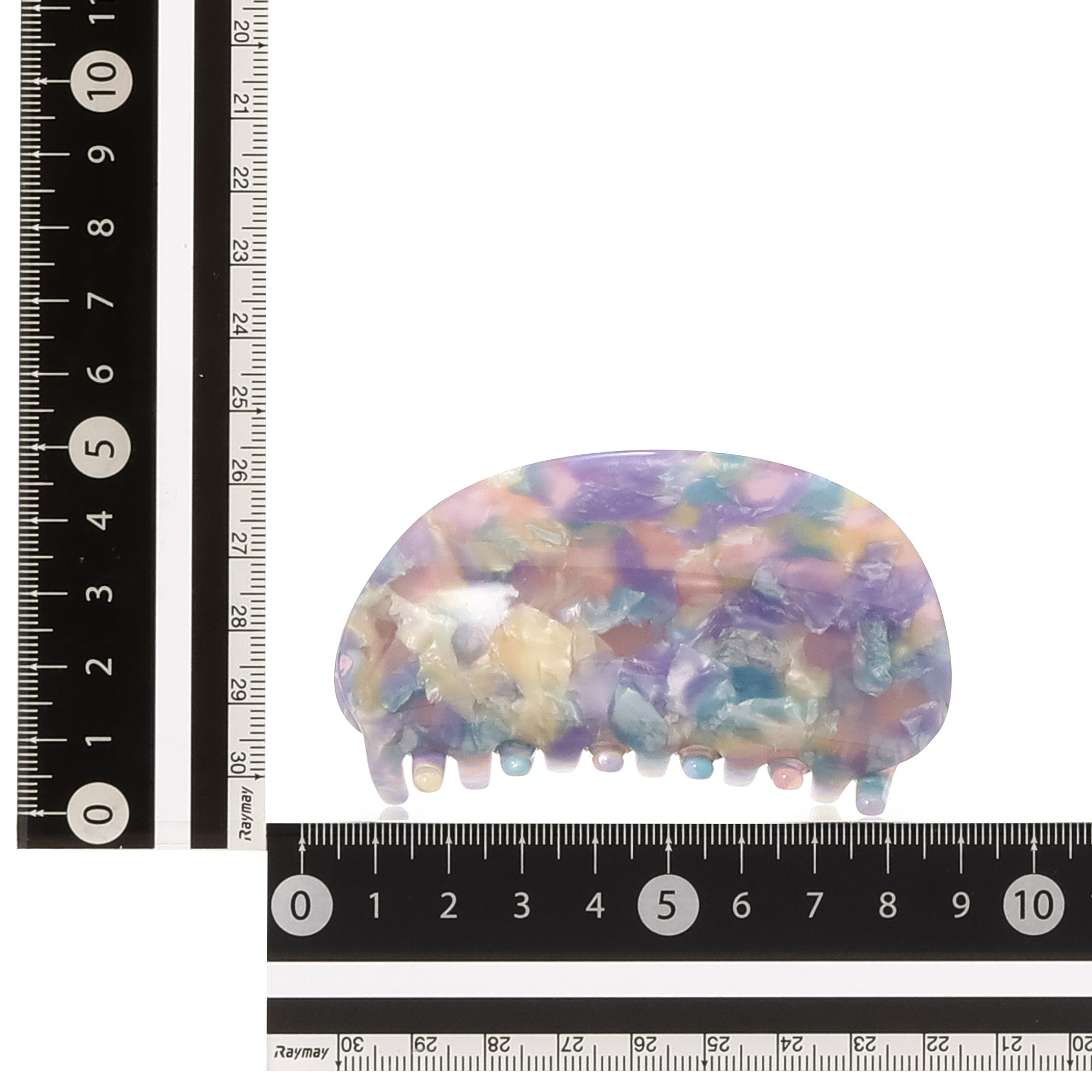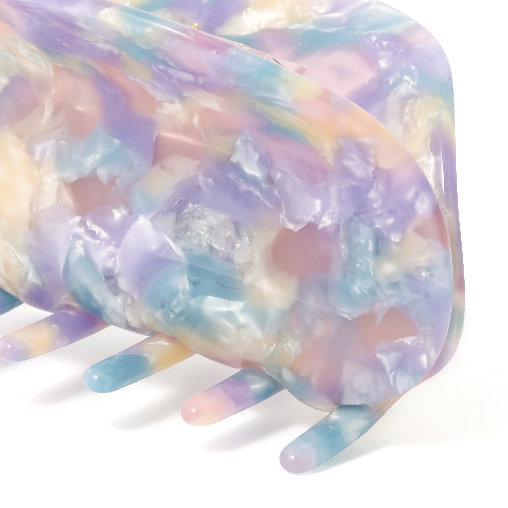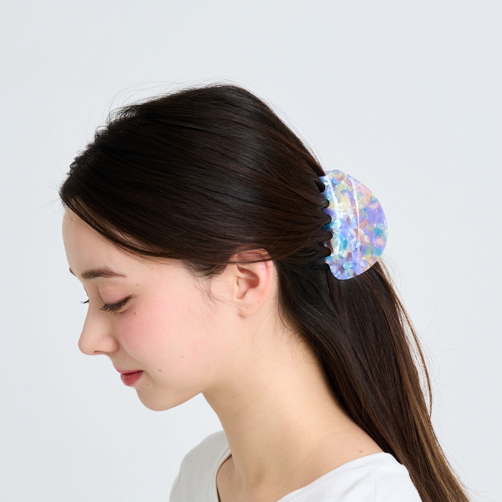 軽やかなカラーのマーブル模様が可愛らしいヘアクリップです。春感を取り入れたいけど、まだ肌寒い、そんな時期にもヘア小物なら季節感をいち早く取り入れやすいからおすすめ。家中でも外でも付けられるおしゃれなデザインで気分をあげてくれるアイテムです。ロング、ミディアムヘアの方におすすめのサイズ感です。