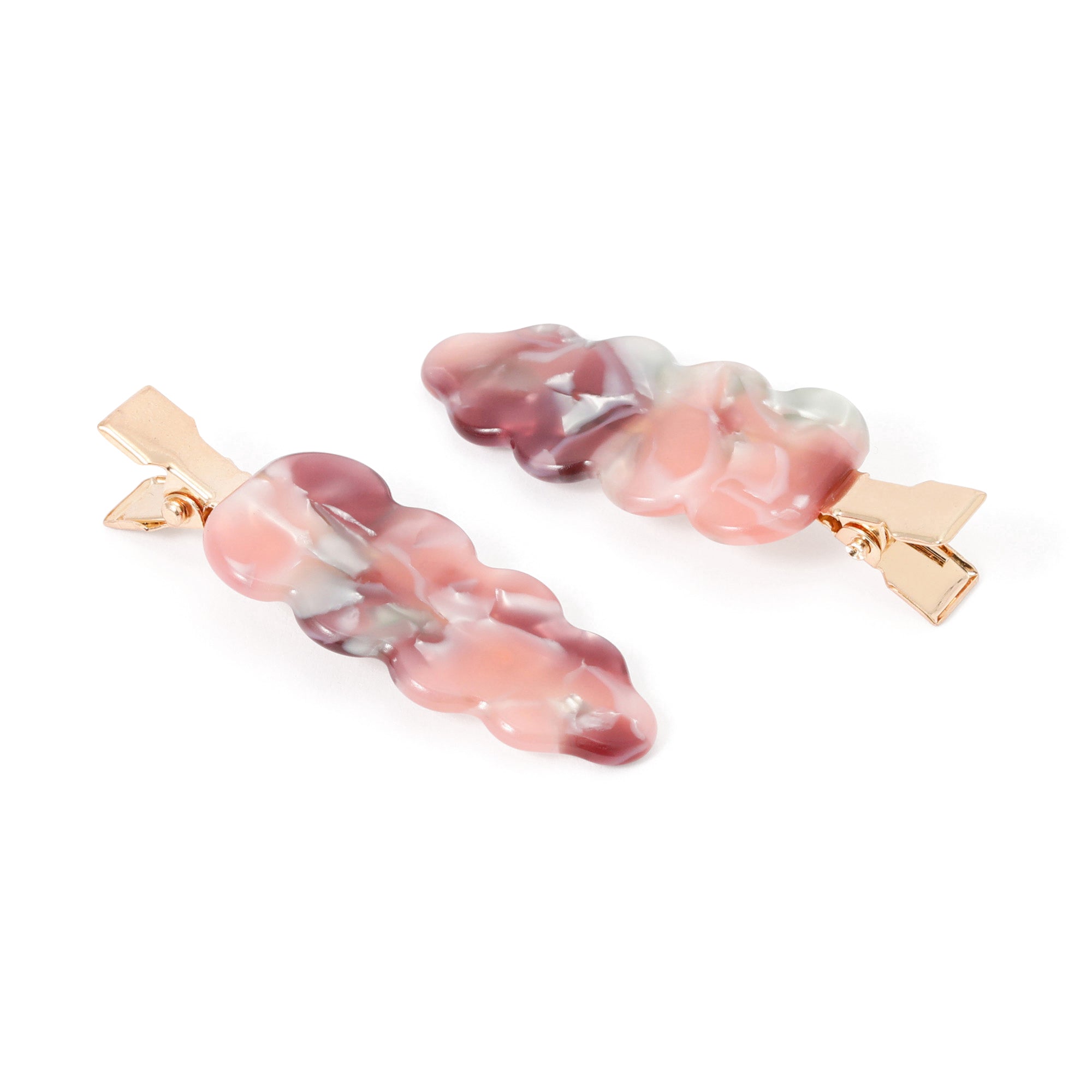 落ち着いたカラーとウェーブデザインが可愛らしい前髪クリップ2本セットです。秋らしさを取り入れたいけど、まだ暑い、そんな時期にもヘア小物なら季節感をいち早く取り入れやすいからおすすめ。家の中でも外でも着けられるおしゃれなデザインで気分をあげてくれるアイテムです。