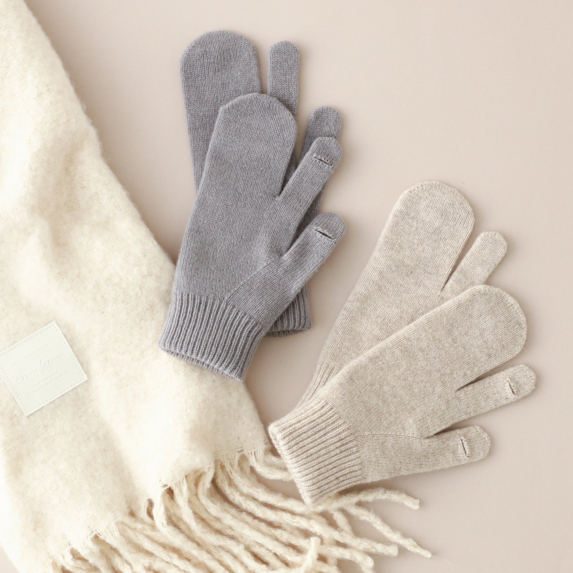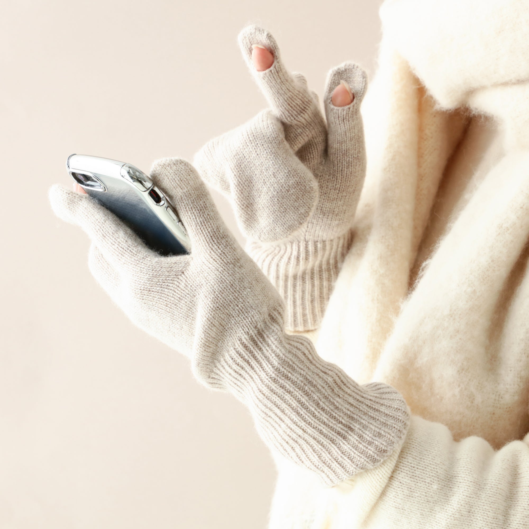人差し指と親指を出す穴の開いたミトンタイプのグローブです。 指先が出せるから、ミトンの形状でもスマートフォン操作がしやすく便利です。 パッケージ入りだから、肌寒い季節の贈り物にもおすすめです。