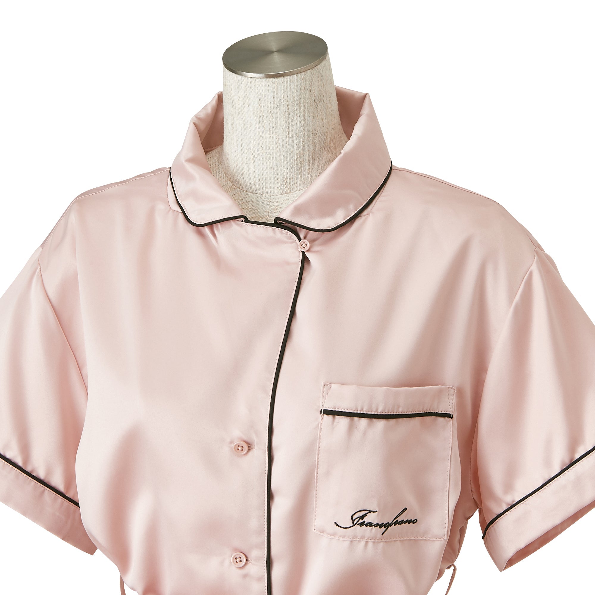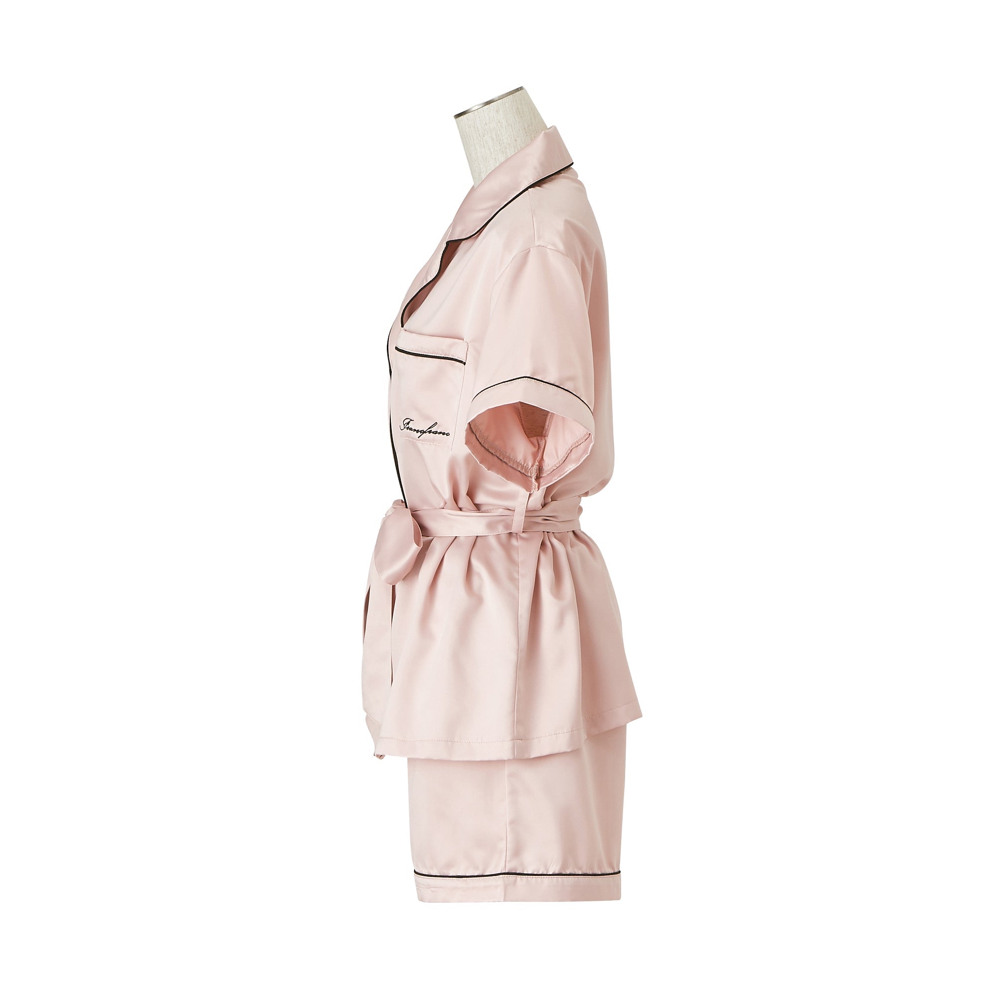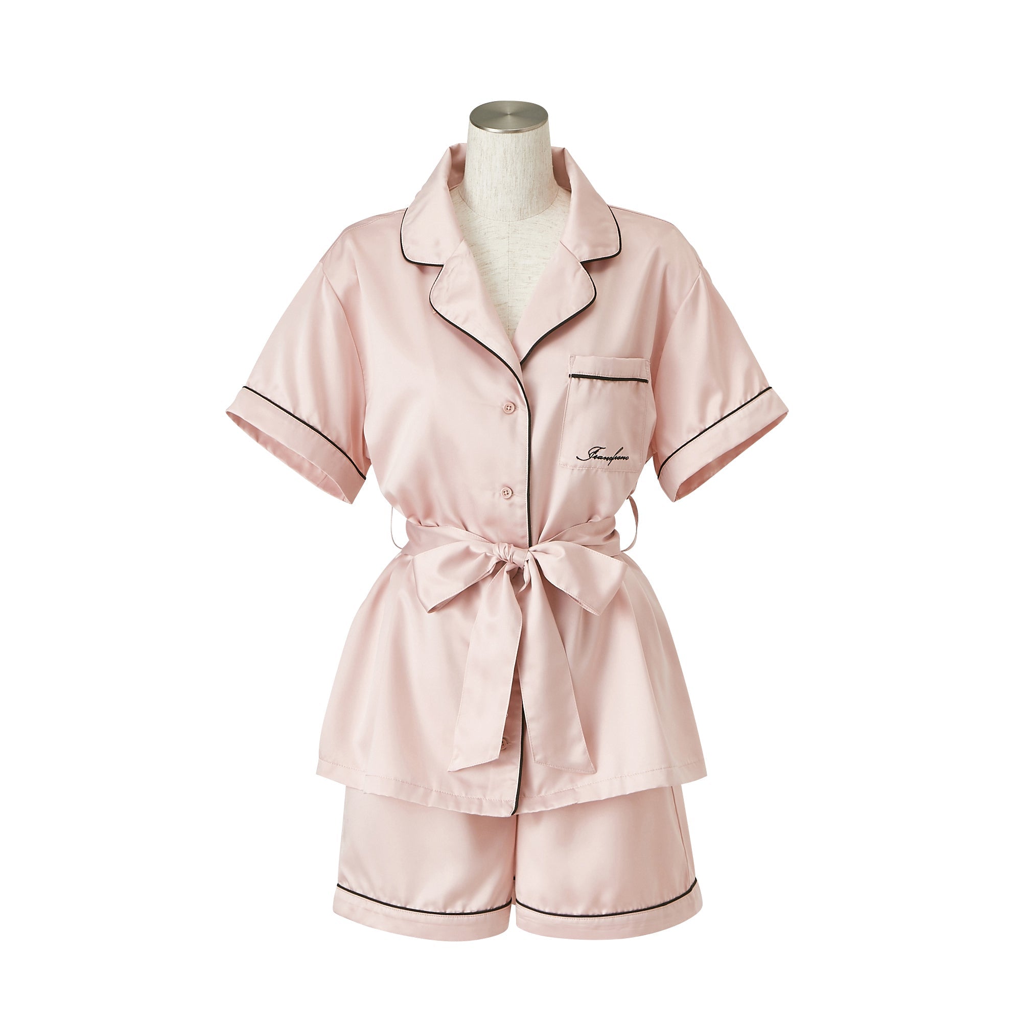 ヒアルロン酸加工ロゴ刺繍 半袖半ズボンパジャマ ピンク