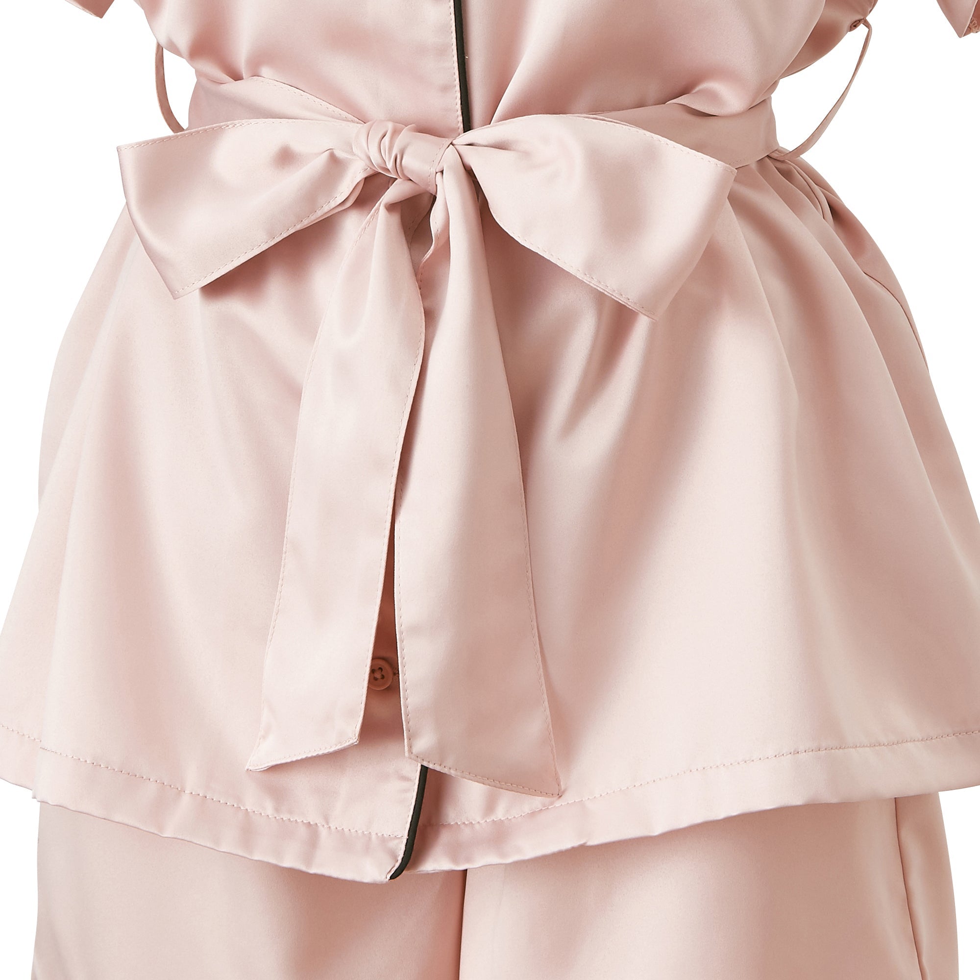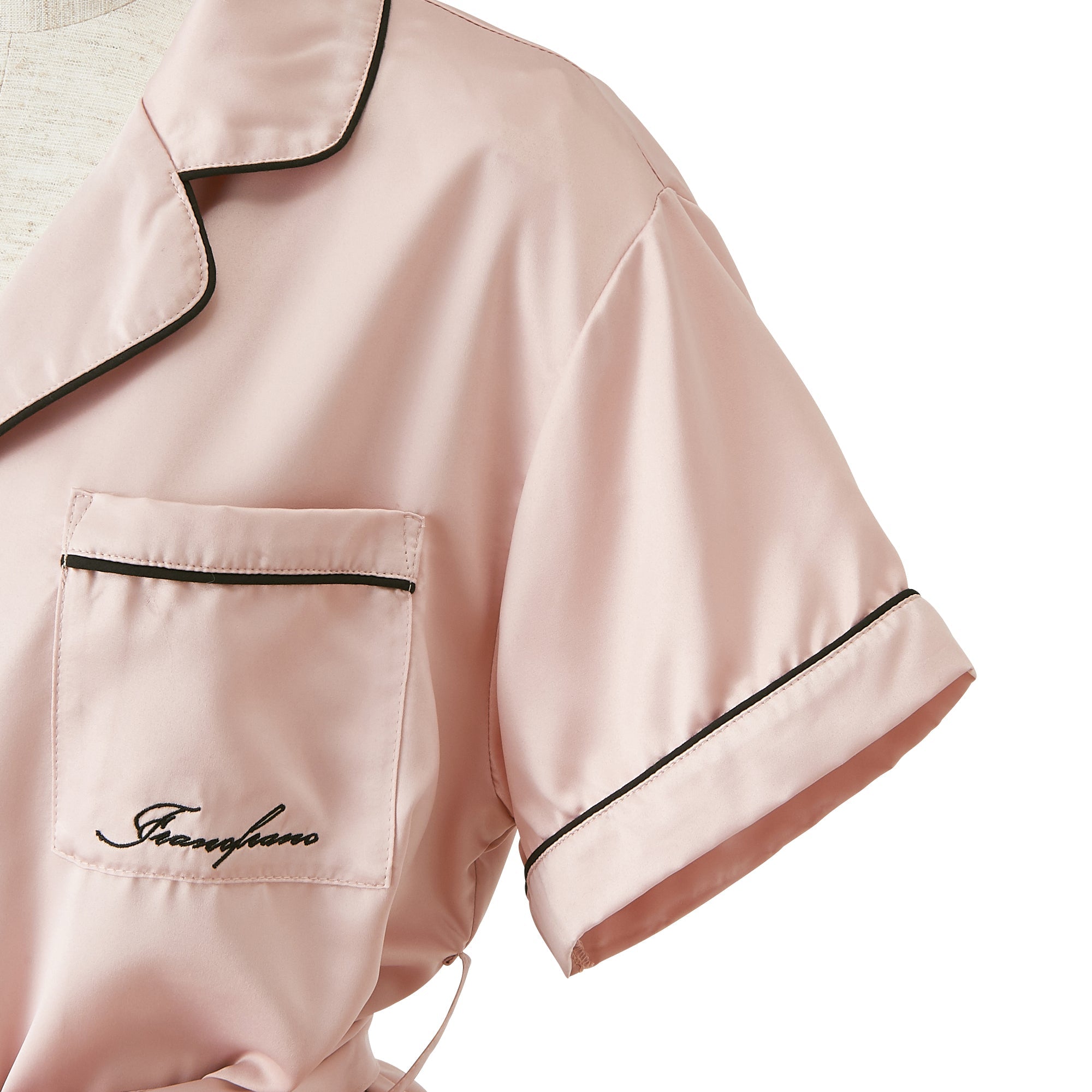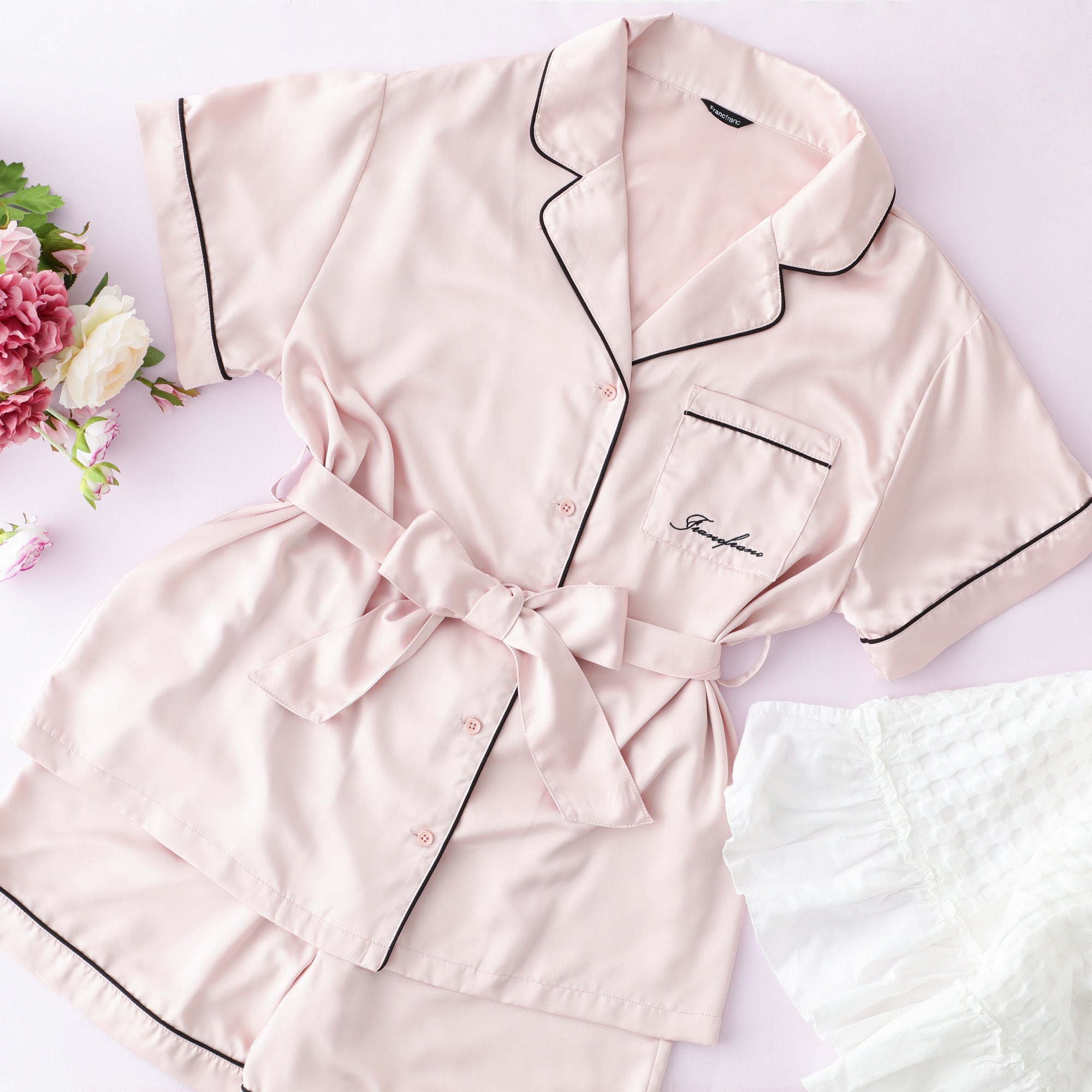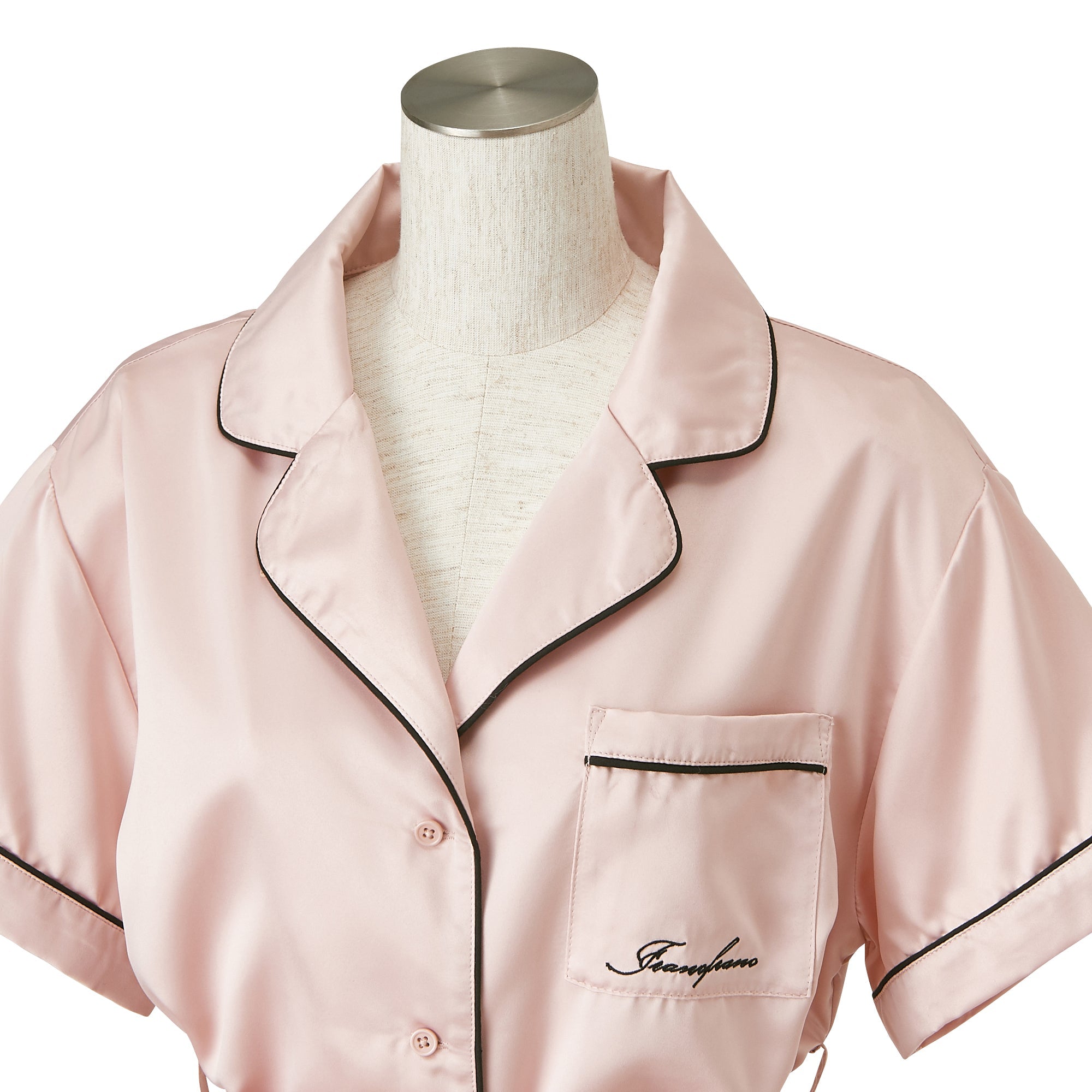 ヒアルロン酸加工ロゴ刺繍 半袖半ズボンパジャマ ピンク