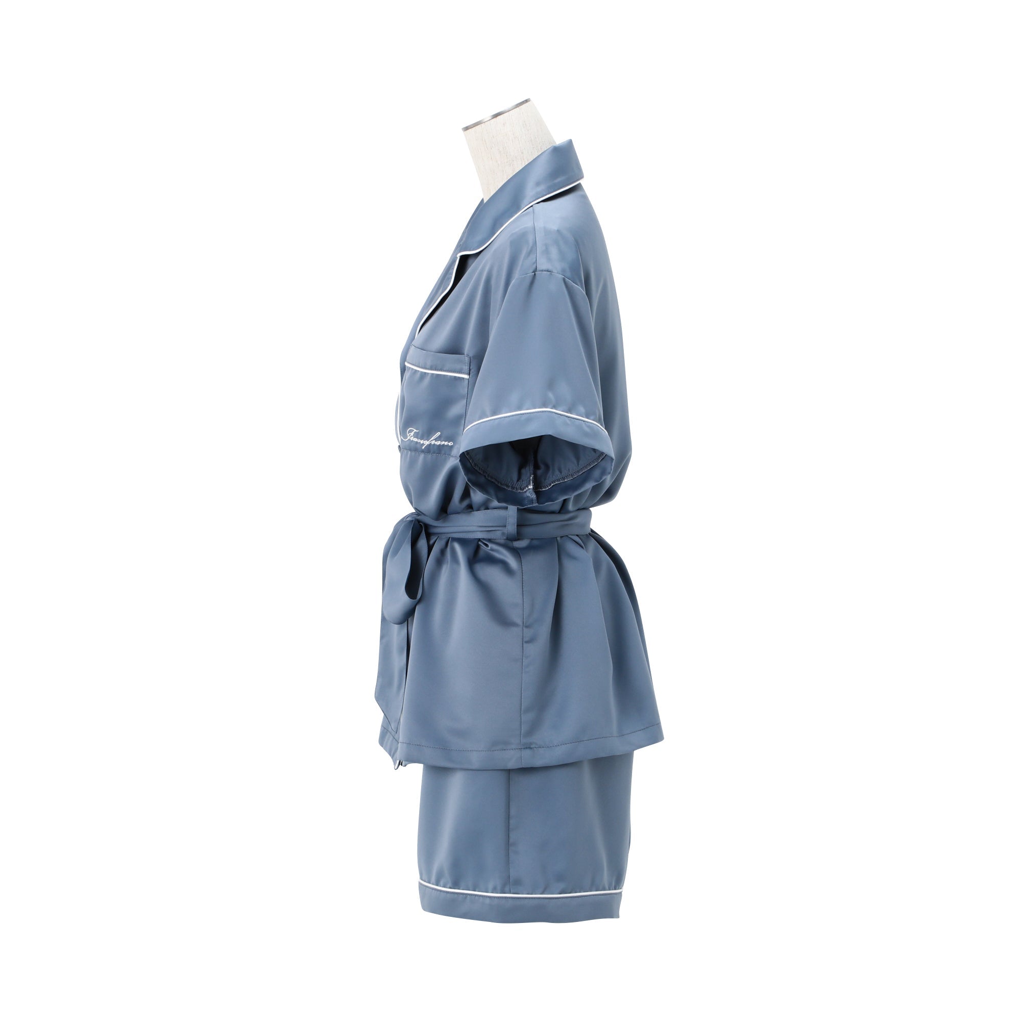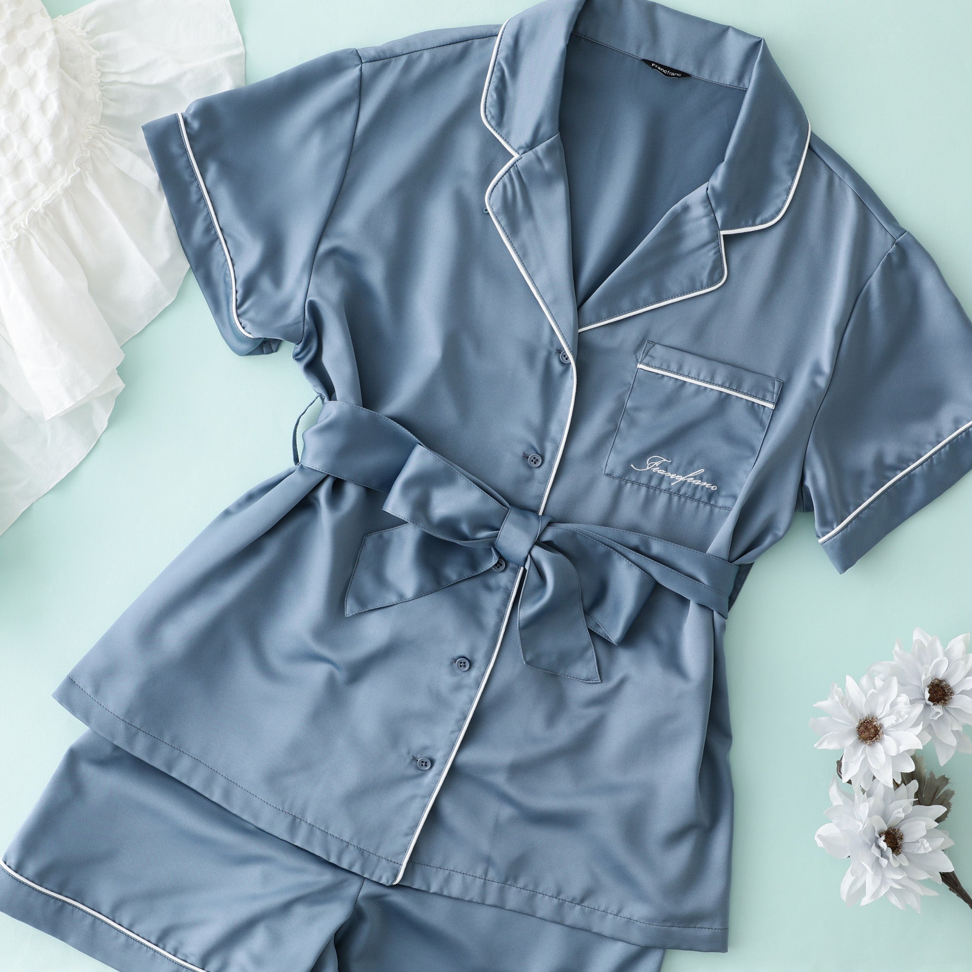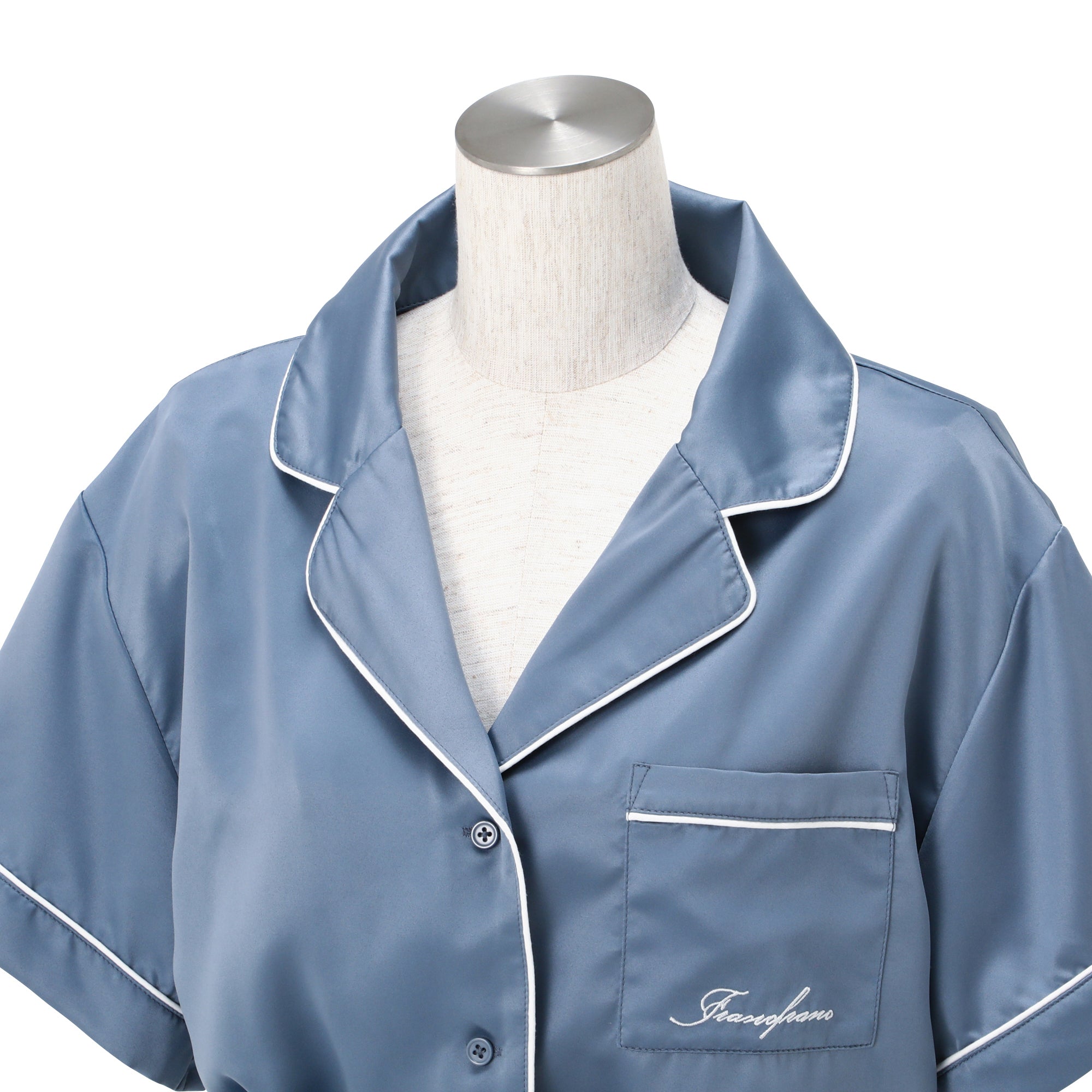 ヒアルロン酸加工ロゴ刺繍 半袖半ズボンパジャマ ブルー
